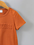 طقم تي شيرت وشورت بأكمام قصيرة مطبوع عليه حروف لوس أنجلوس للأولاد الصغار، قطعتين، كاجوال صيفي وجيد التهوية