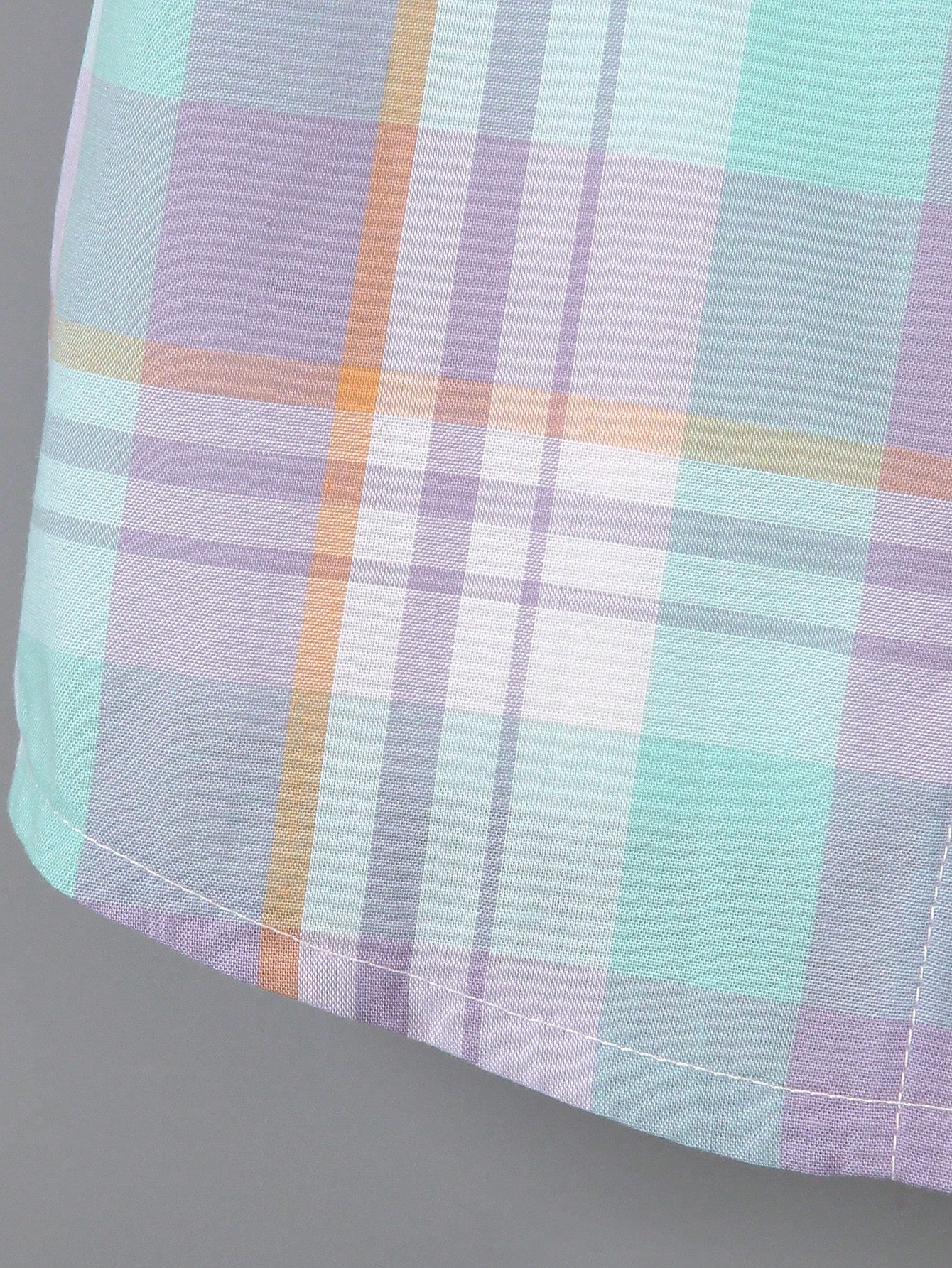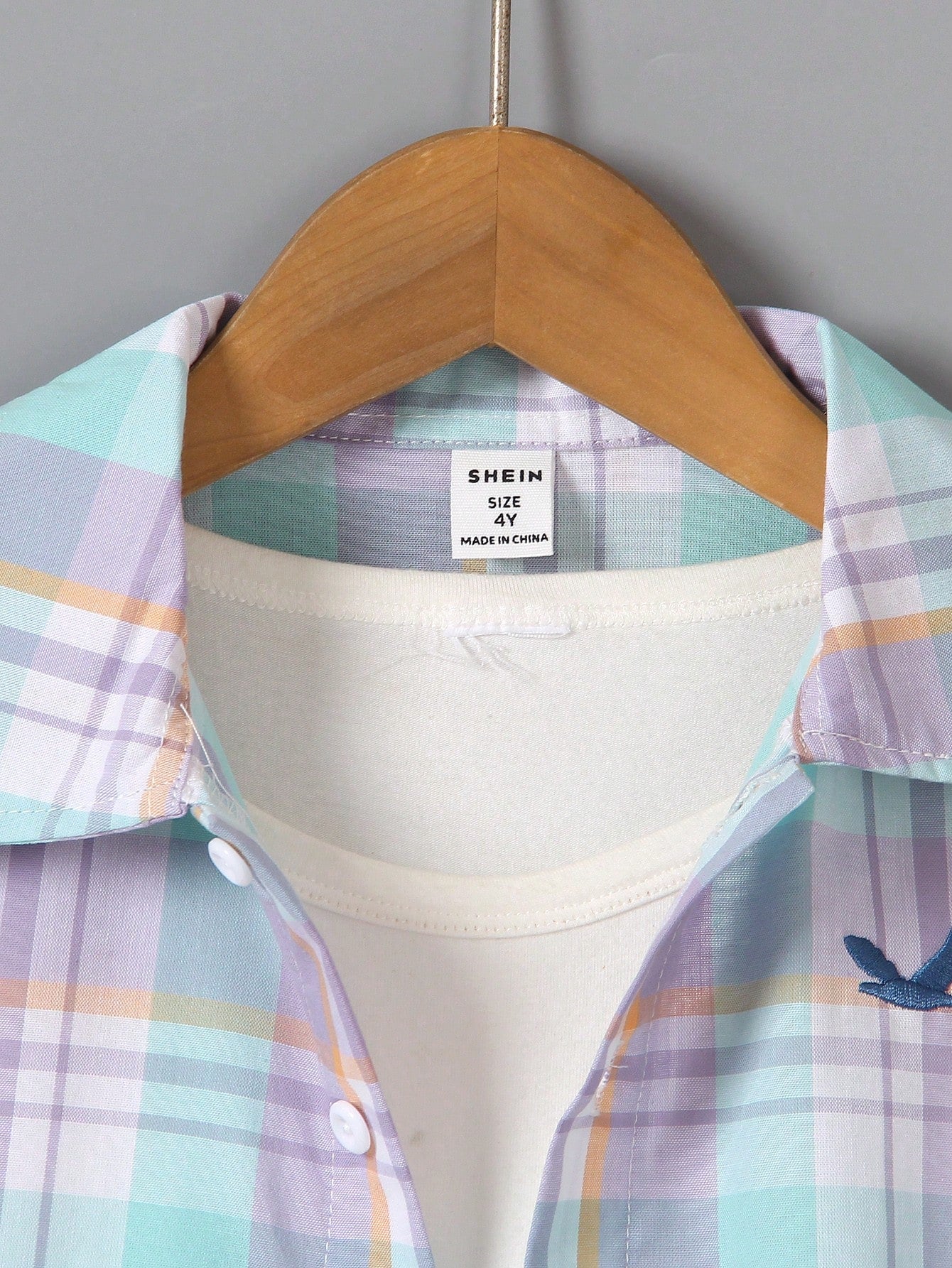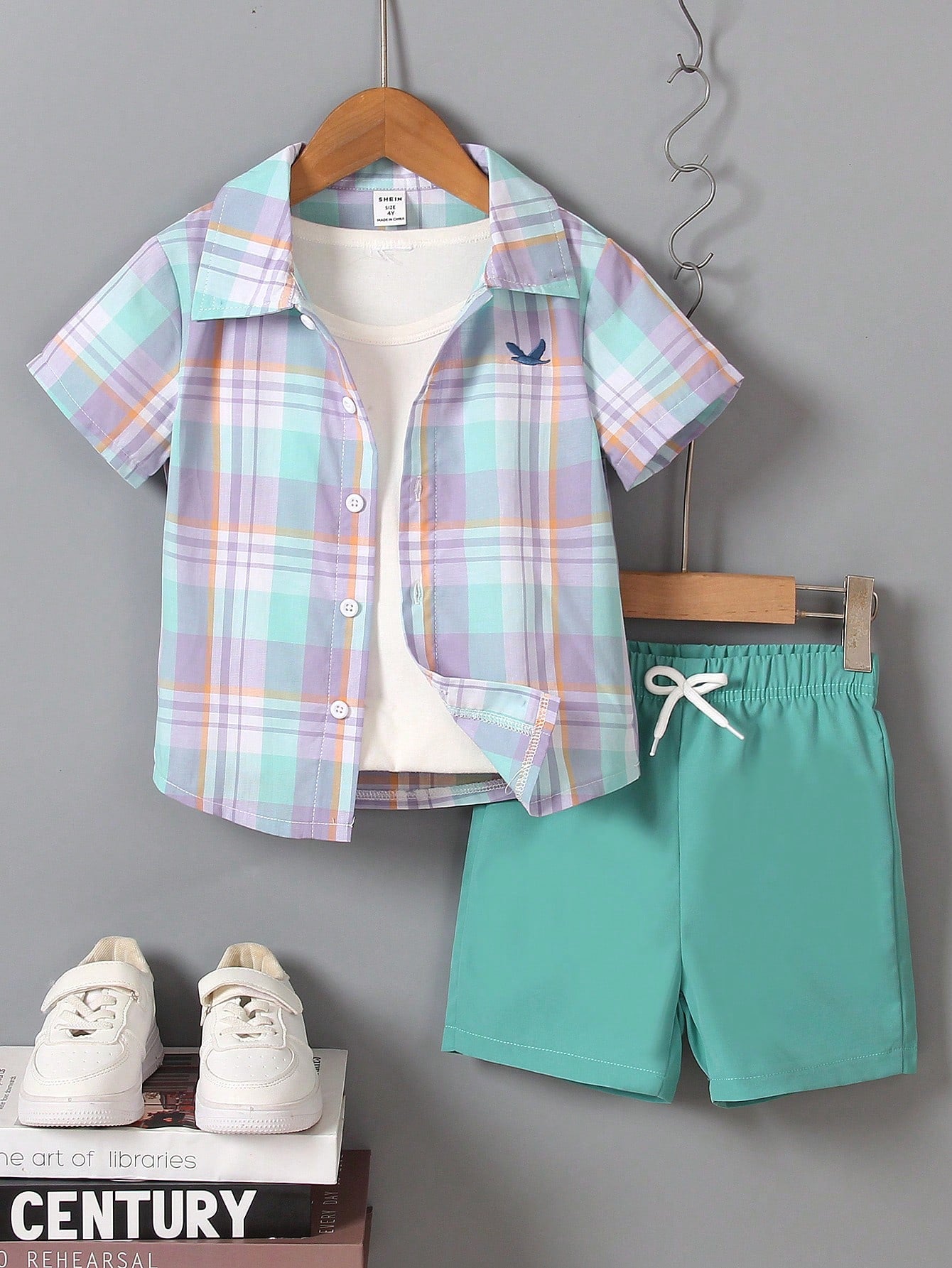 Young Boy Plaid Breathable 2 Pieces Set, Suitable For Getaways, Holidays, Travels, Relaxation, Sunbathing,