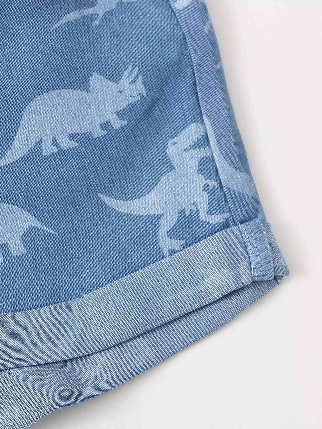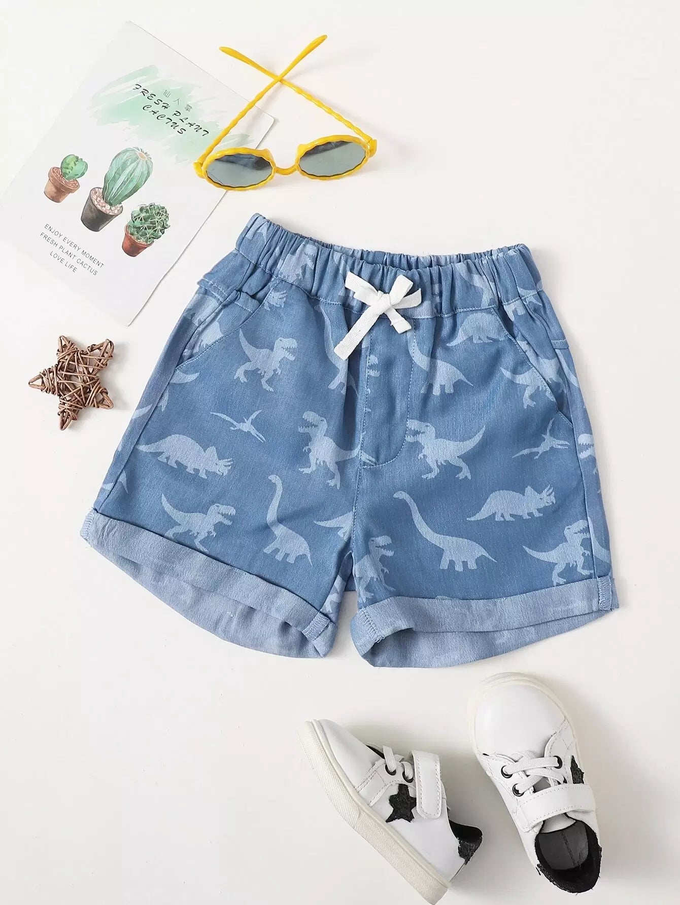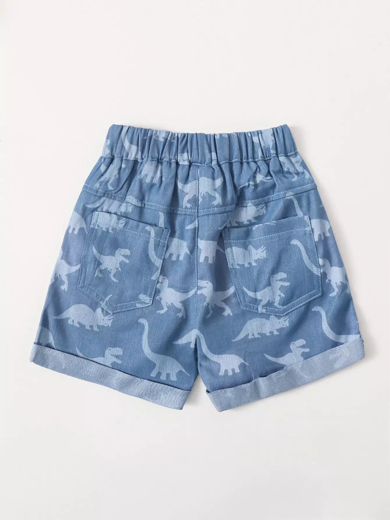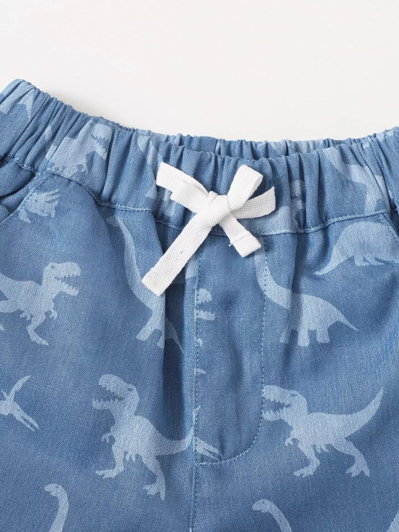 شورت جينز ديناصور ديناصور كرتوني بالكامل للأولاد الصغار