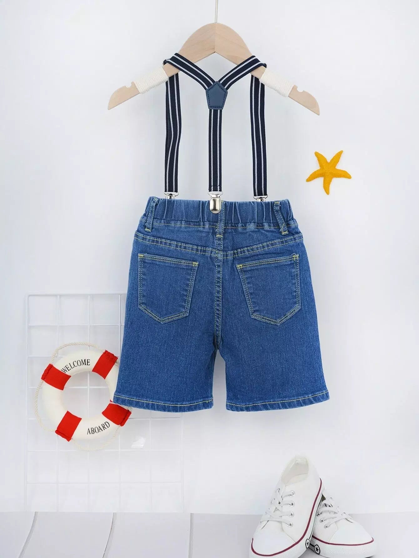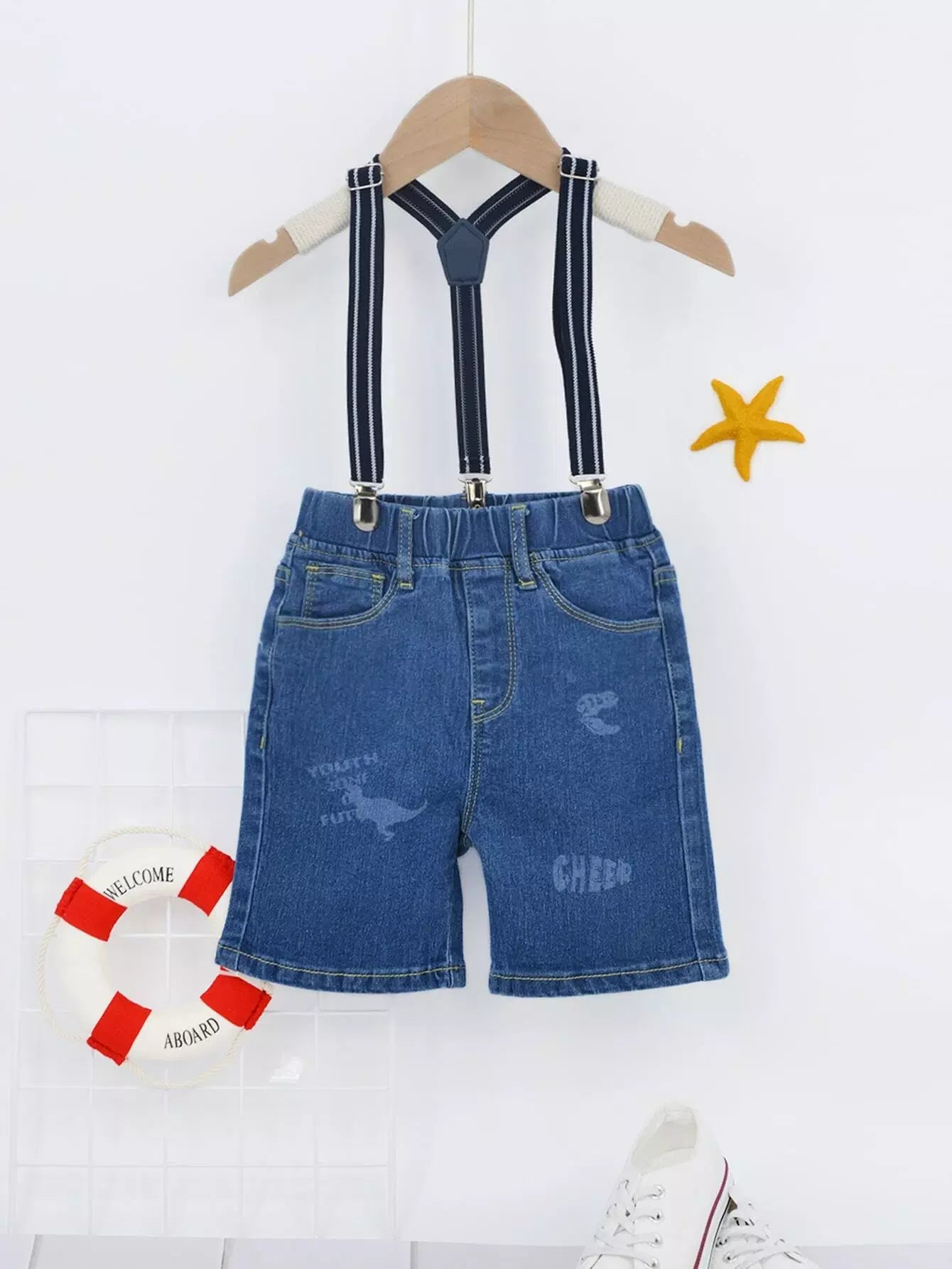 أولاد صغار بنطلون دنيم بطبعة كرتون للأولاد بأشرطة