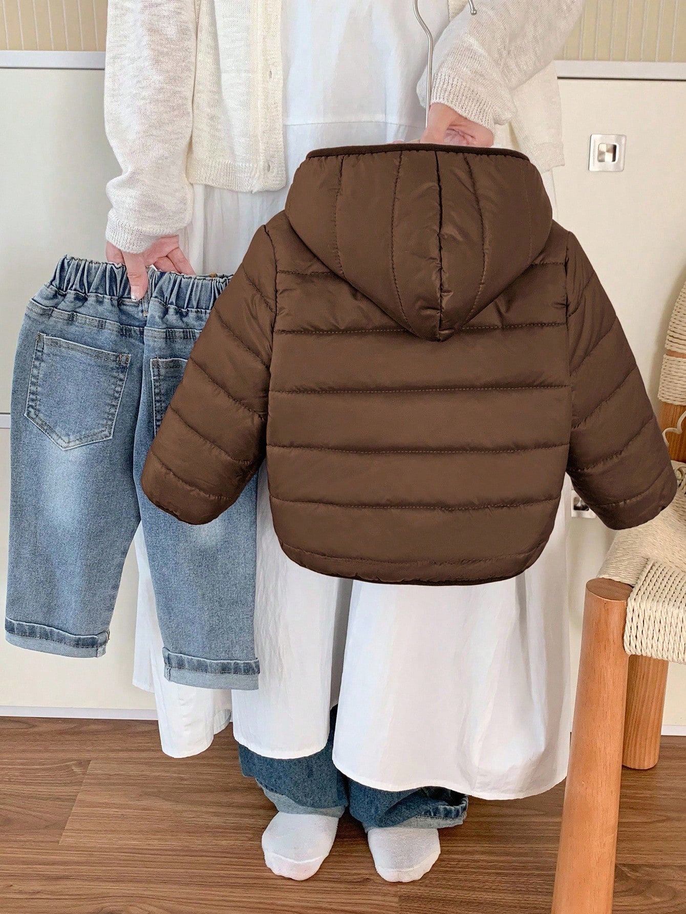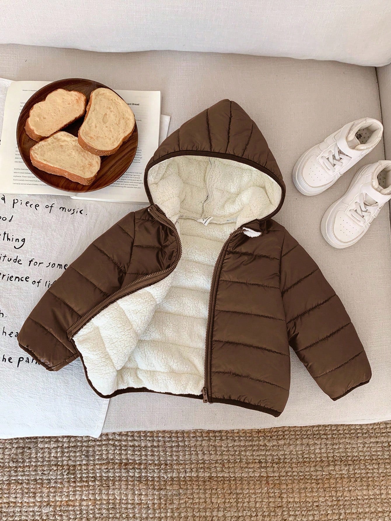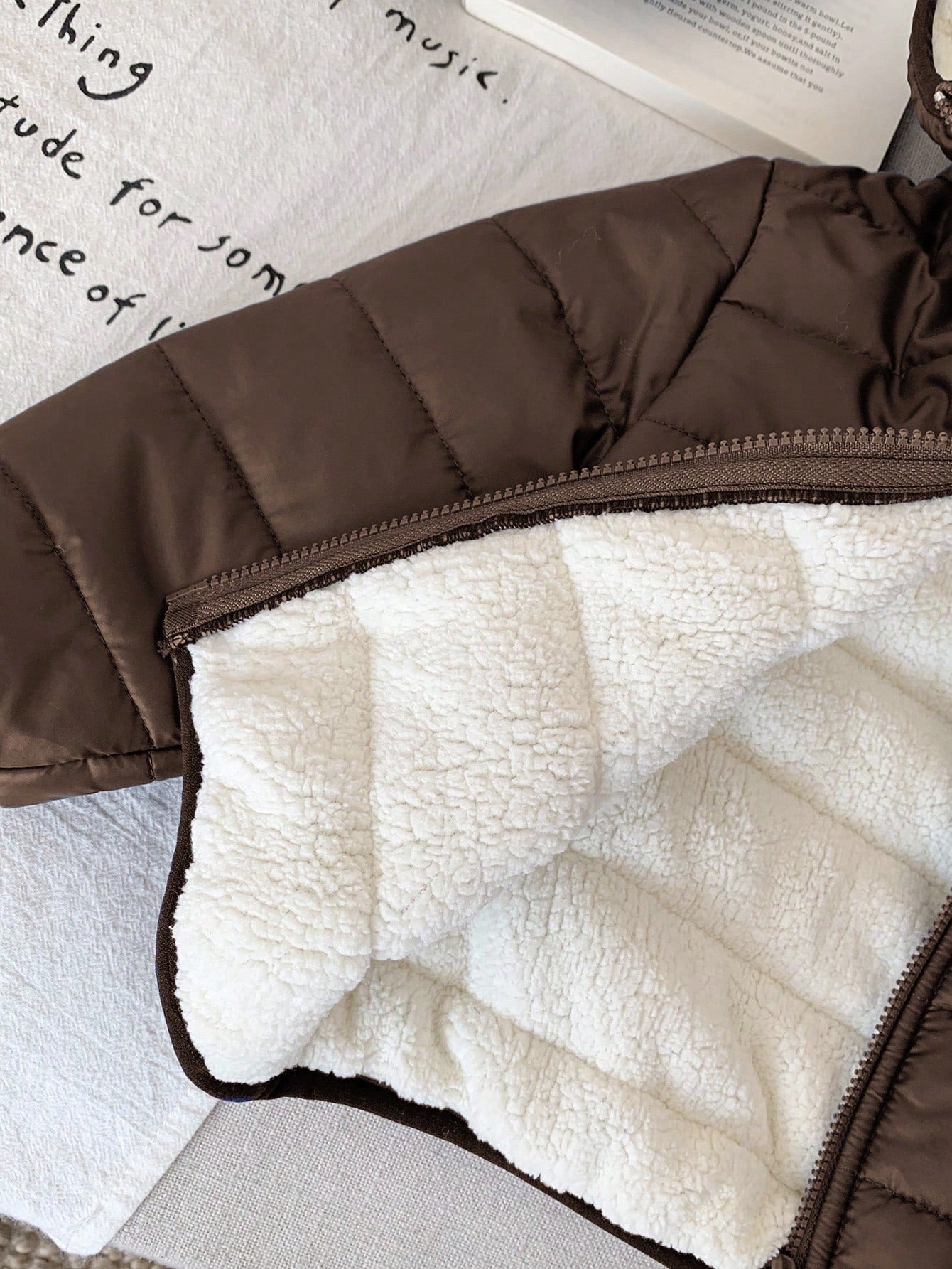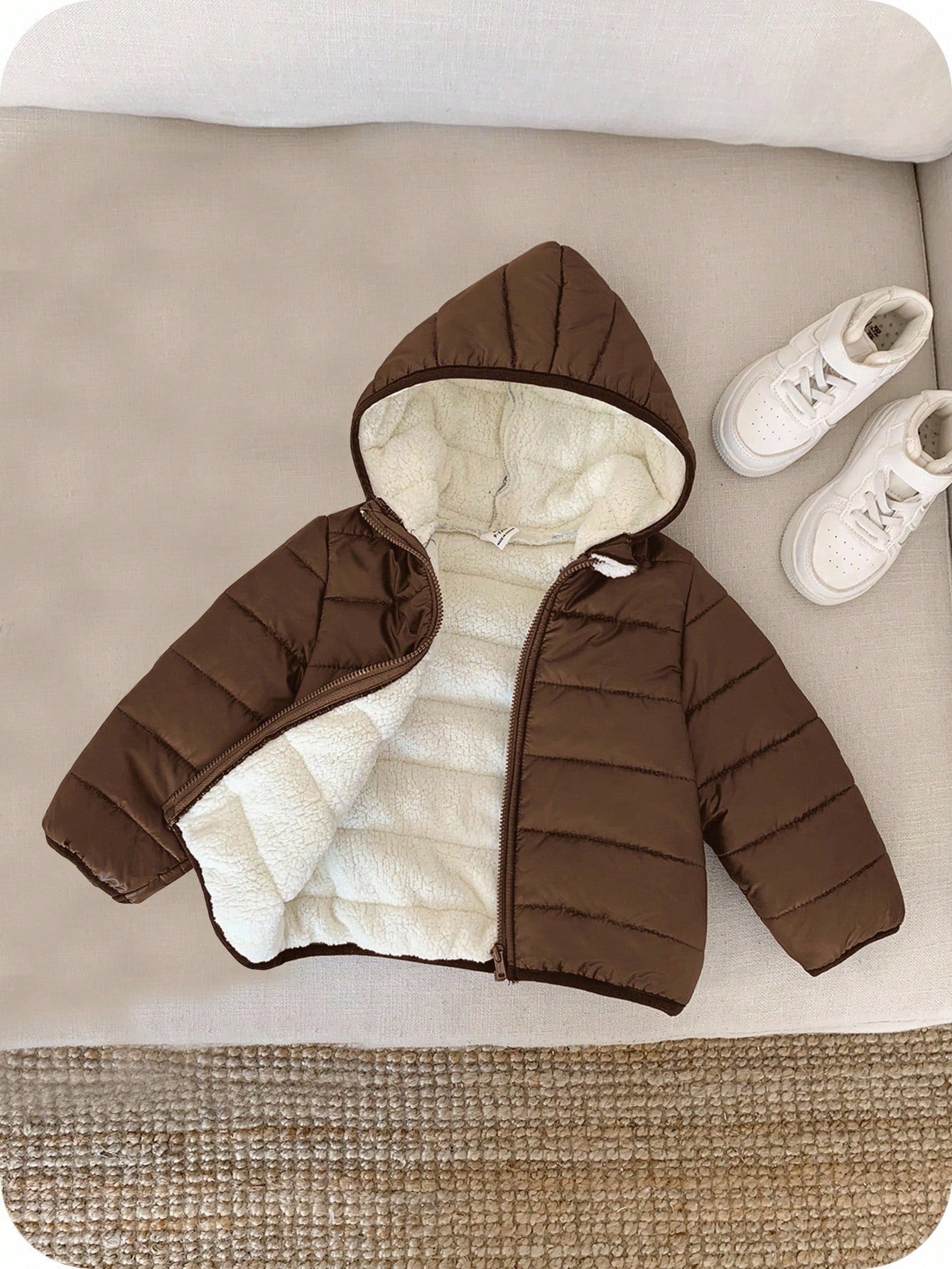 جاكيت شتوي بني مبطن حرارياً بغطاء رأس وسحاب، مناسب للارتداء اليومي، دافئ، متعدد الاستخدامات، ناعم