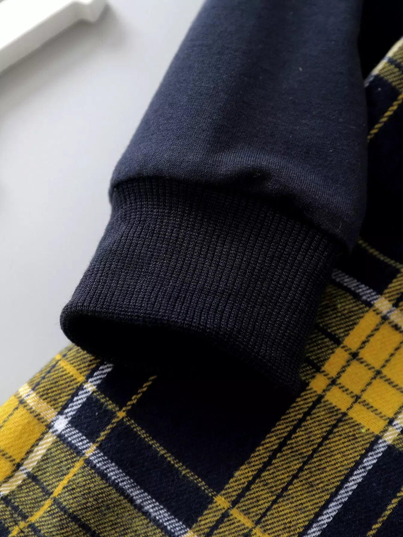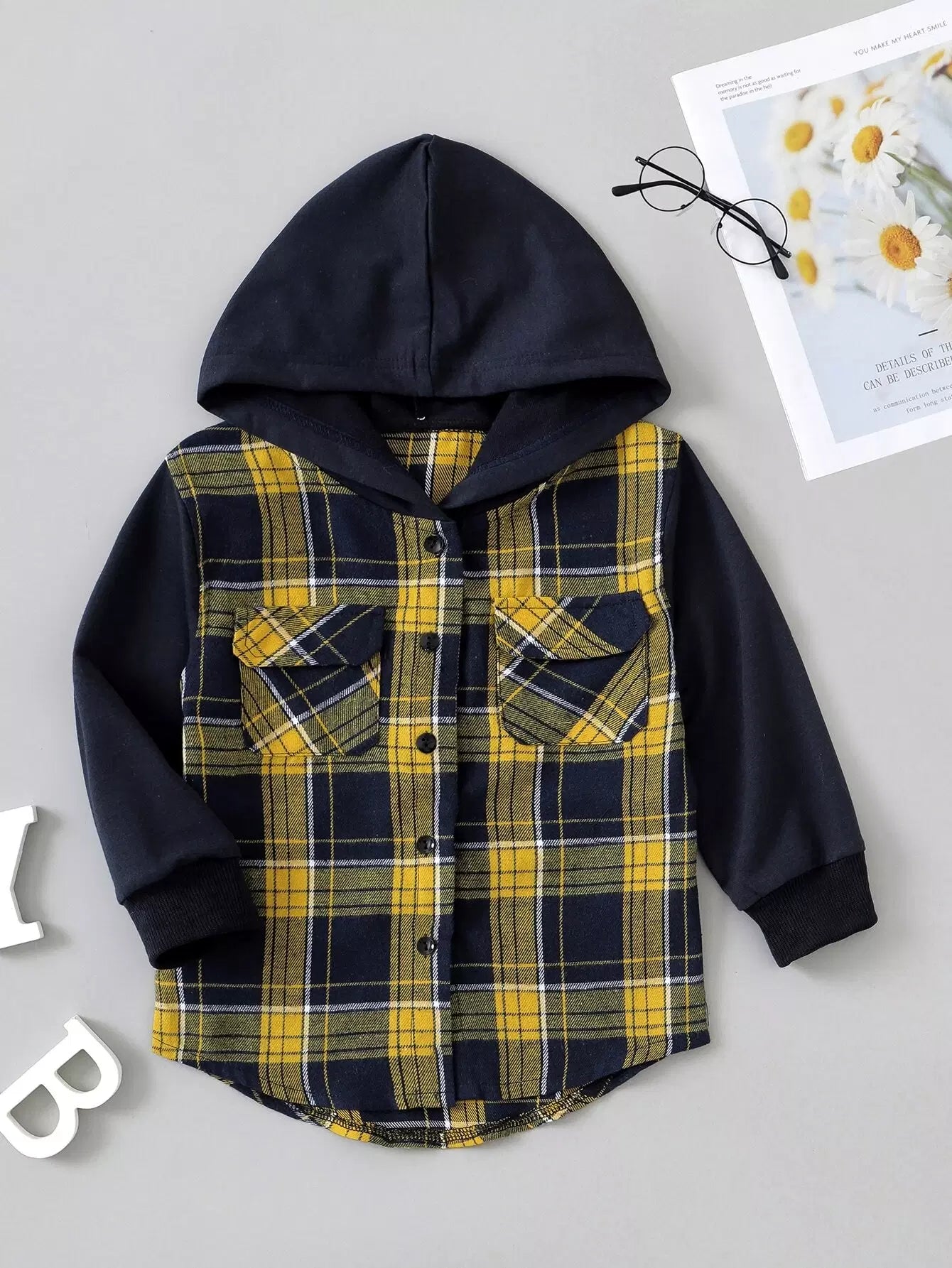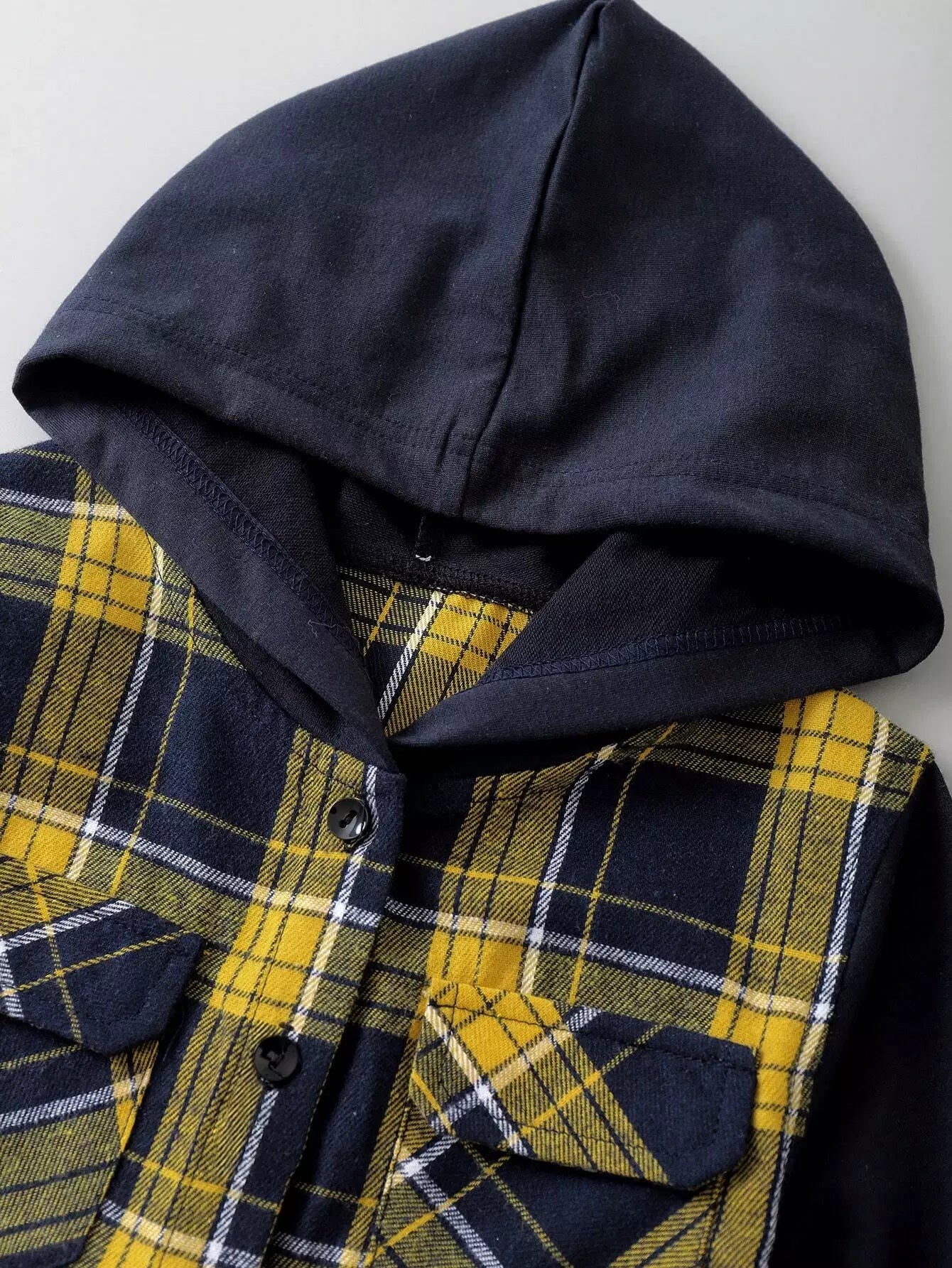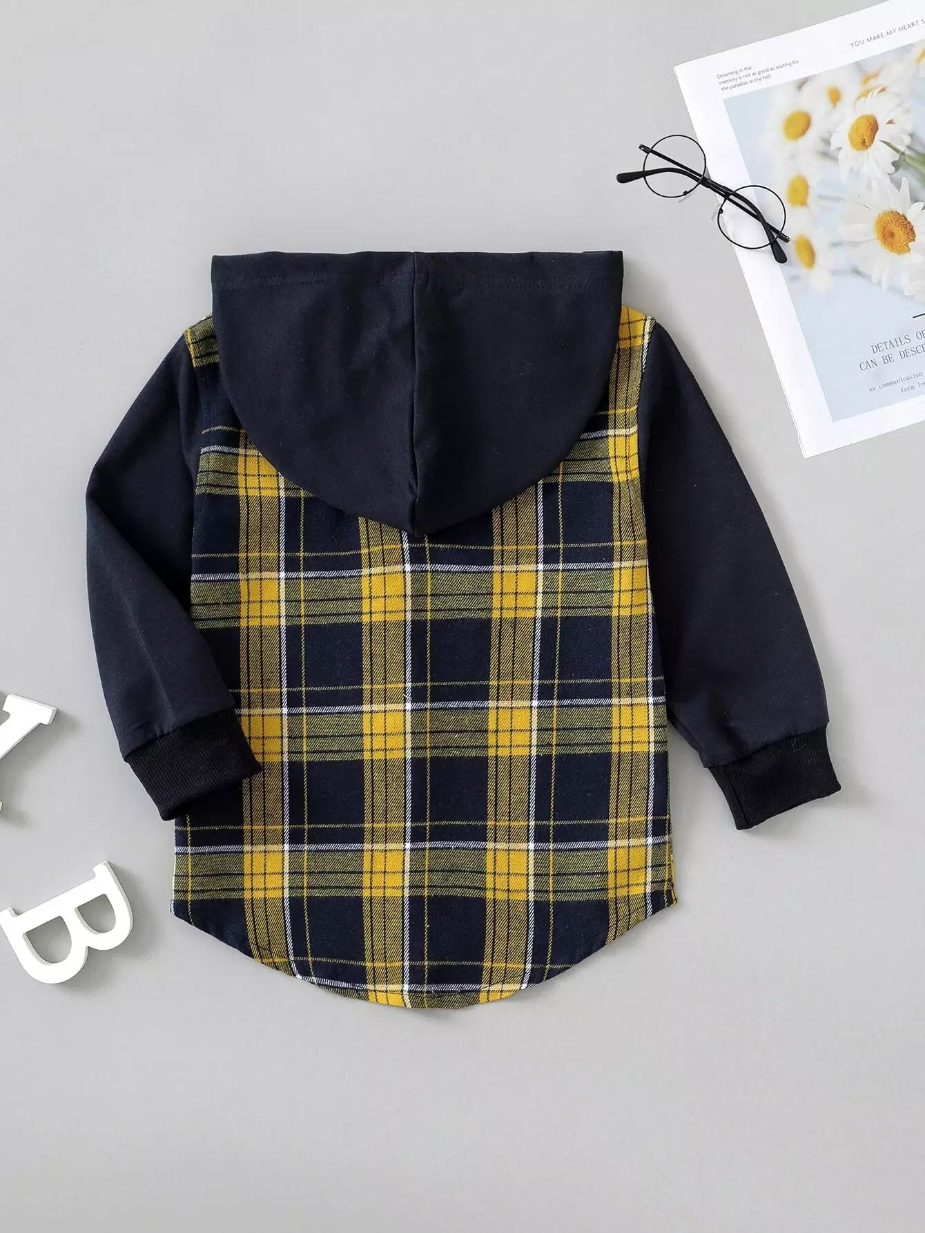 معطف بقلنسوة منقوش بلون مغاير للأولاد الصغار