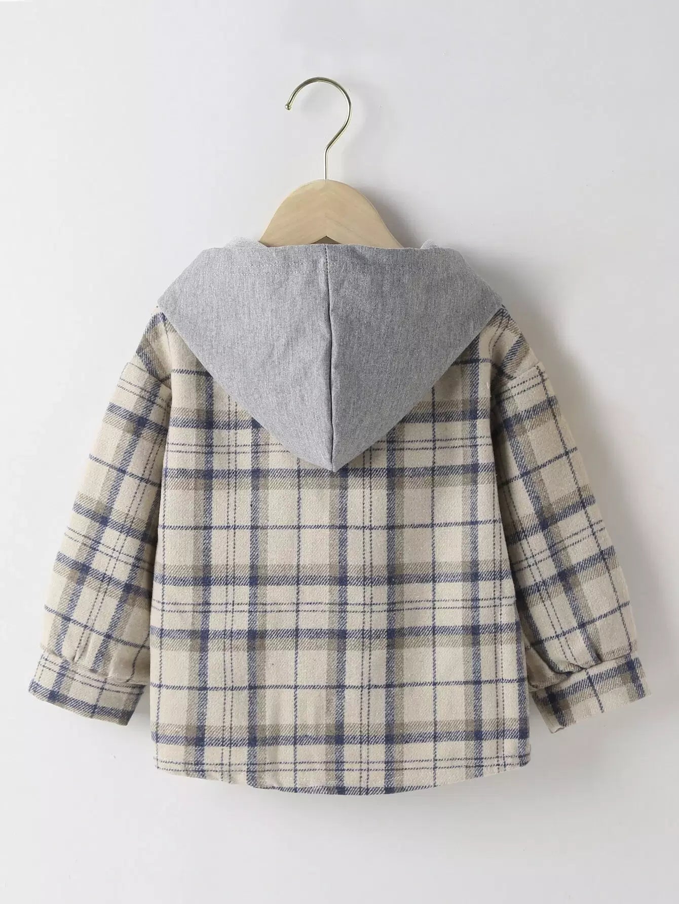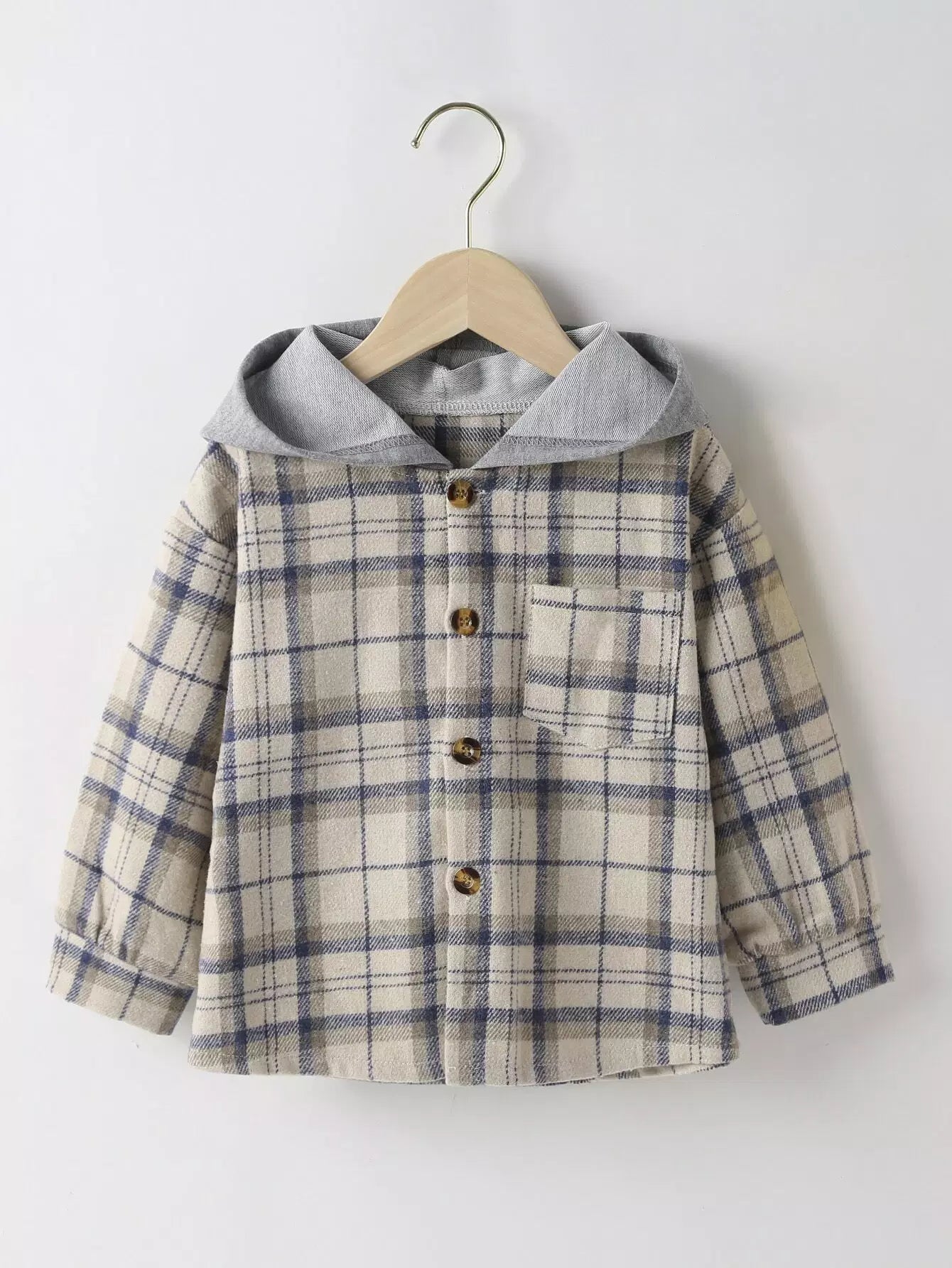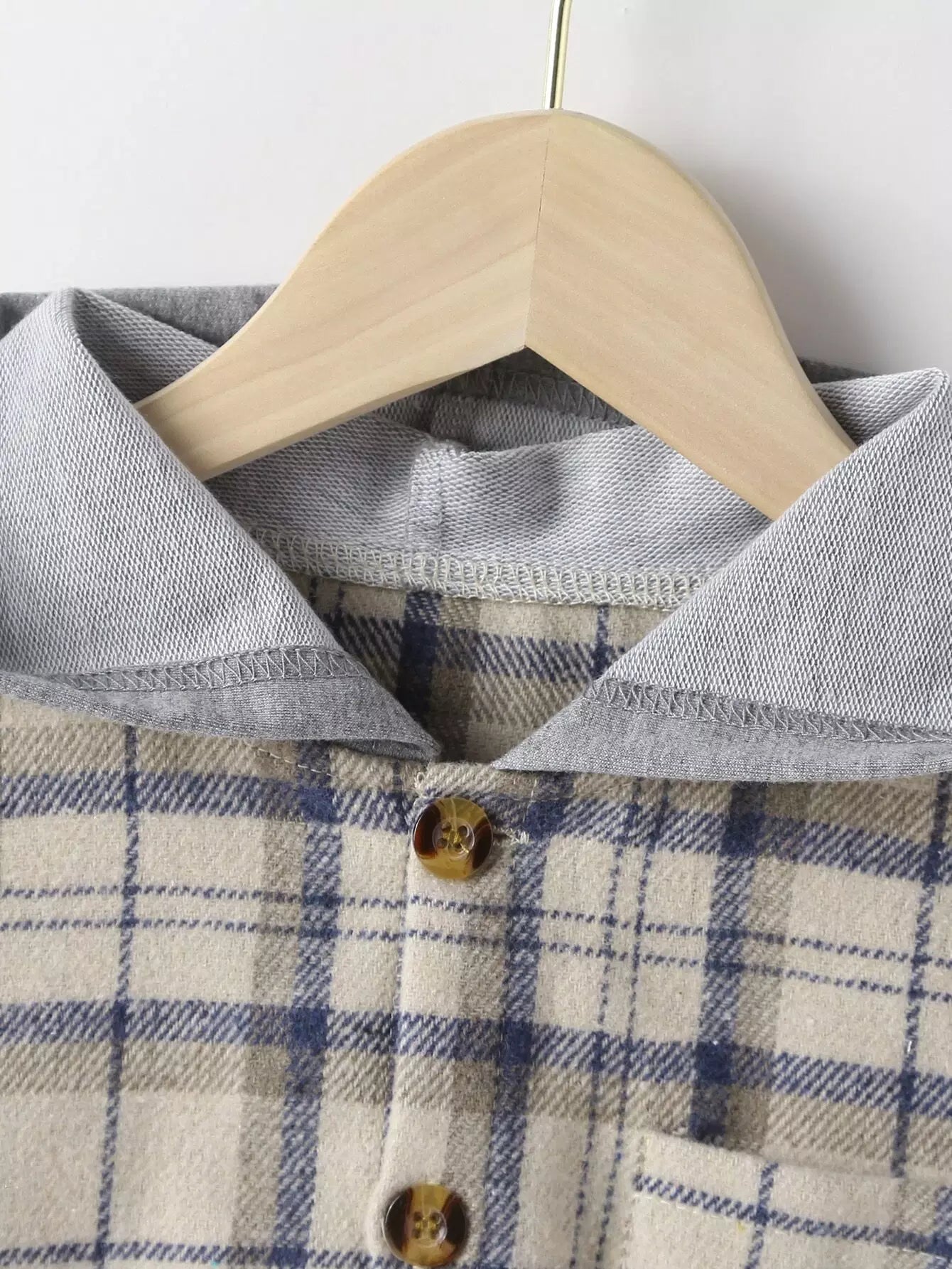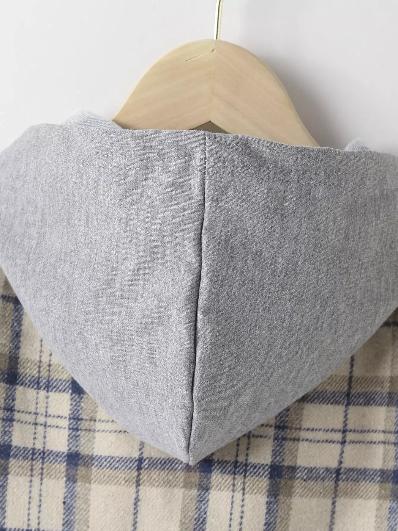 معطف بغطاء رأس منقوش بجيب منقوش للأولاد الصغار