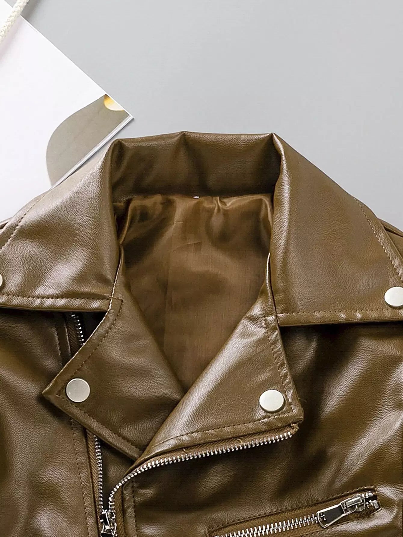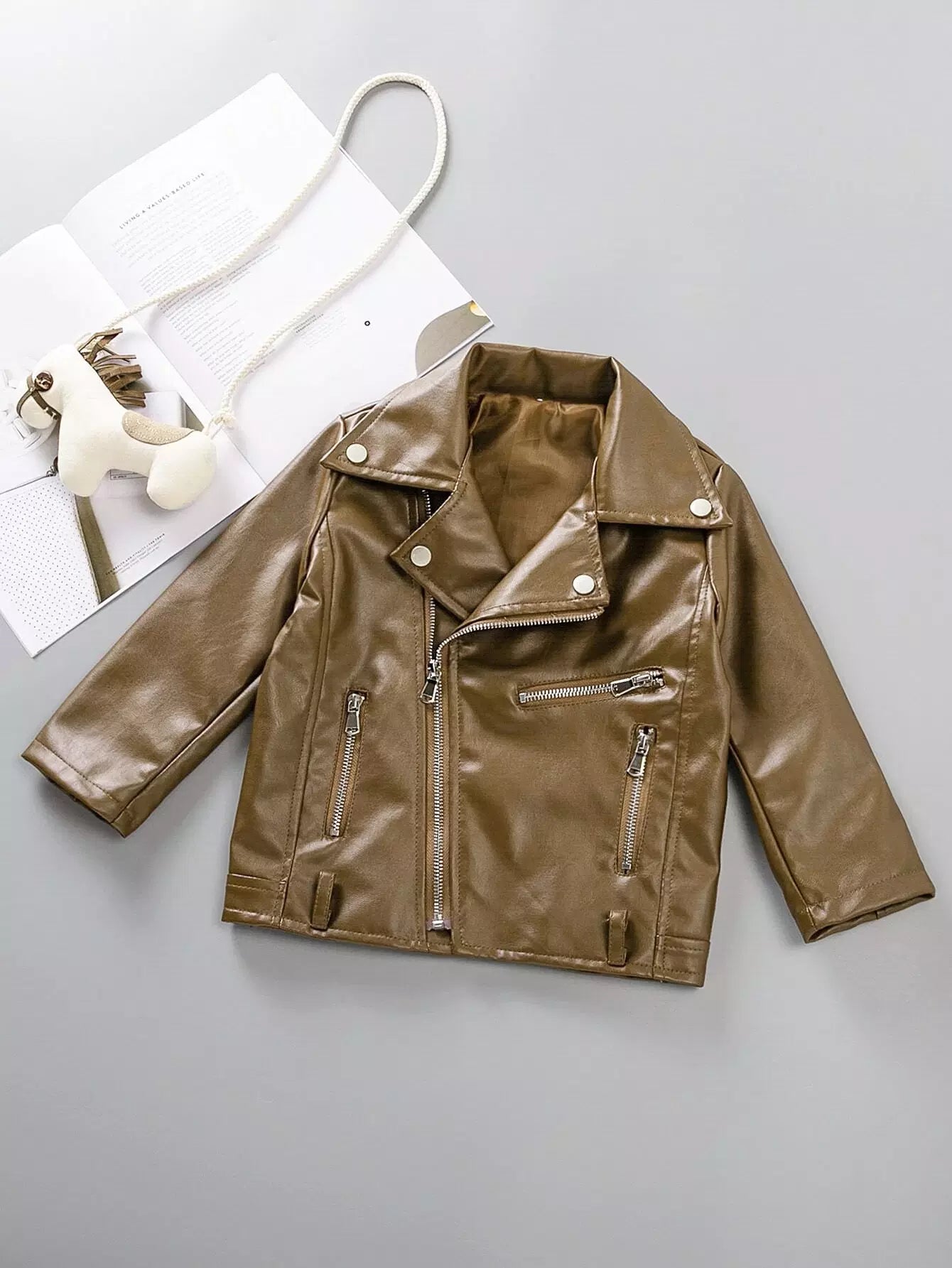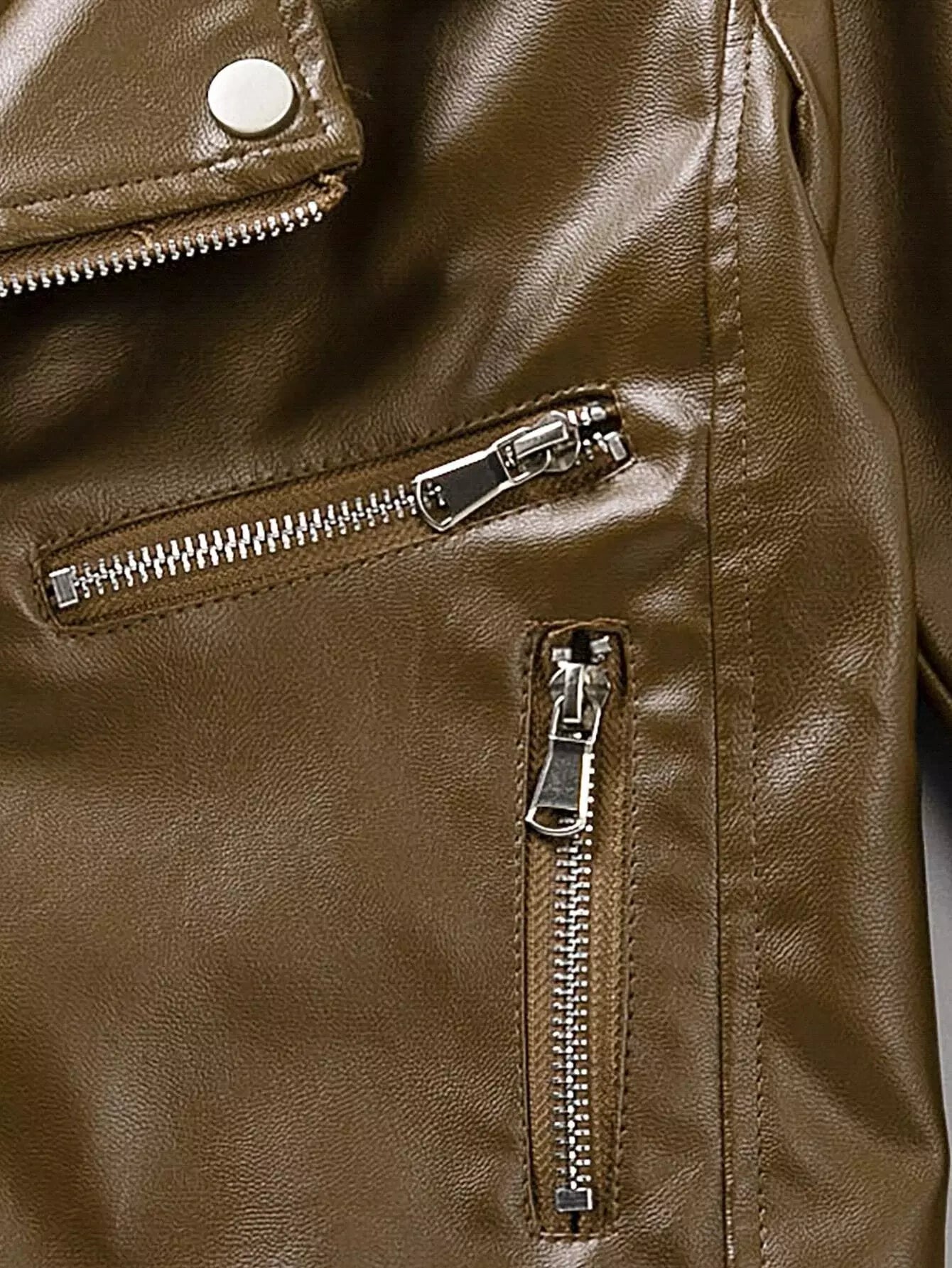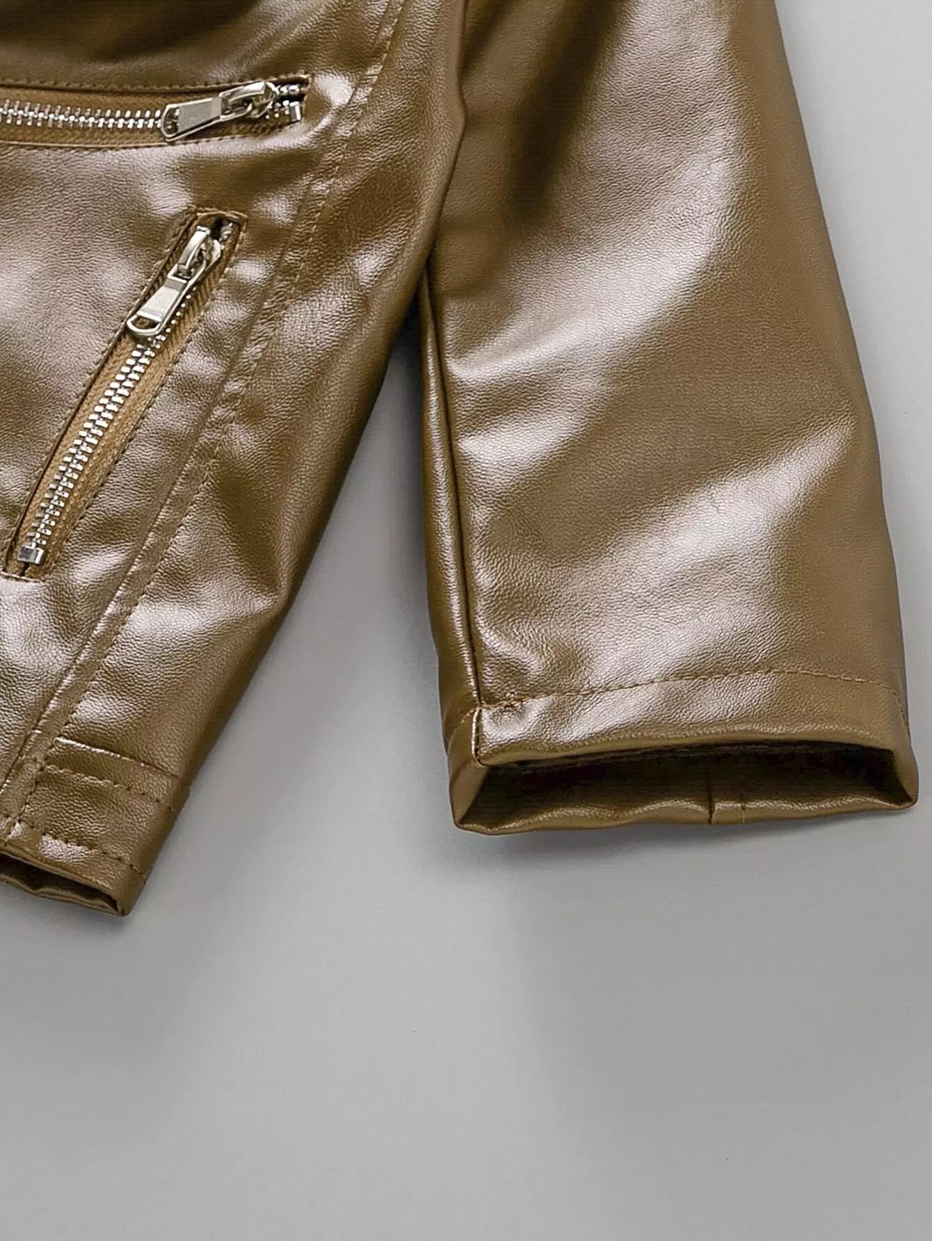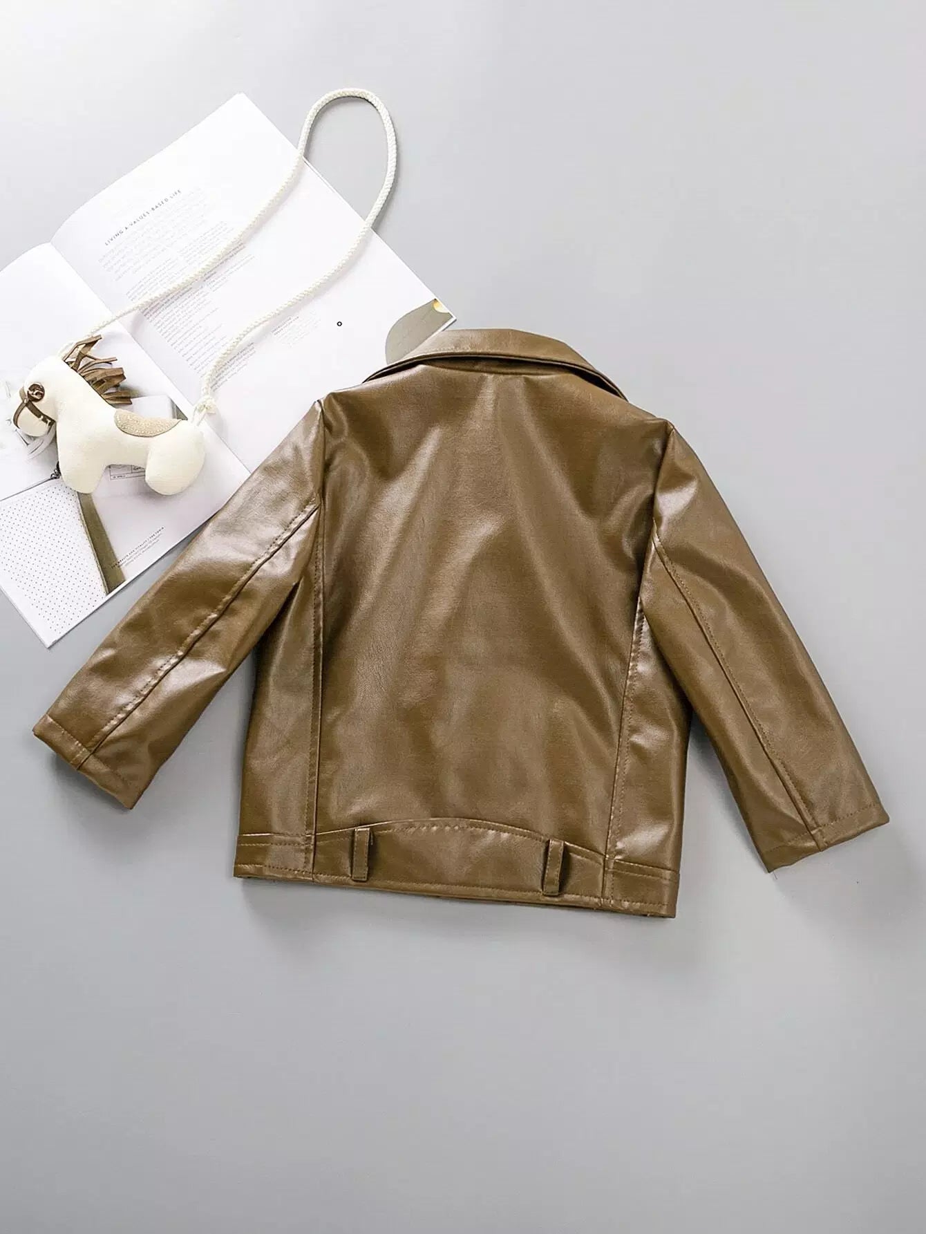 جاكيت موتو بسحاب أمامي من جلد البولي يوريثان للأولاد الصغار