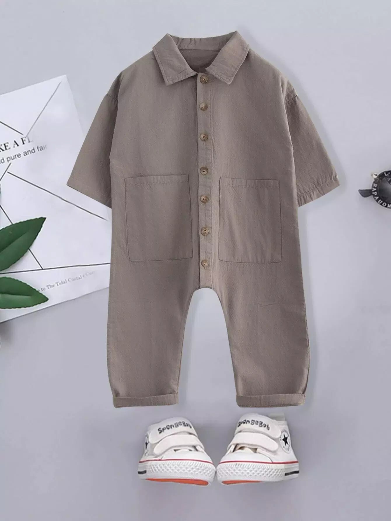 قميص أطفال صغار بأزرار وجيوب مزدوجة للأولاد الصغار