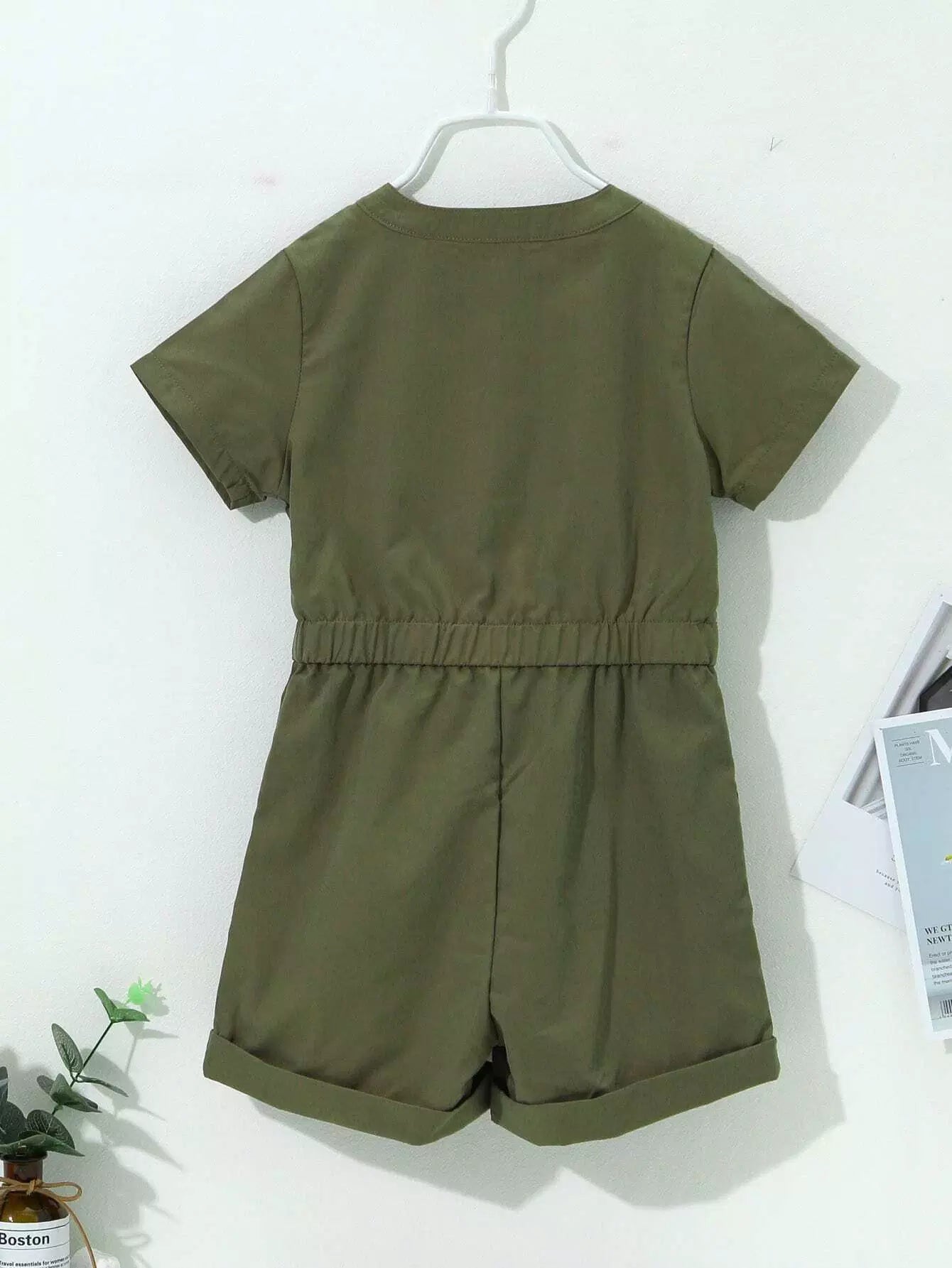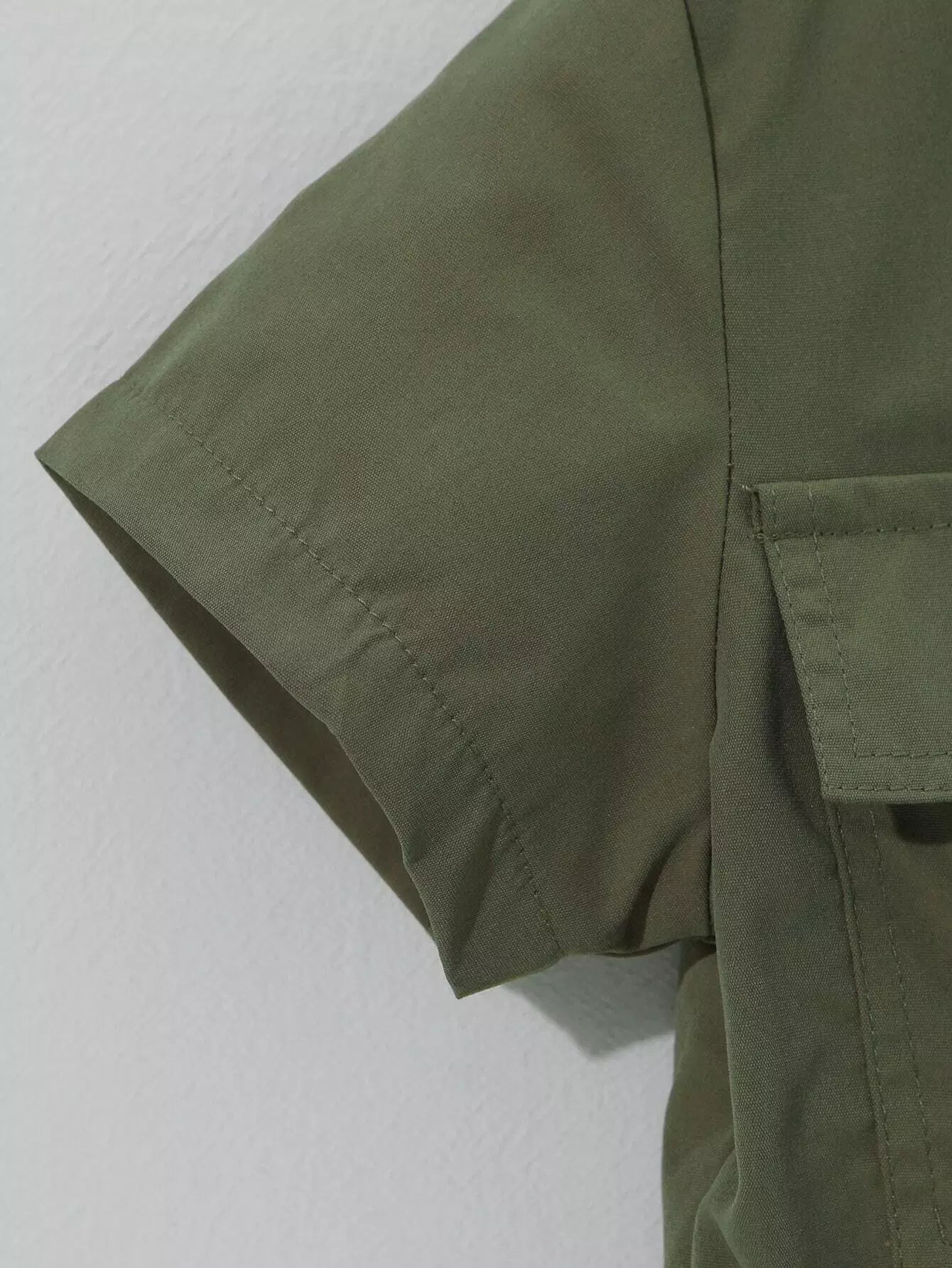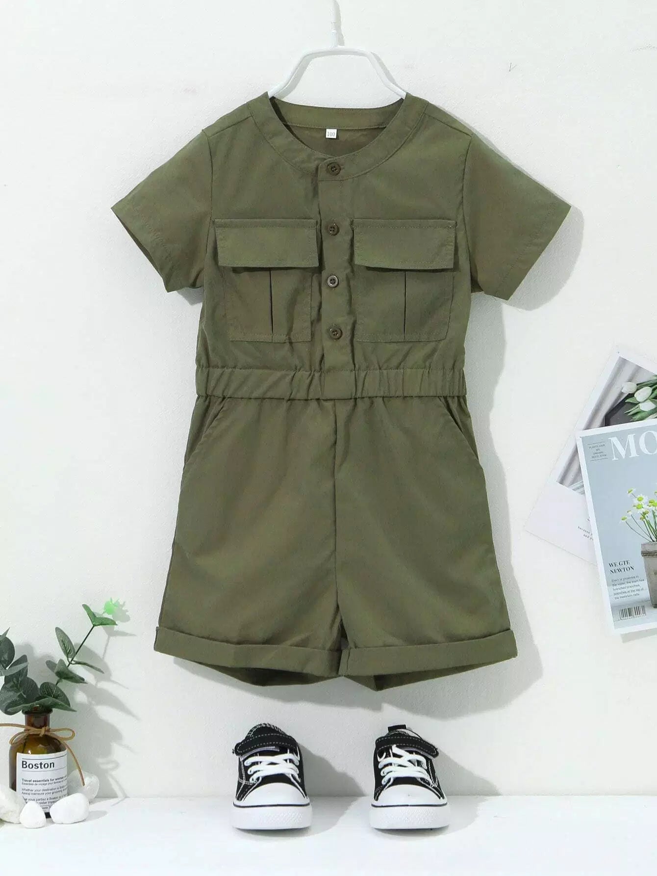 قميص رومبر أطفال صغار بنصف أزرار وجيوب بغطاء نصف أزرار