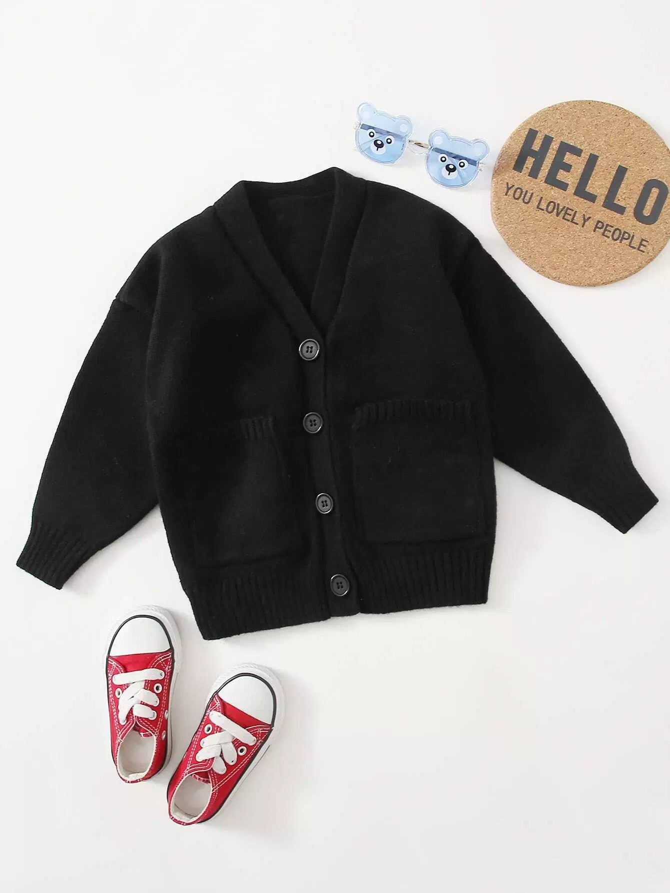 كارديغان بجيب مزدوج أمامي بأزرار للأولاد الصغار