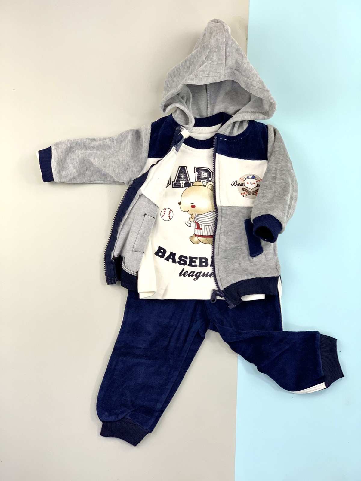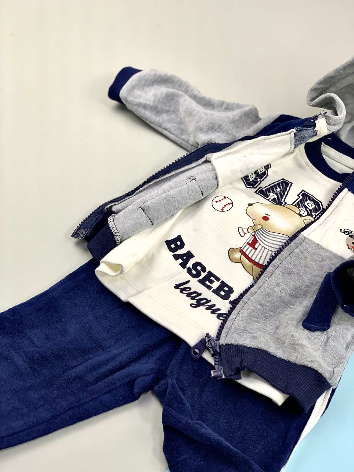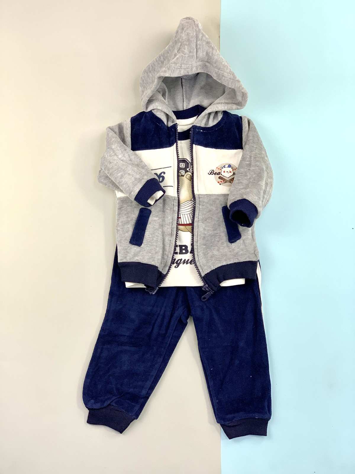 طقم تي شيرت وسترة للأولاد باللون الأزرق الداكن