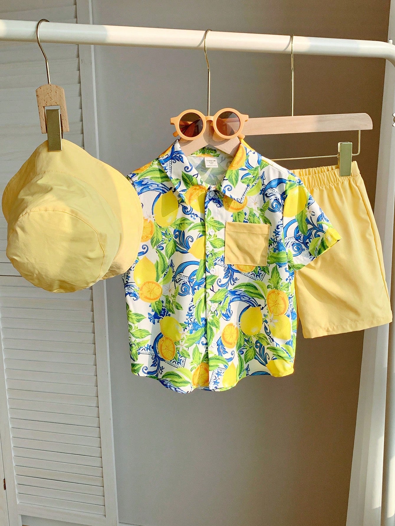 قميص شي إن الرياضي الكاجوال للأولاد الصغار، بنمط عطلة لطيف، بياقة، مكون من 3 قطع/مجموعة