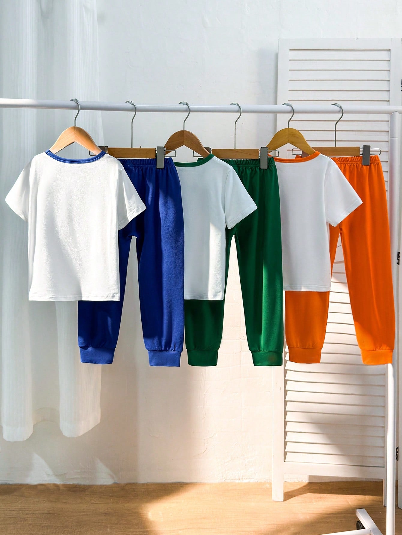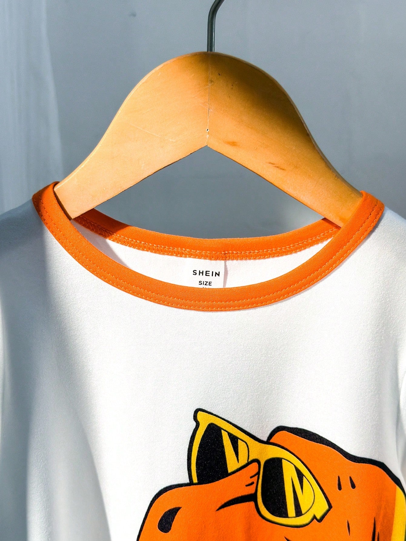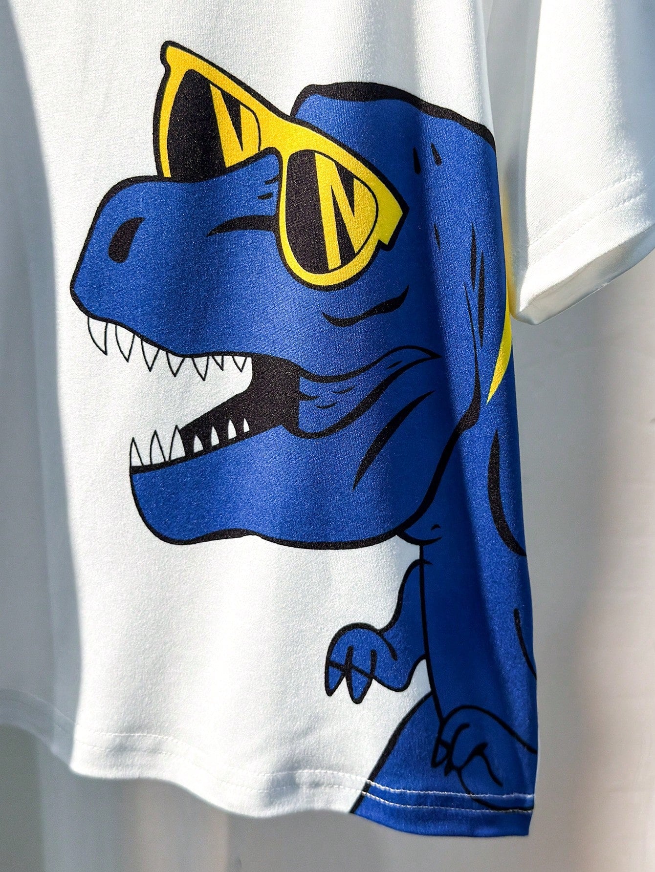 kids SHEIN Young Boy Dinosaur Print Crew Neck Short Sleeve Top And Drawstring Pants Pajama Set