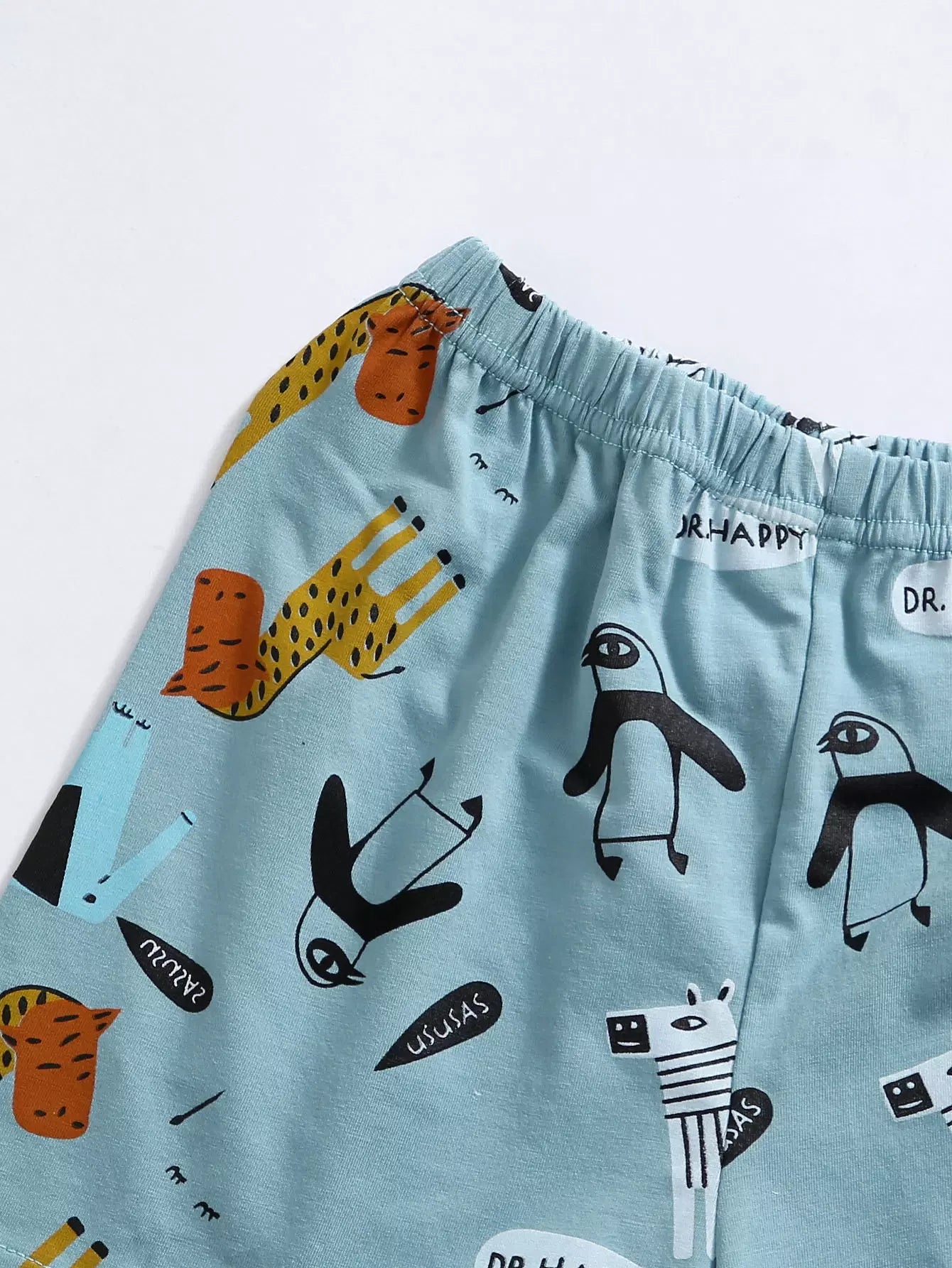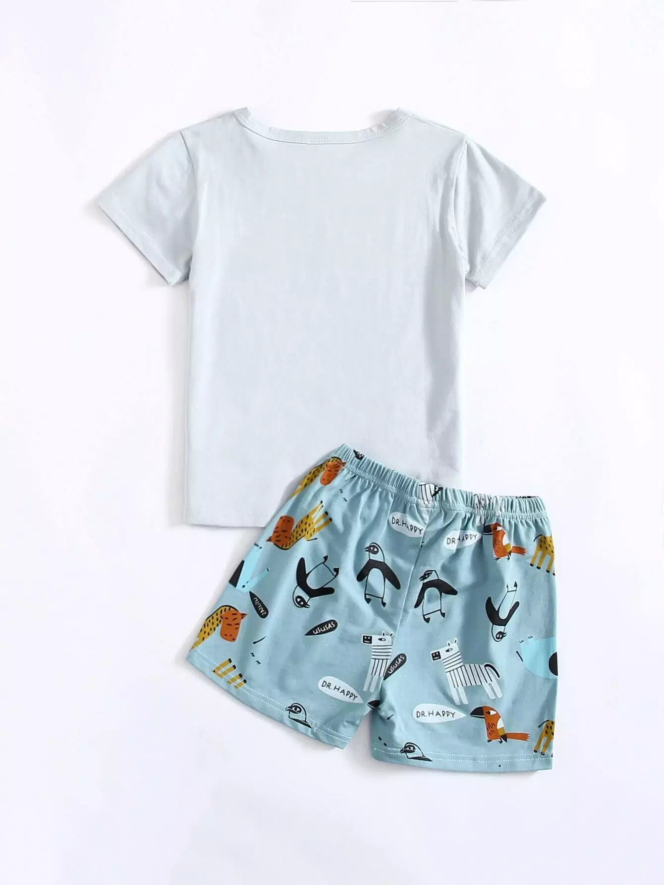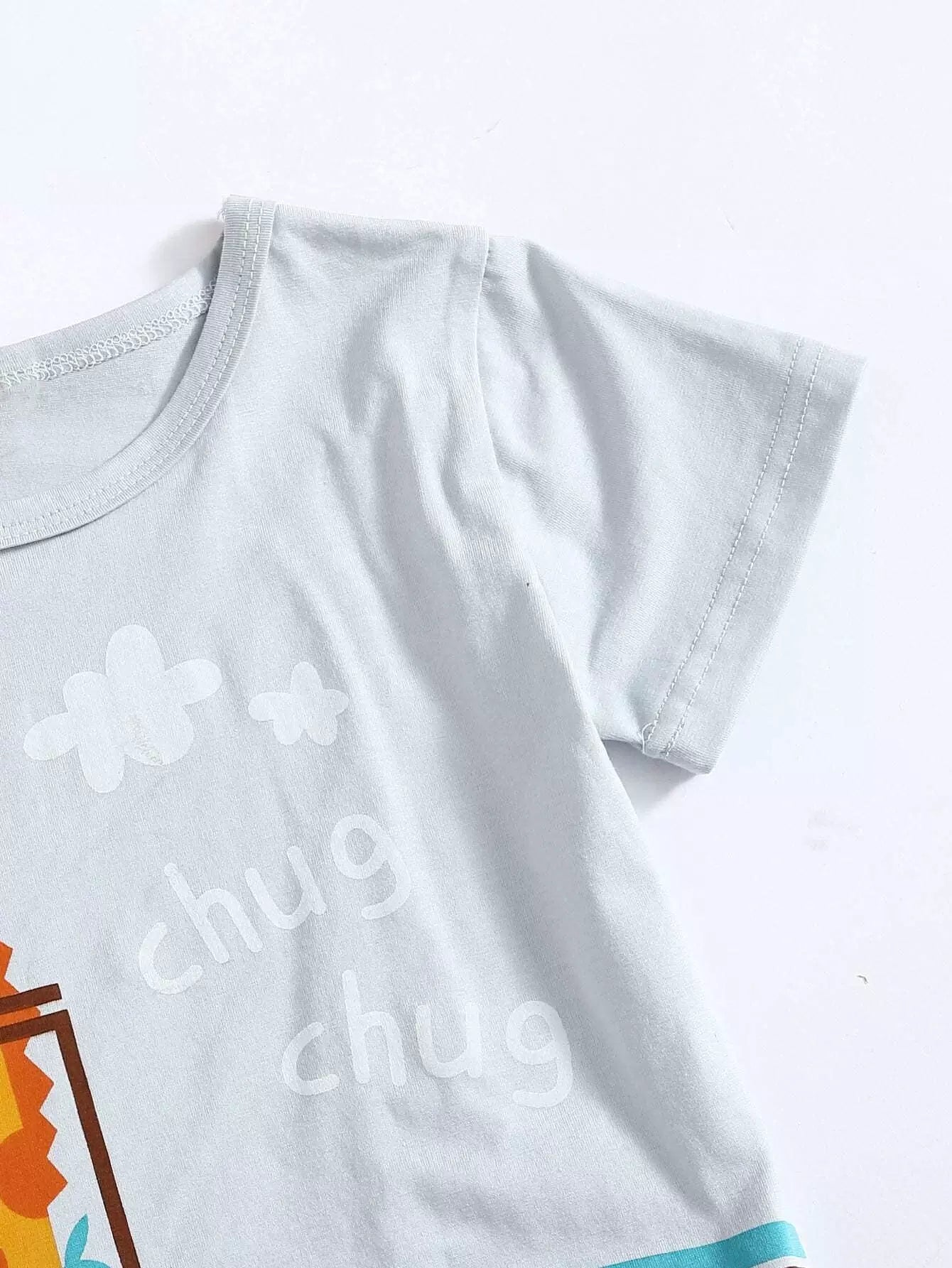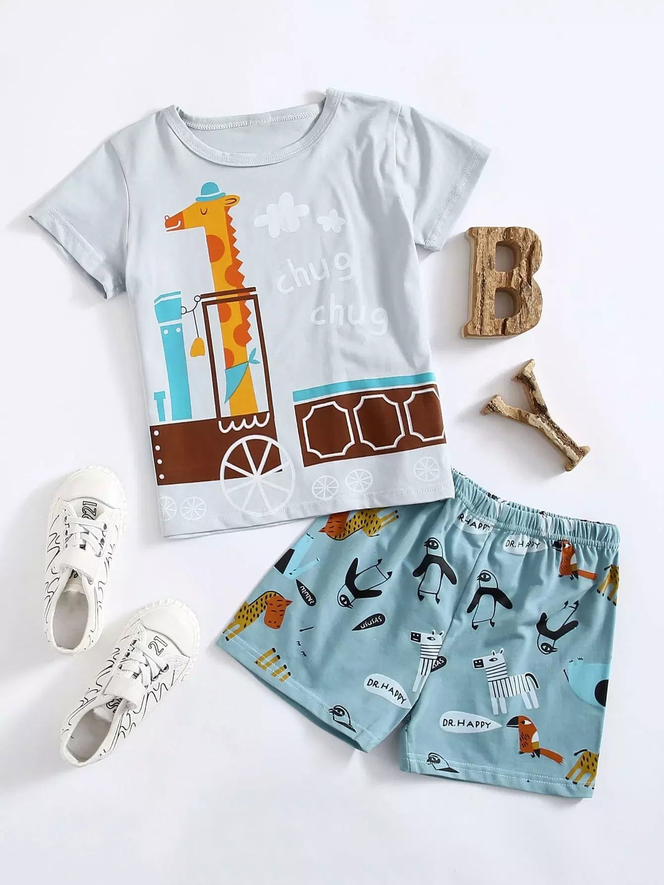 تي شيرت برسومات ورسومات كارتونية ورسومات حروف للأولاد الصغار مع شورت