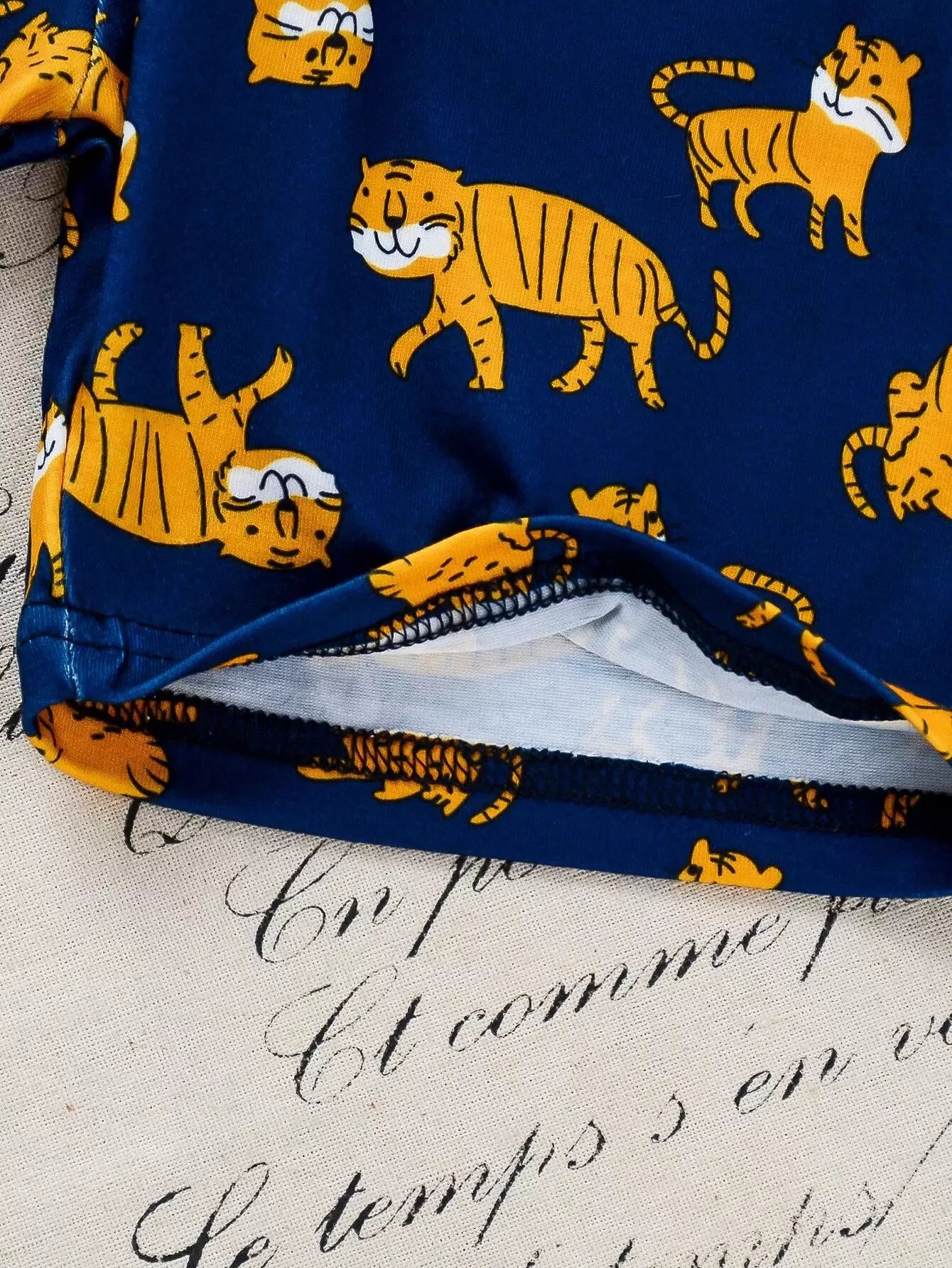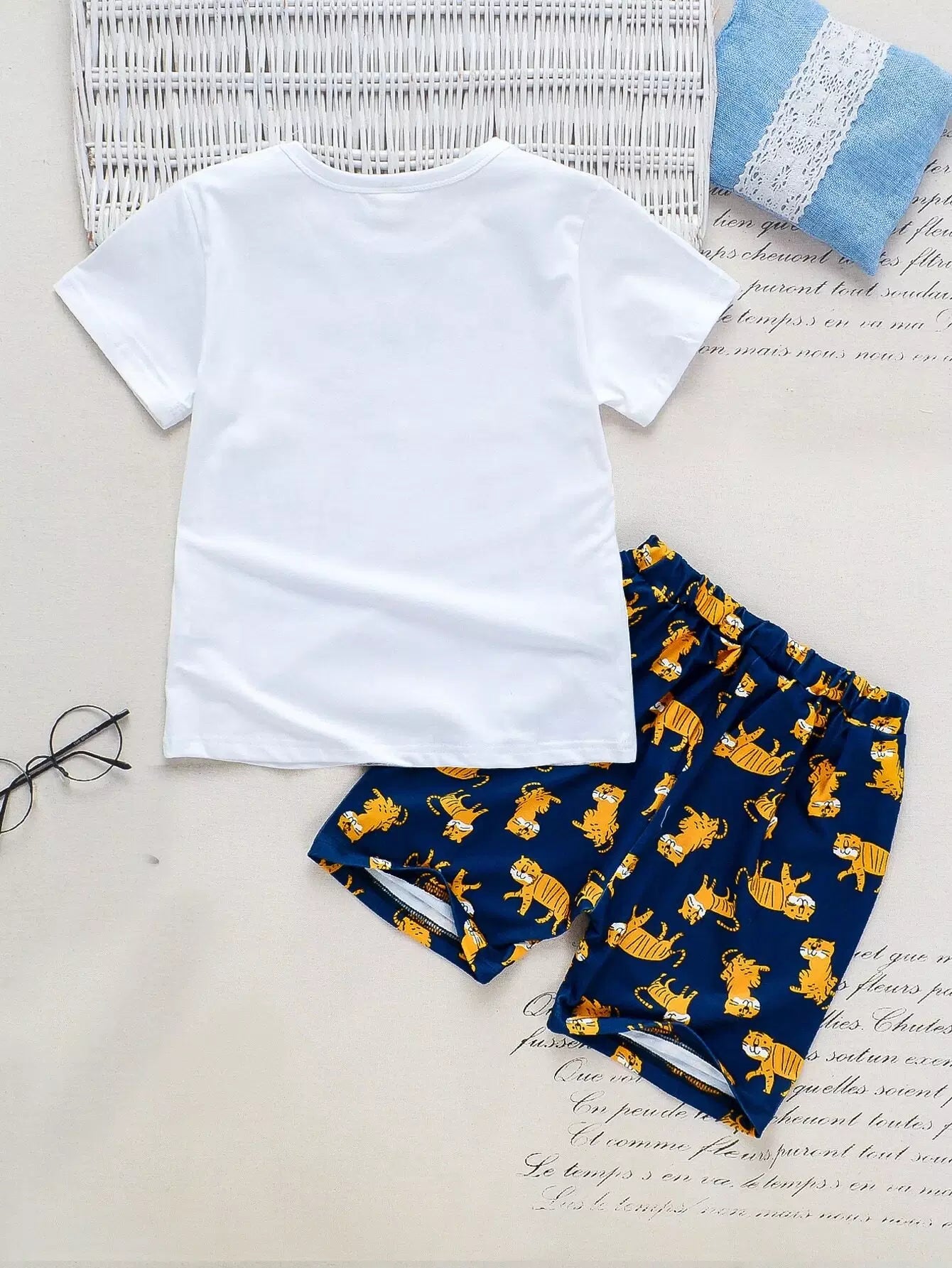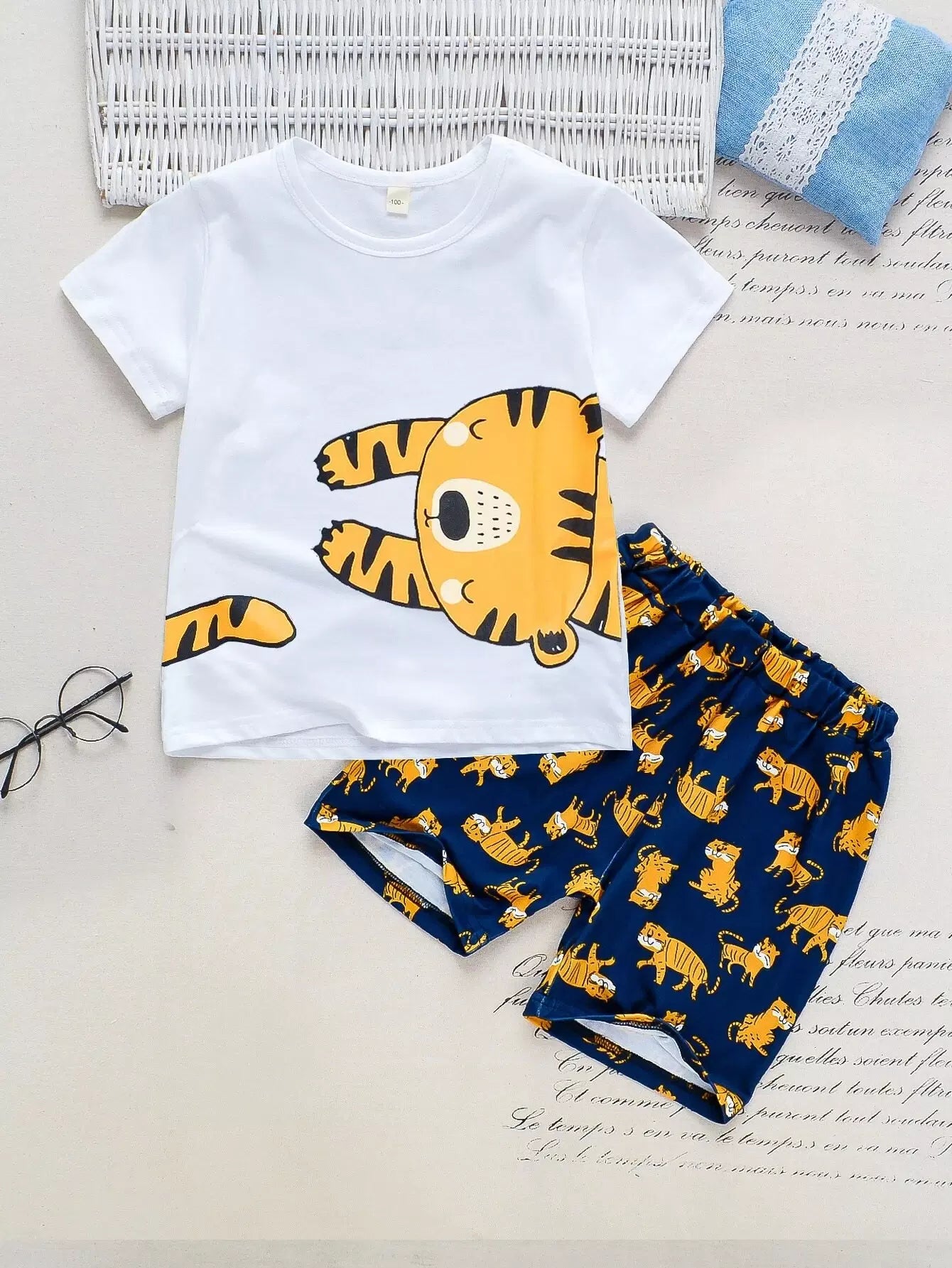 أطفال صغار تي شيرت وشورت بطبعة نمر كرتوني للأولاد الصغار