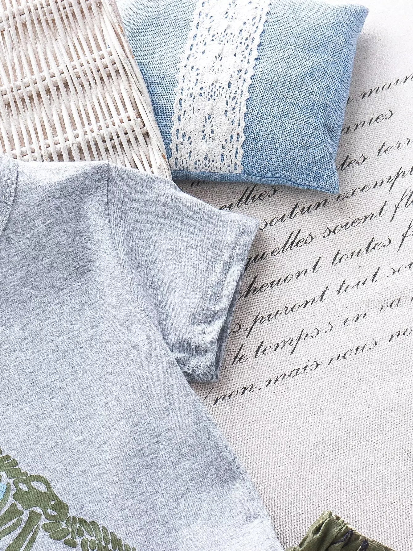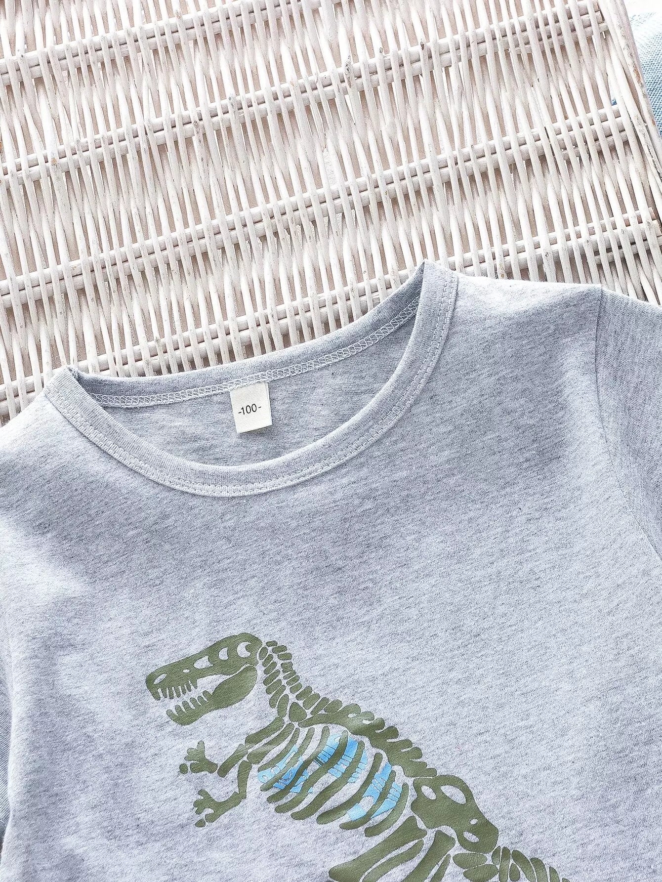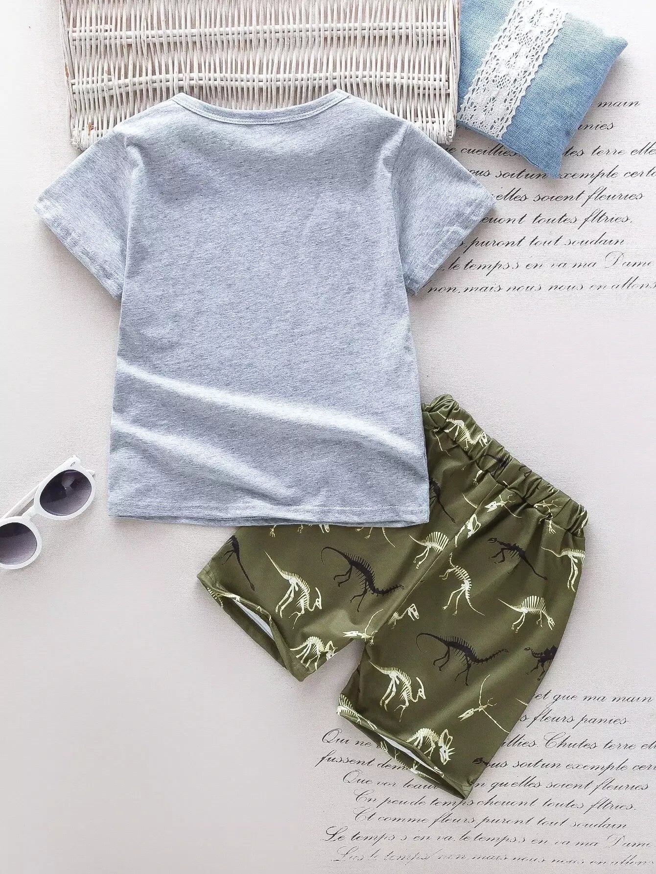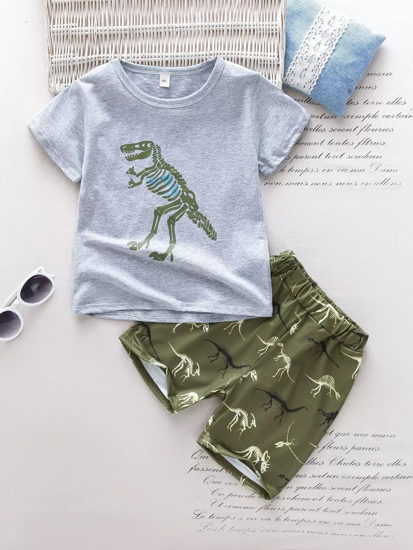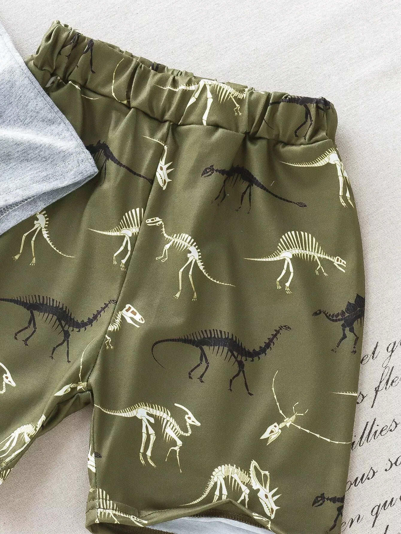 تيشيرت بطبعة ديناصور للأولاد الصغار وشورت رياضي