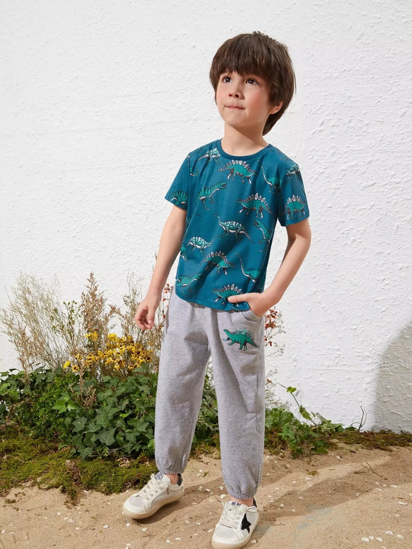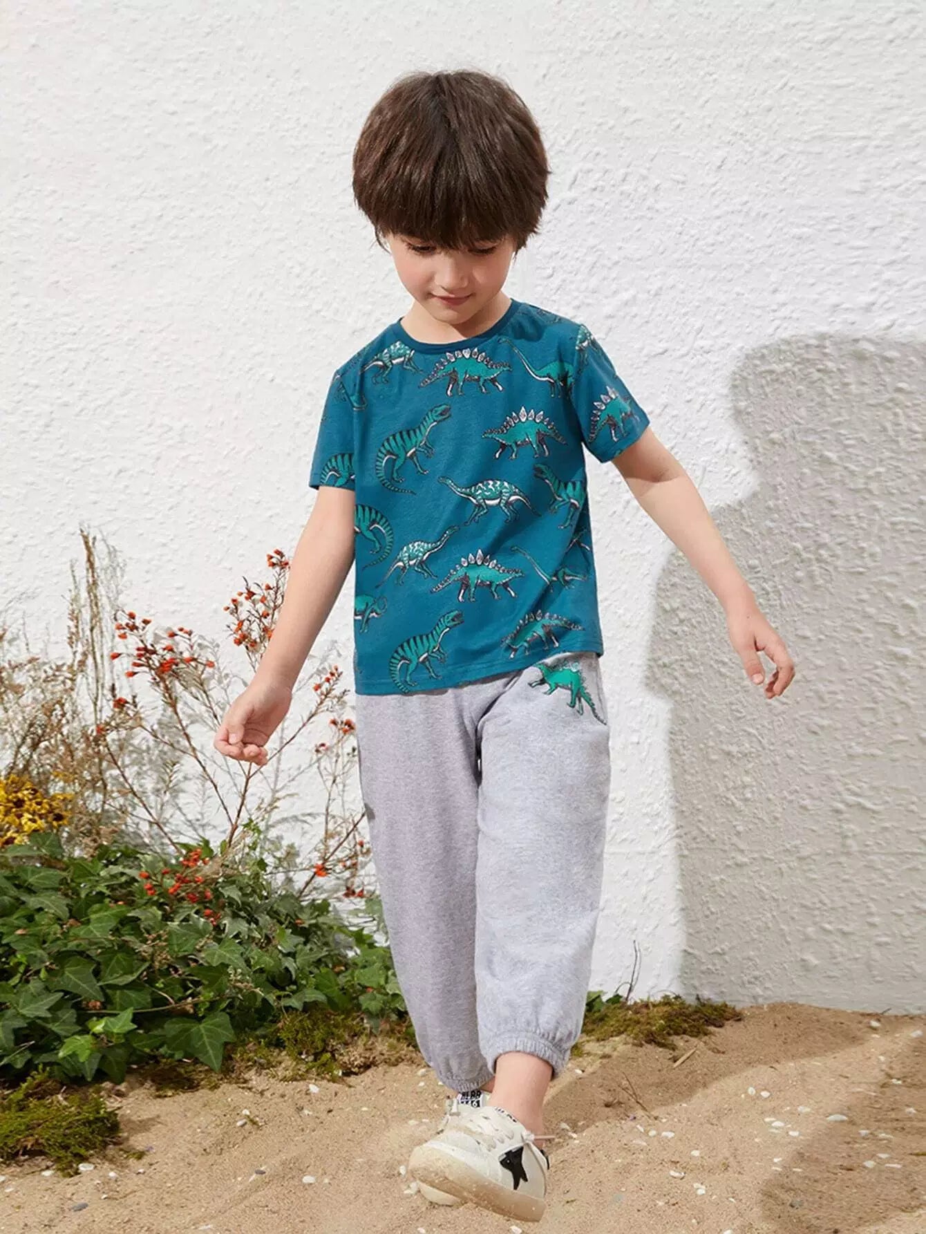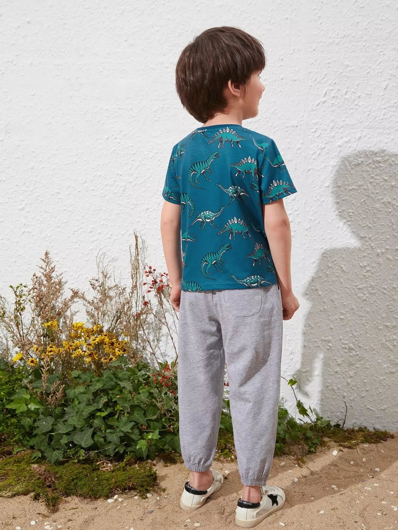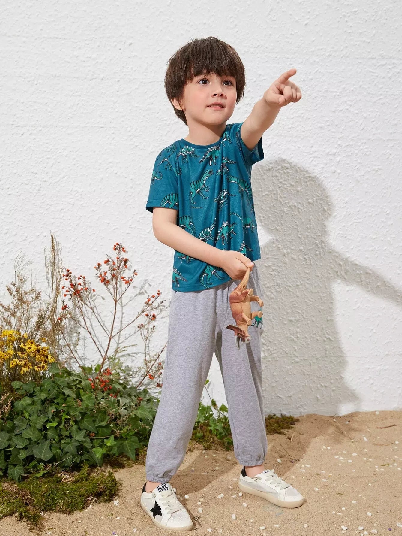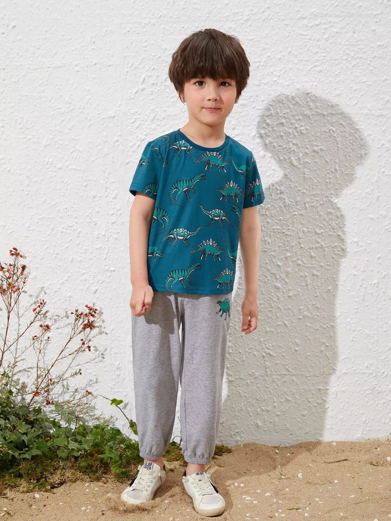 طقم توب وبنطلون بطبعة ديناصور للأولاد الصغار