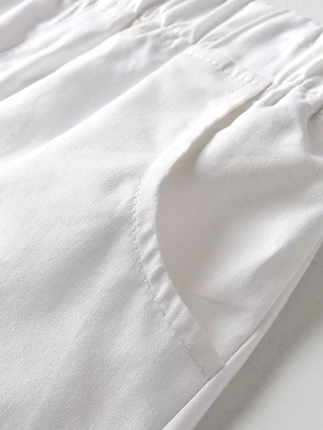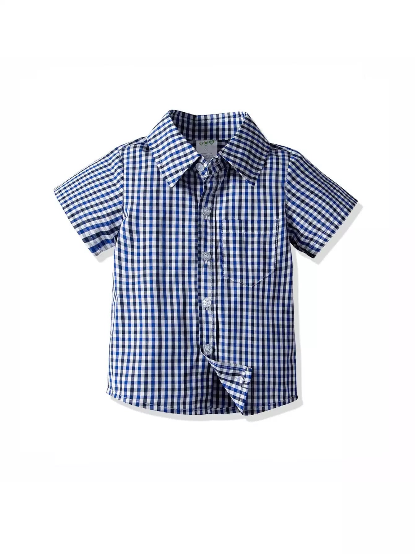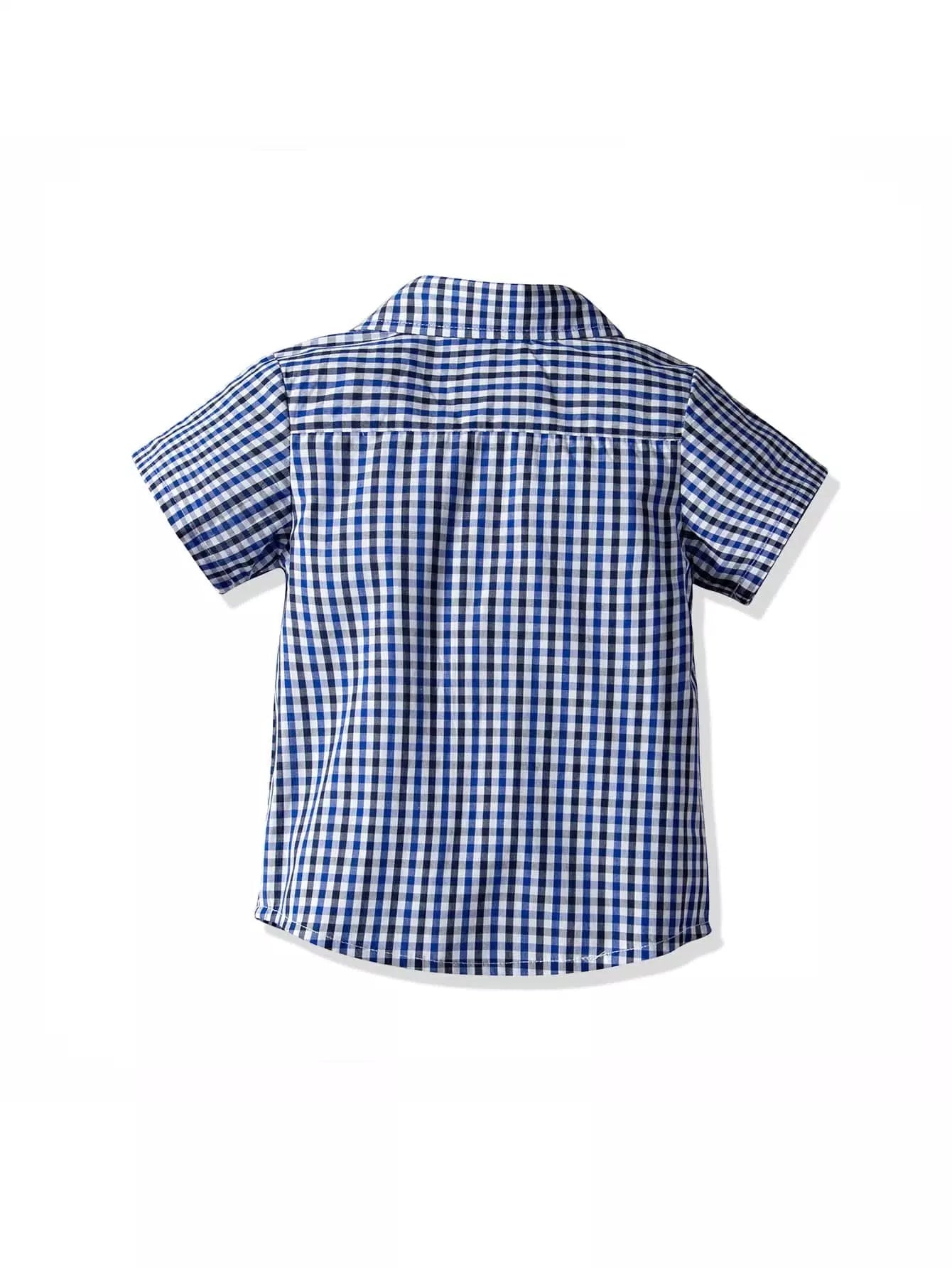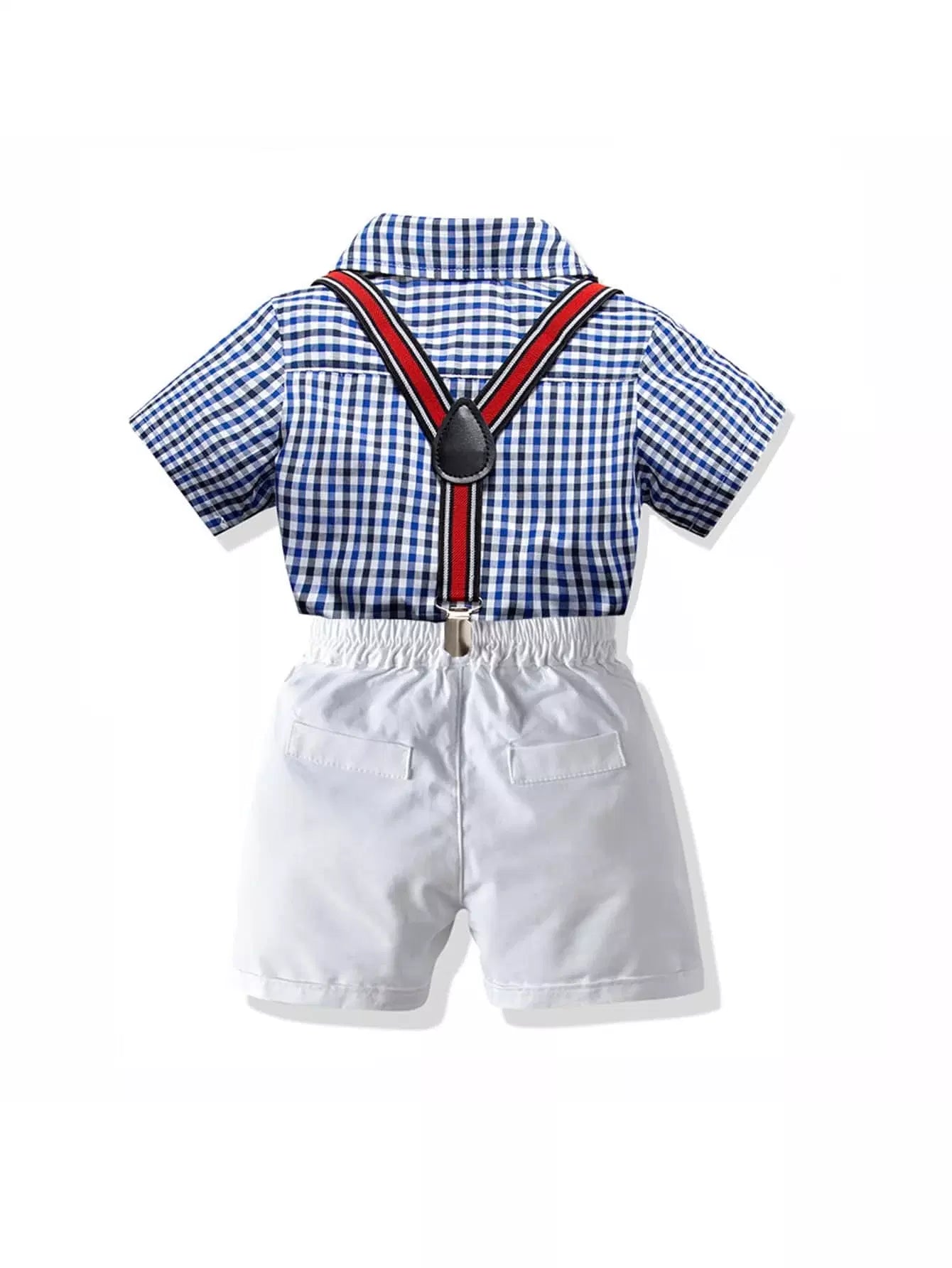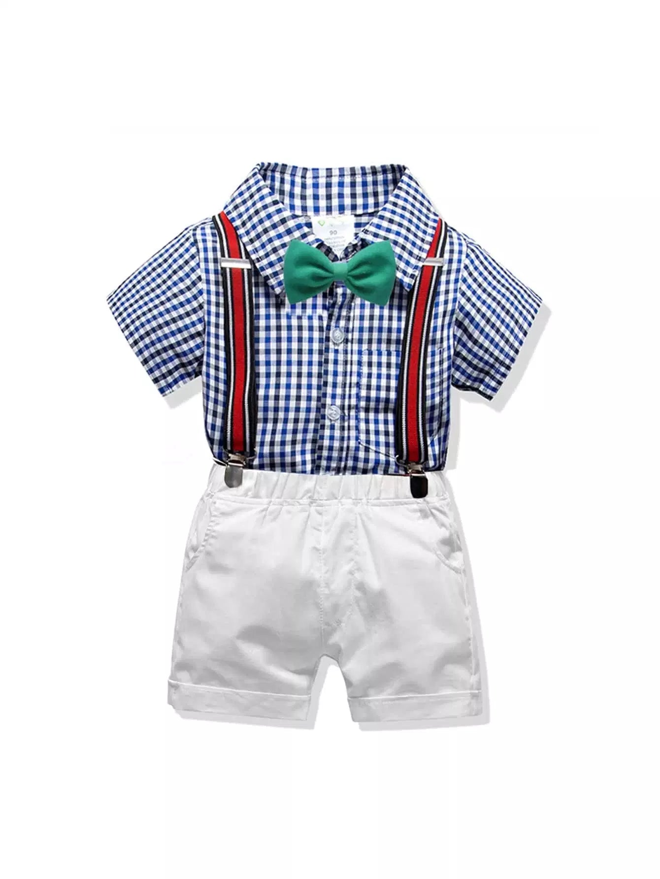الأولاد الصغار قميص قطني بعقدة أمامية من الأمام مع شورت بحمالات