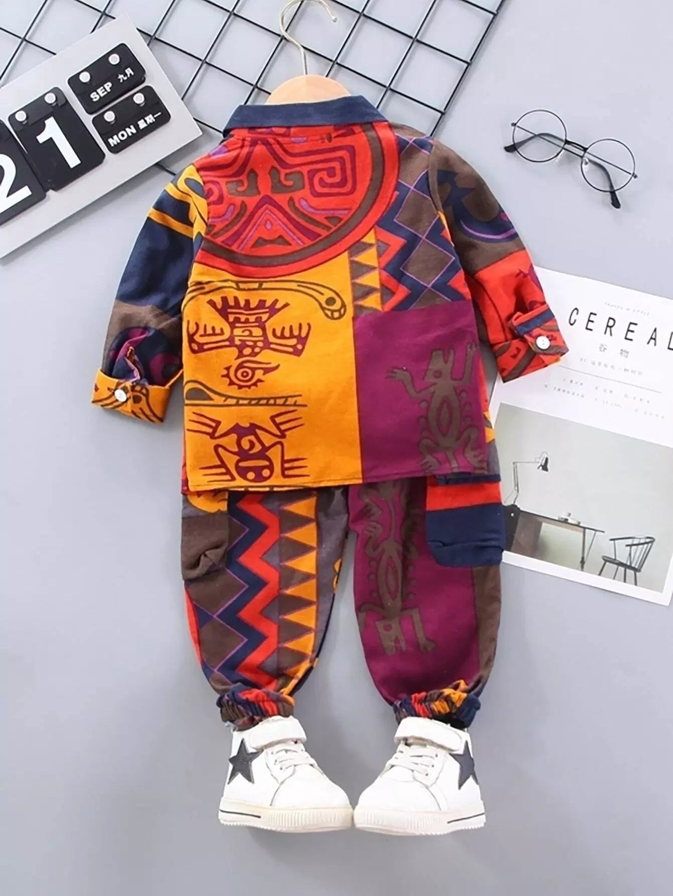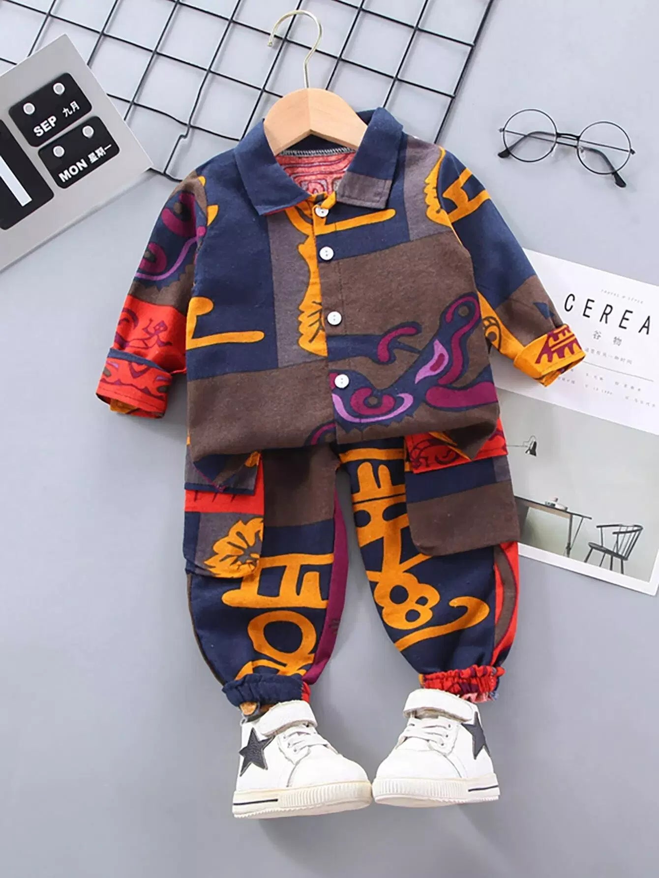 قميص بطبعة جرافيك للأولاد الصغار وبنطال بجيب قابل للطي