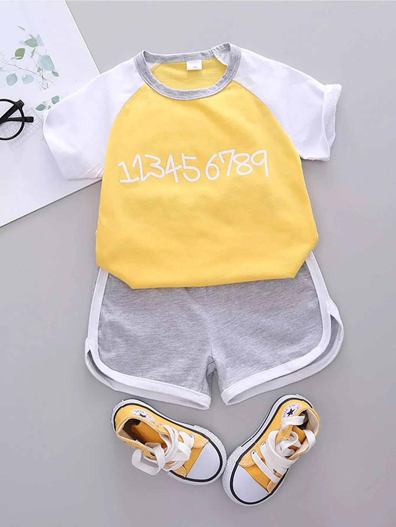 تيشيرت وشورت برسوم حروف للأولاد الصغار