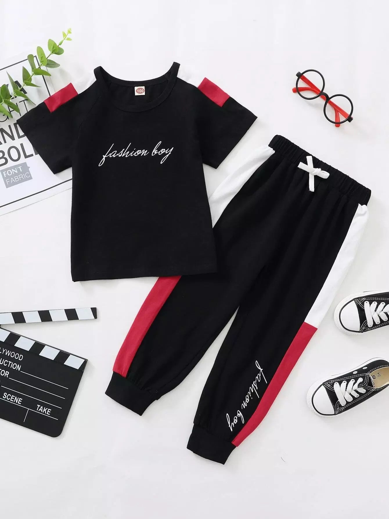 تيشيرت وبنطال رياضي برسوم حروف للأولاد الصغار