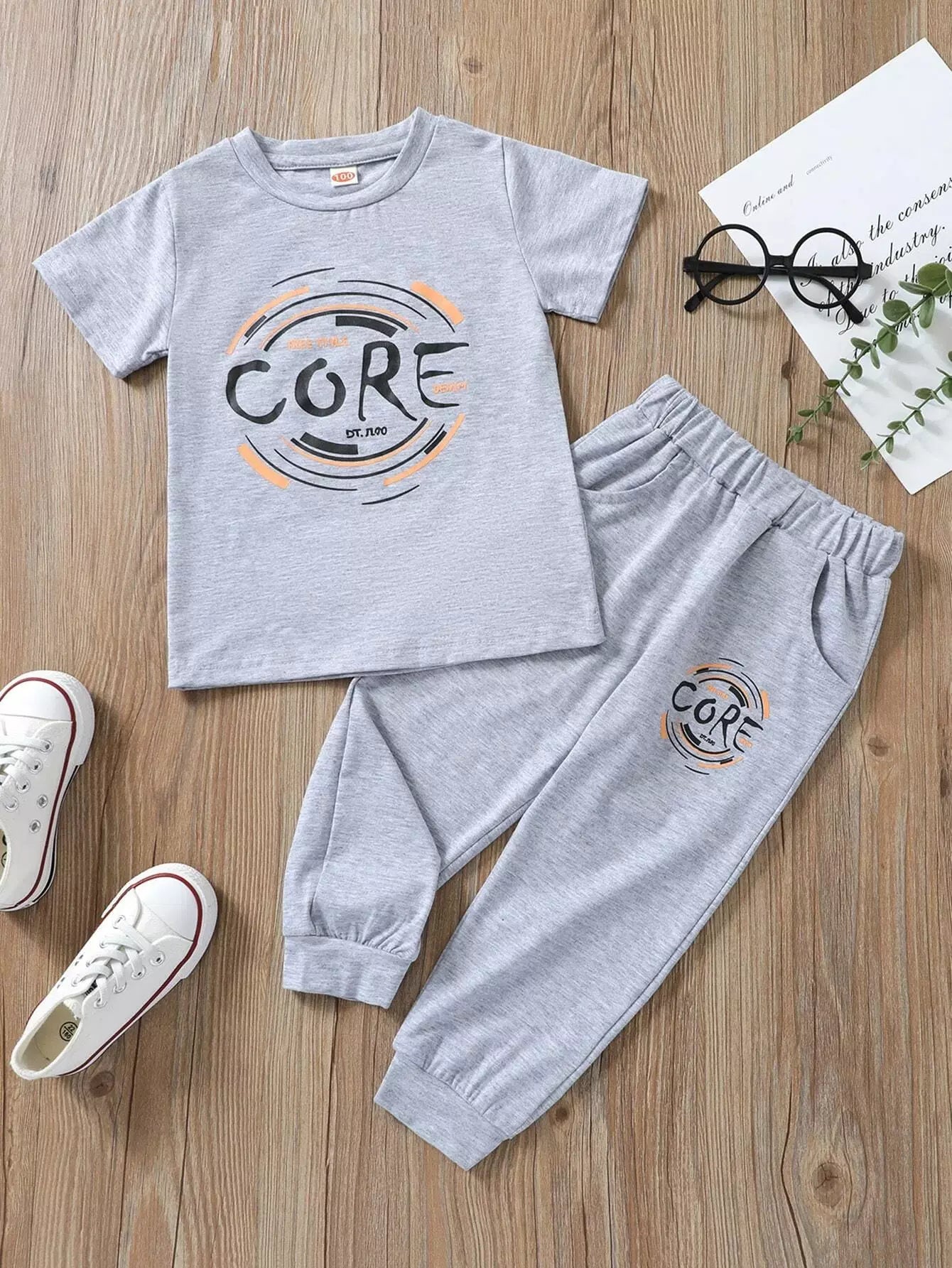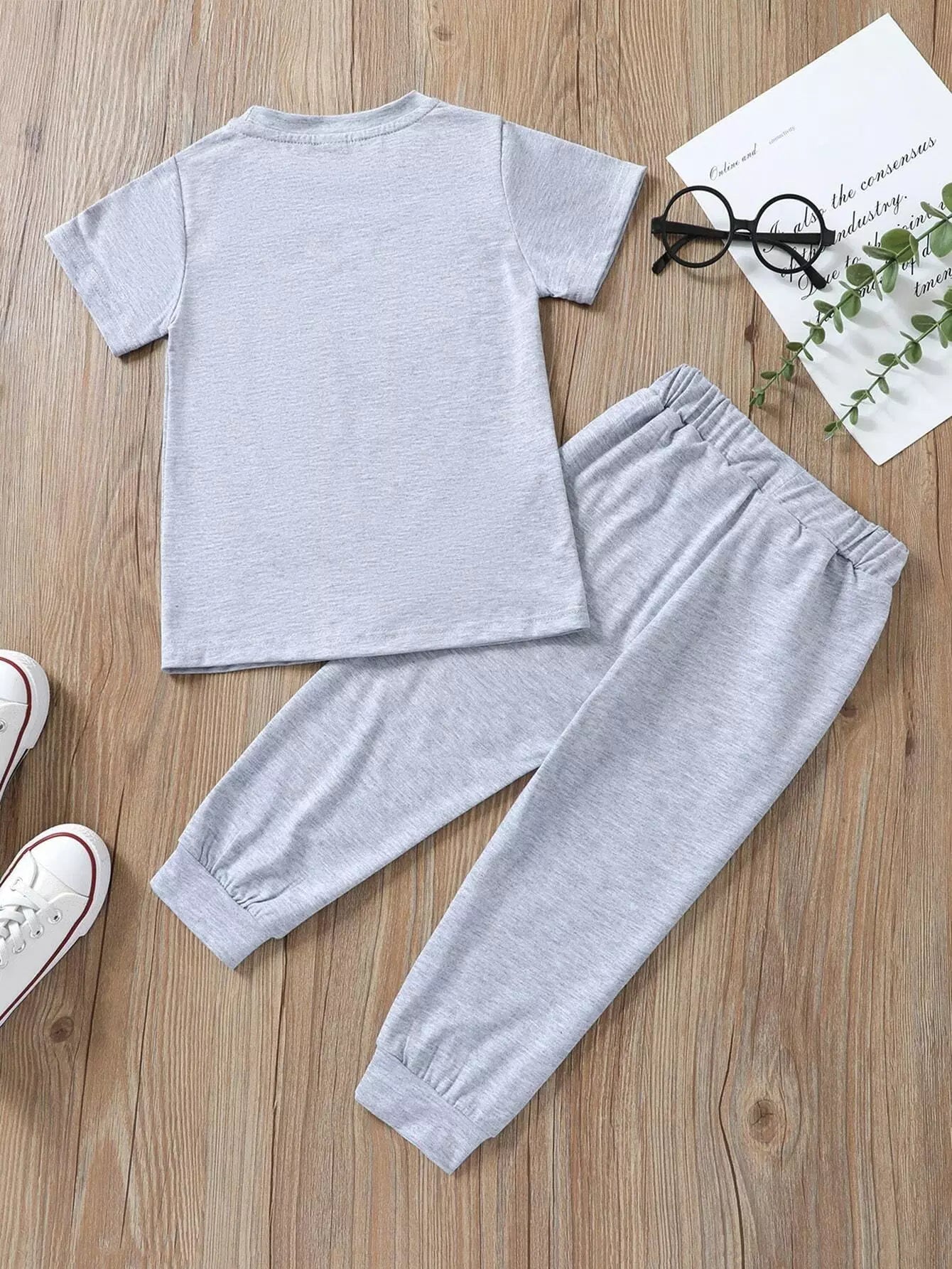 تيشيرت وبنطال رياضي برسوم حروف للأولاد الصغار