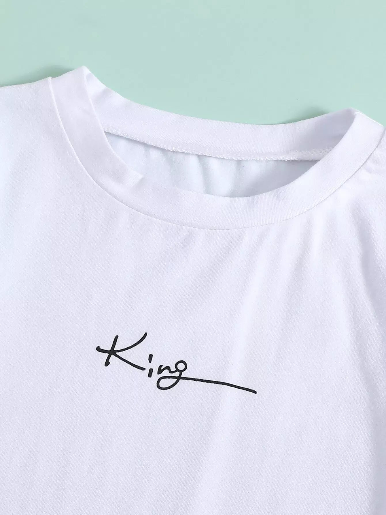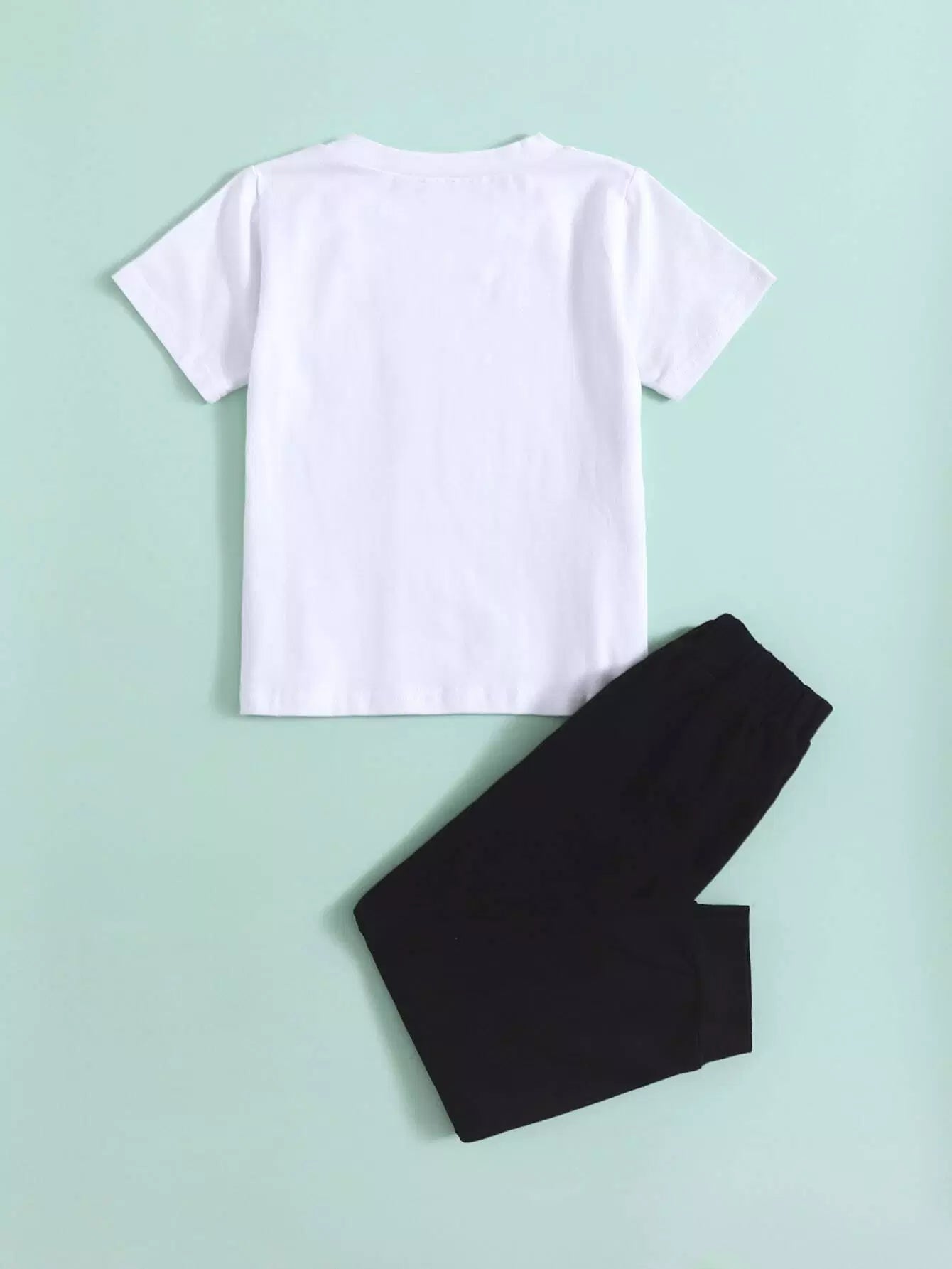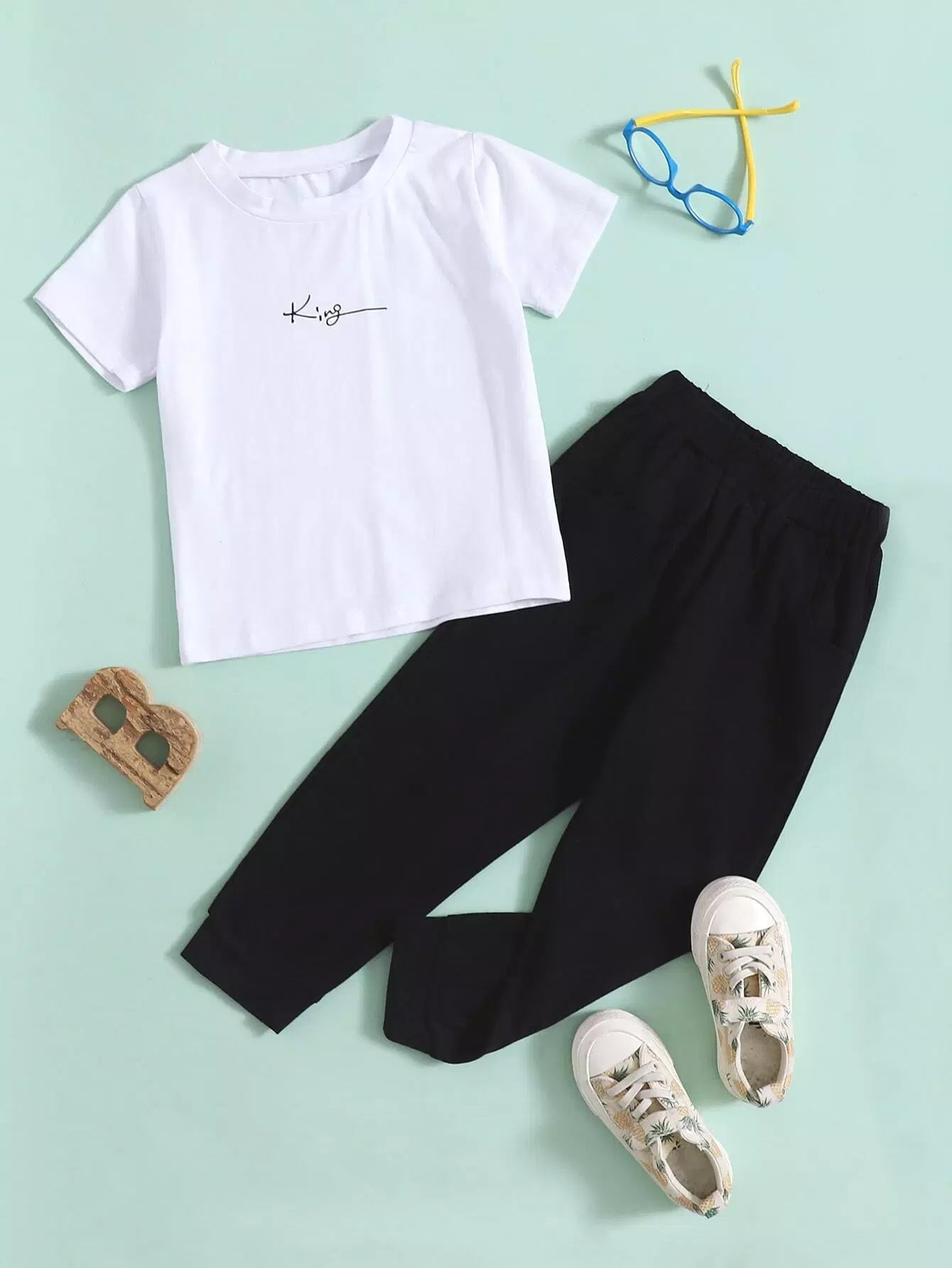 تي شيرت برسومات حروف للأولاد الصغار مع بنطال رياضي