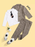 أطفال صغار سترة وبنطلون منقوشة منقوشة للأولاد الصغار مع بنطلون وبلوزة بربطة عنق