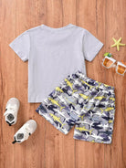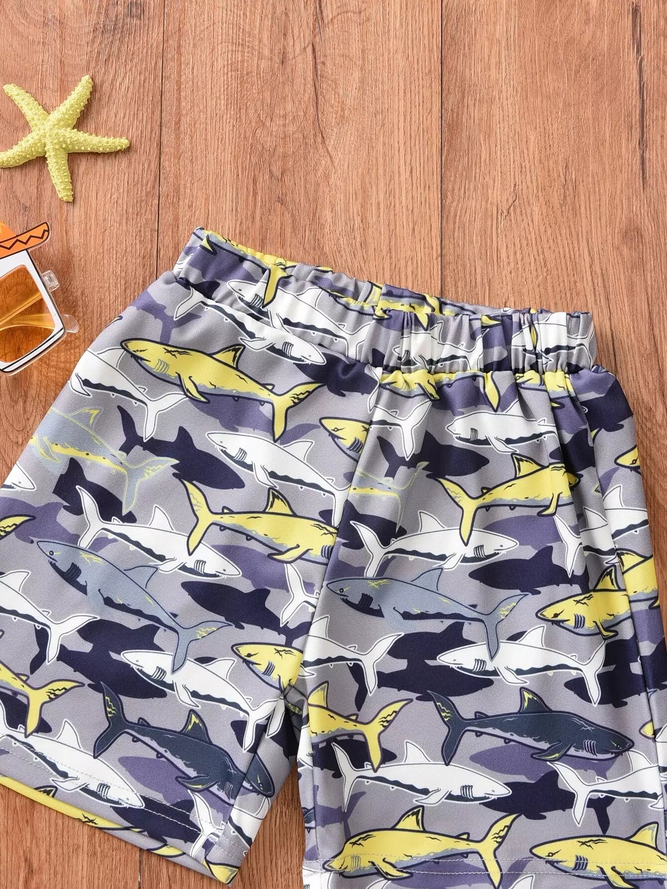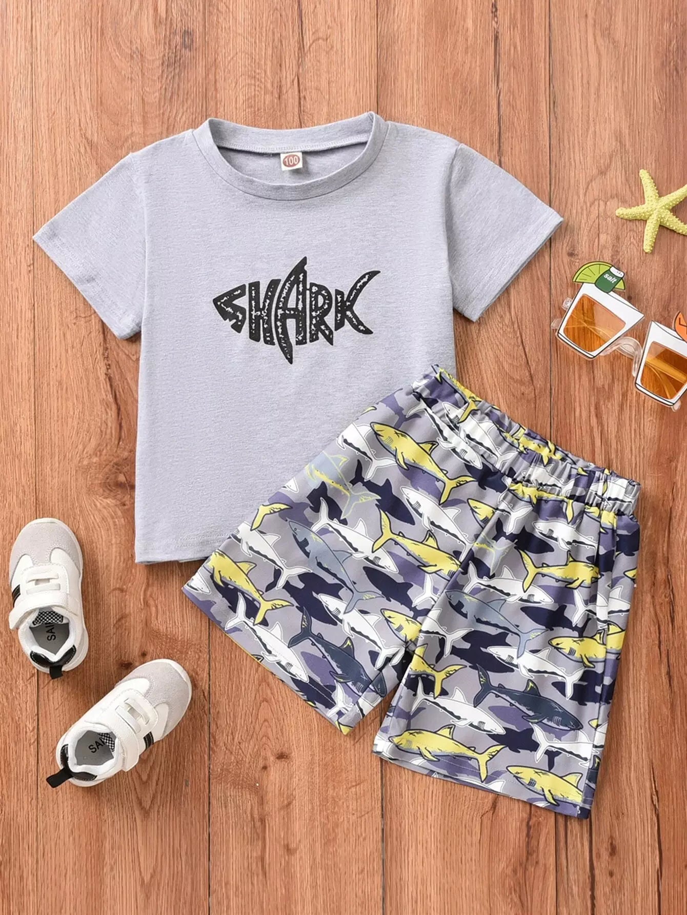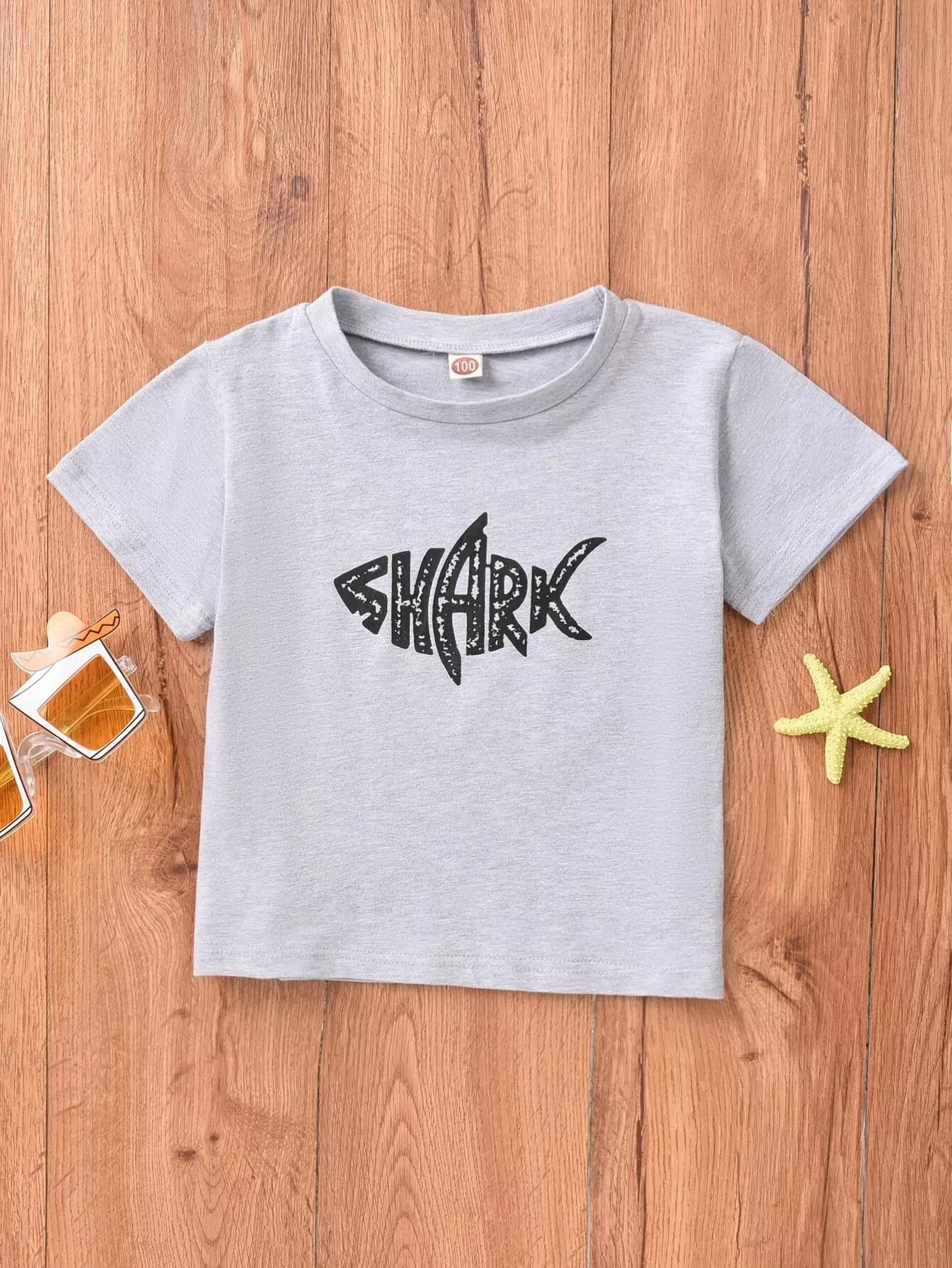 تي شيرت بطبعة قرش للأولاد الصغار مع شورت رياضي
