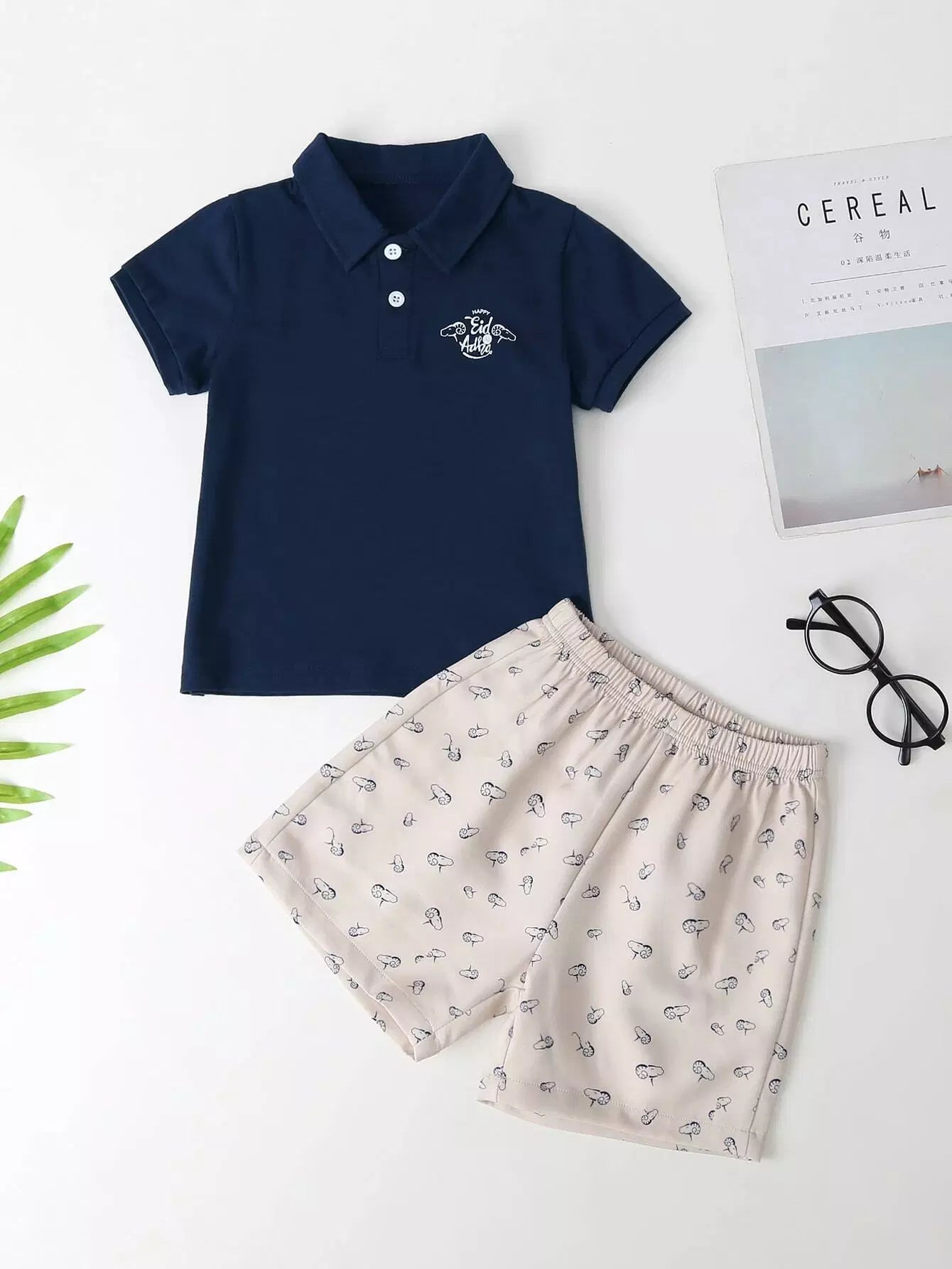 تي شيرت بولو بطبعة خروف للأولاد الصغار مع شورت