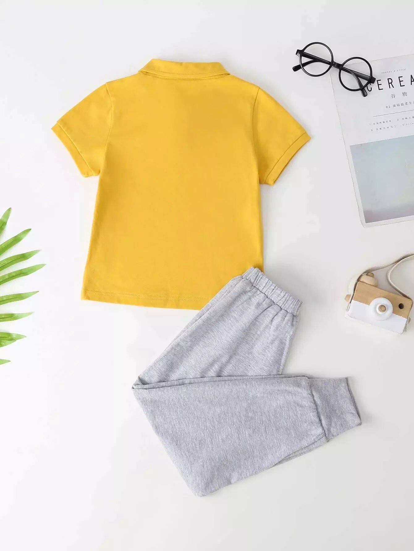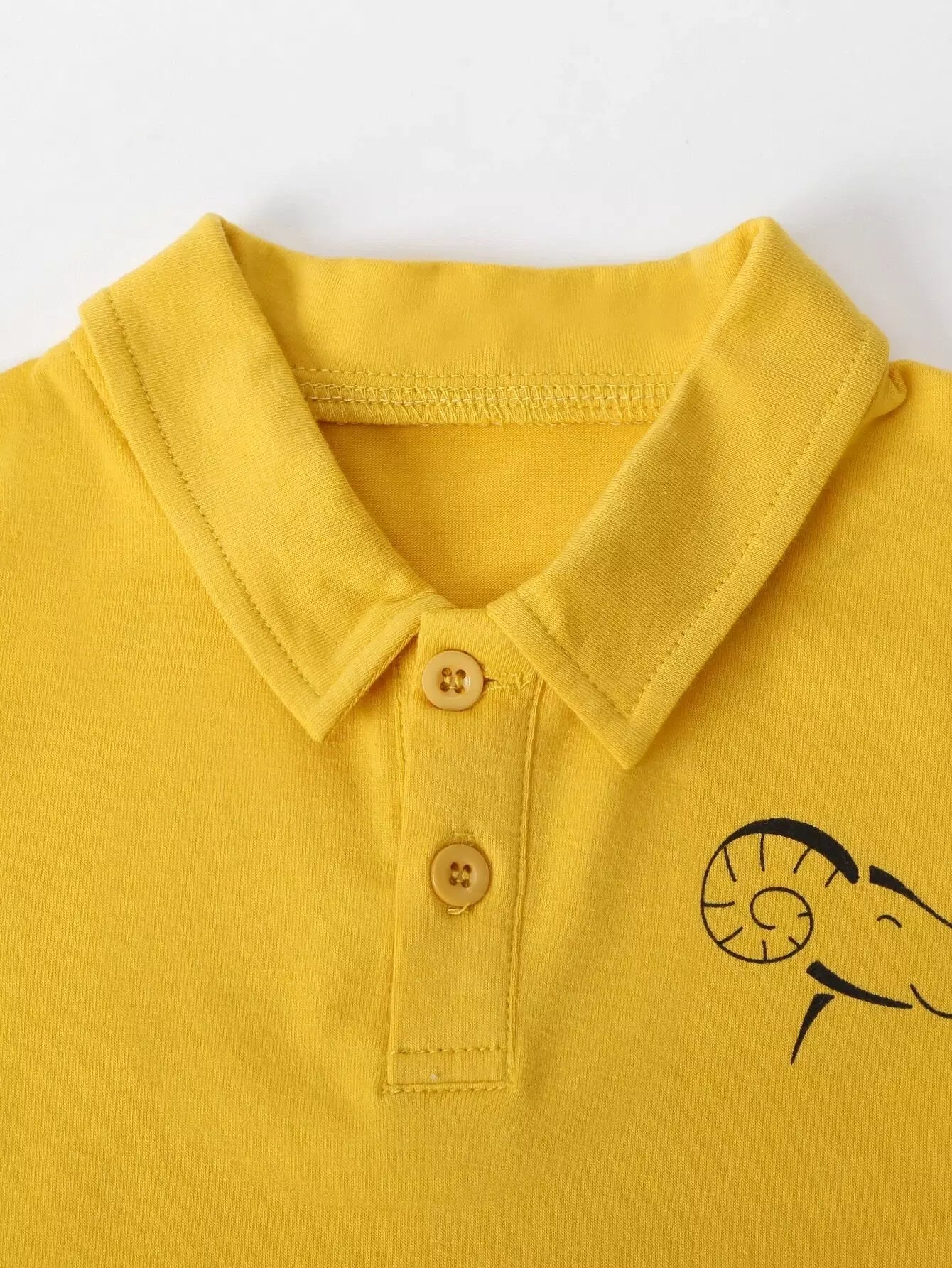 تي شيرت بولو بطبعة خروف للأولاد الصغار مع بنطال رياضي