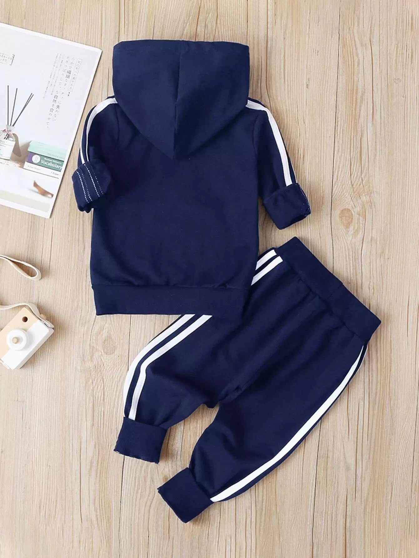 طقم بدلة رياضية بغطاء للرأس مخطط جانبي للأولاد الصغار