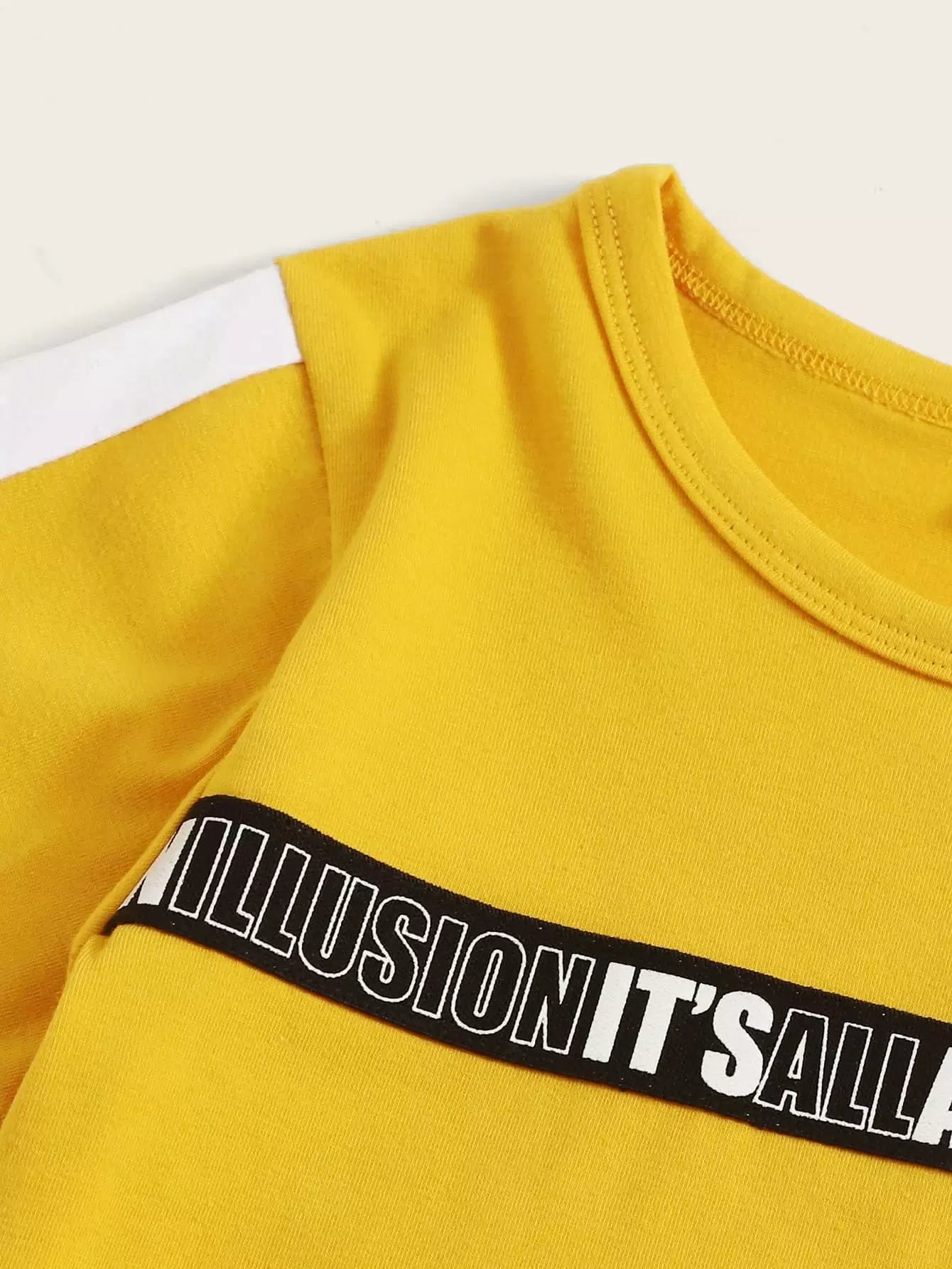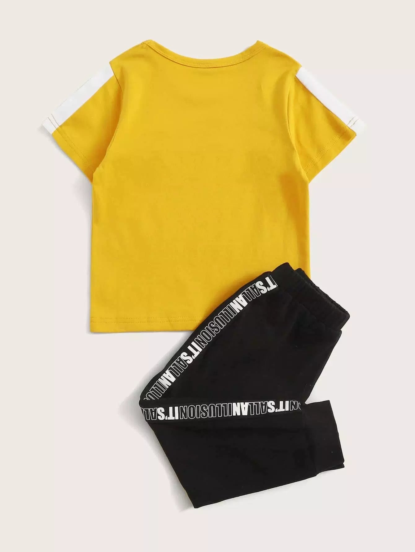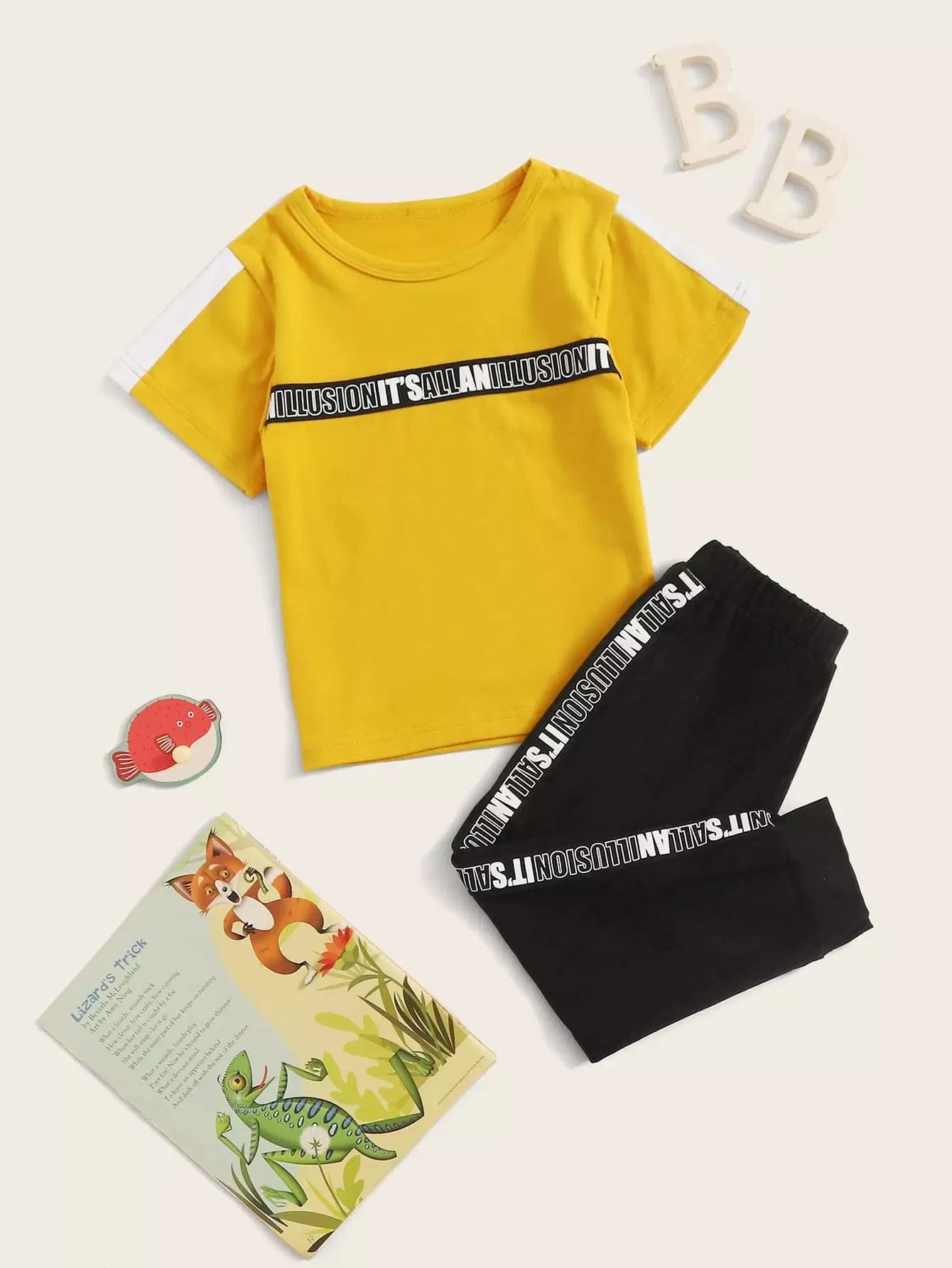 تي شيرت وبنطال رياضي بشريط جرافيك للأطفال الصغار
