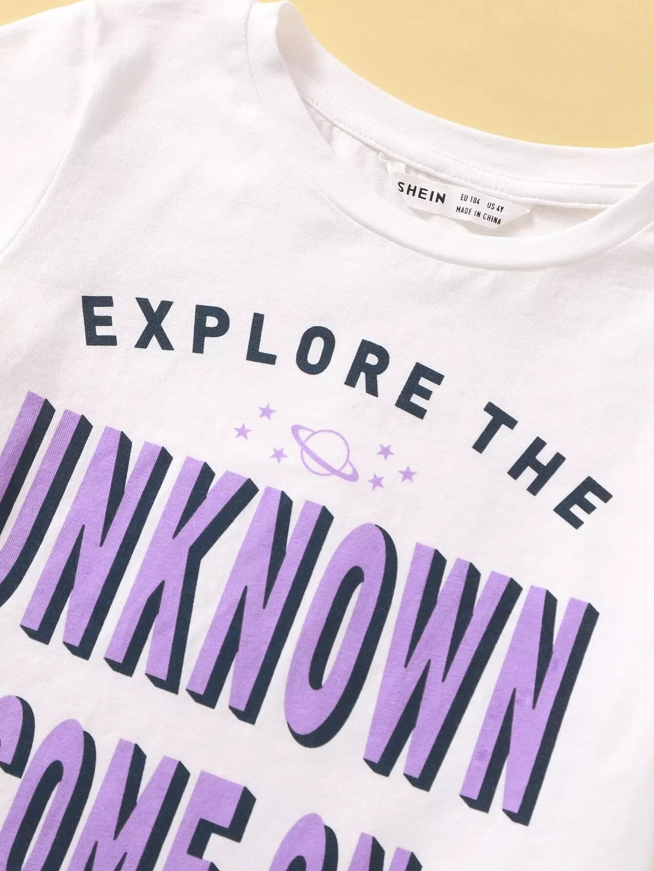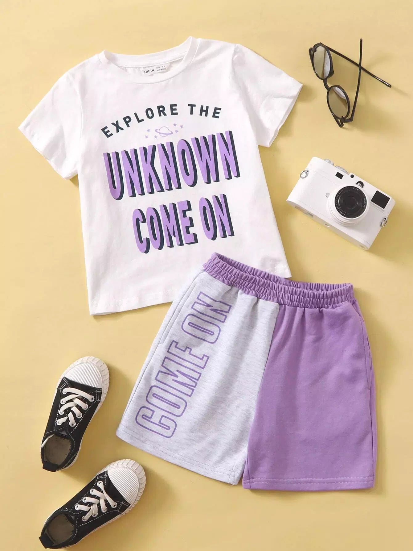 طقم تي شيرت وشورت رياضي بشعار جرافيكي للأولاد الصغار