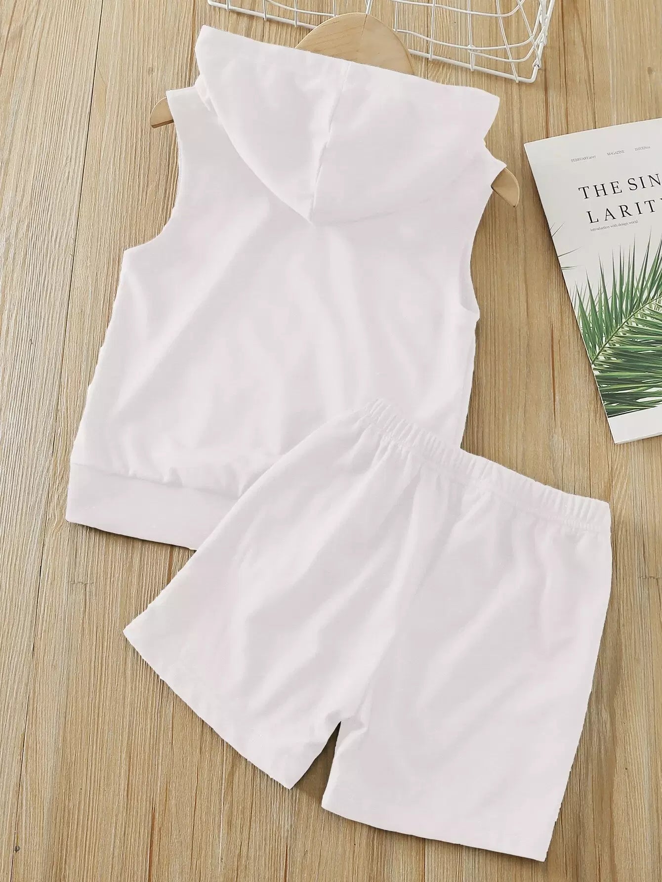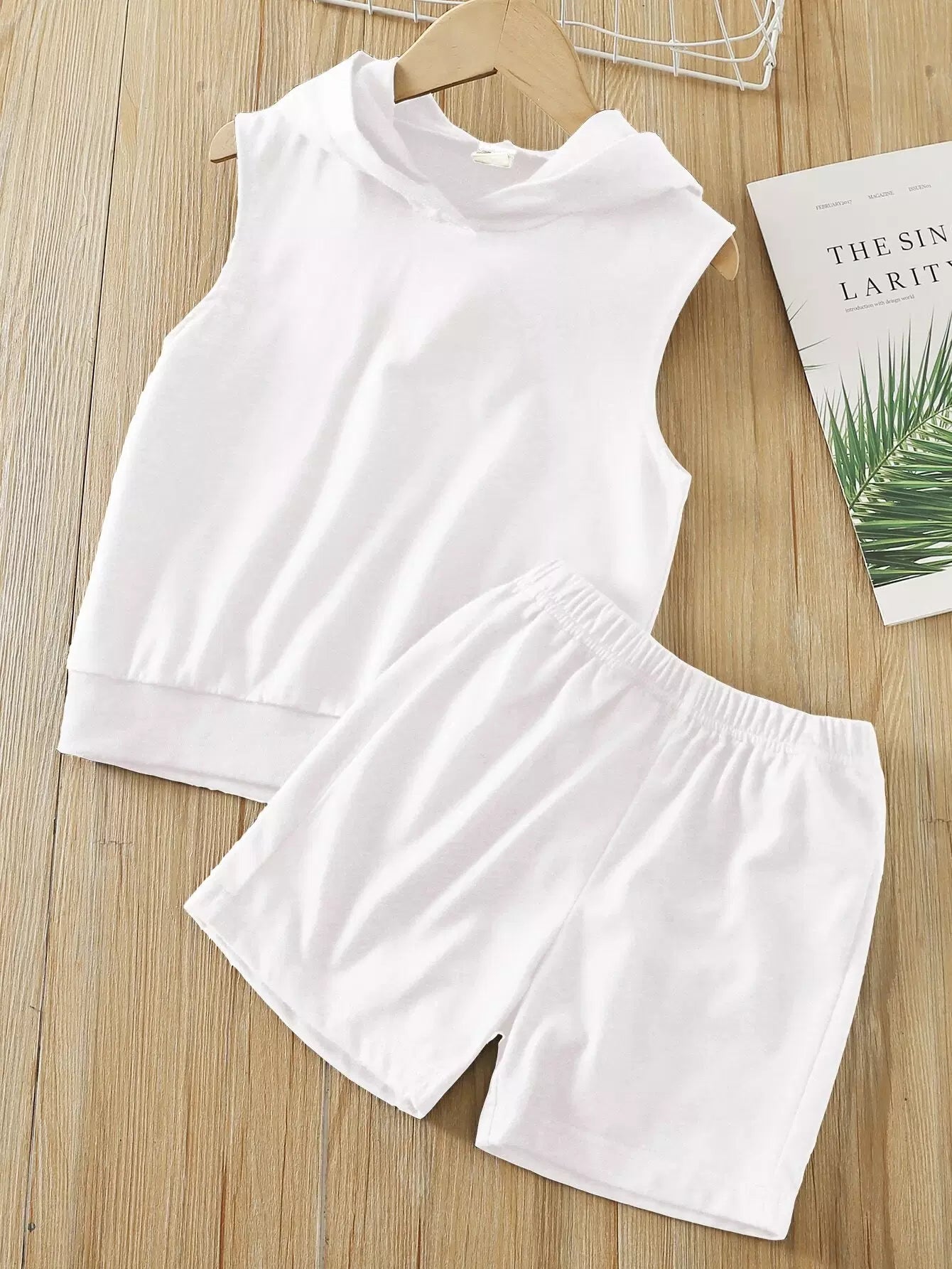 تانك بقبعة سادة بغطاء رأس بغطاء رأس سادة للأولاد الصغار مع شورت