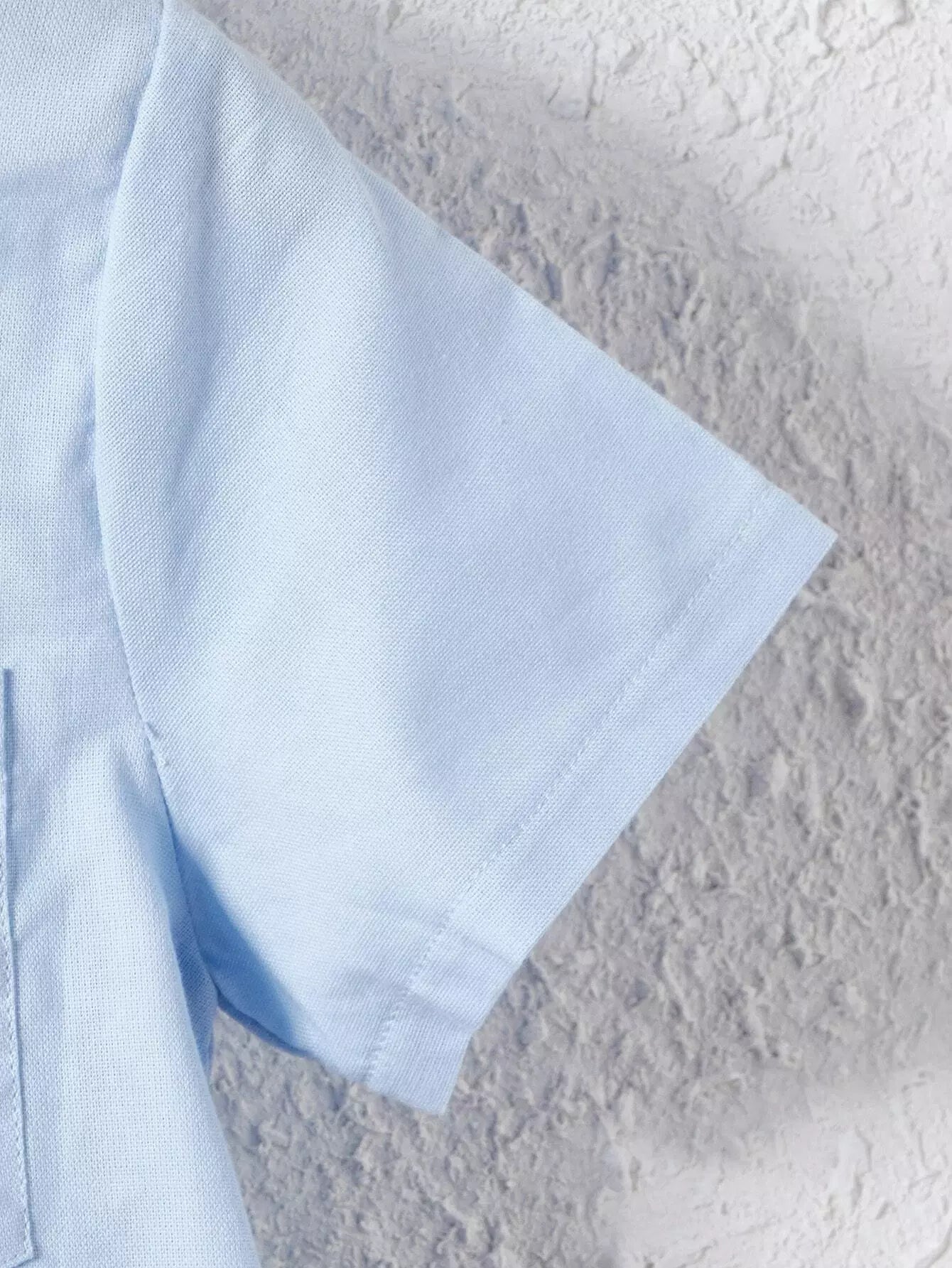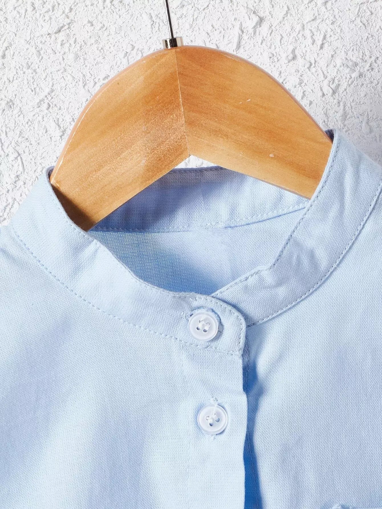 الأولاد الصغار قميص وشورت سادة بجيب أمامي بأزرار أمامية سادة للأمام