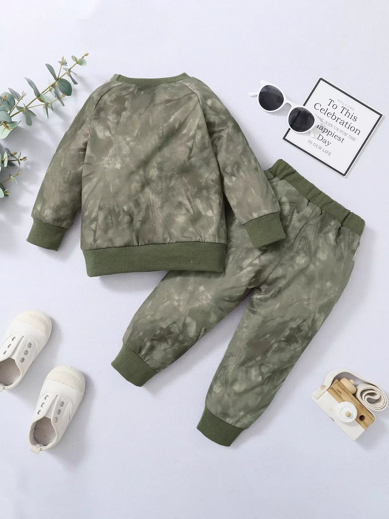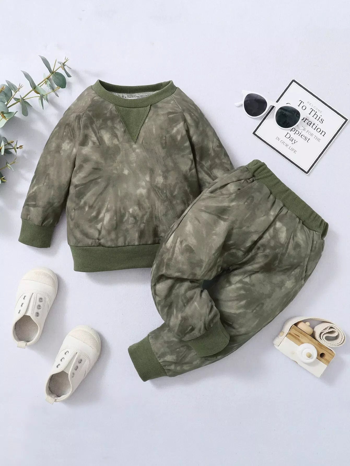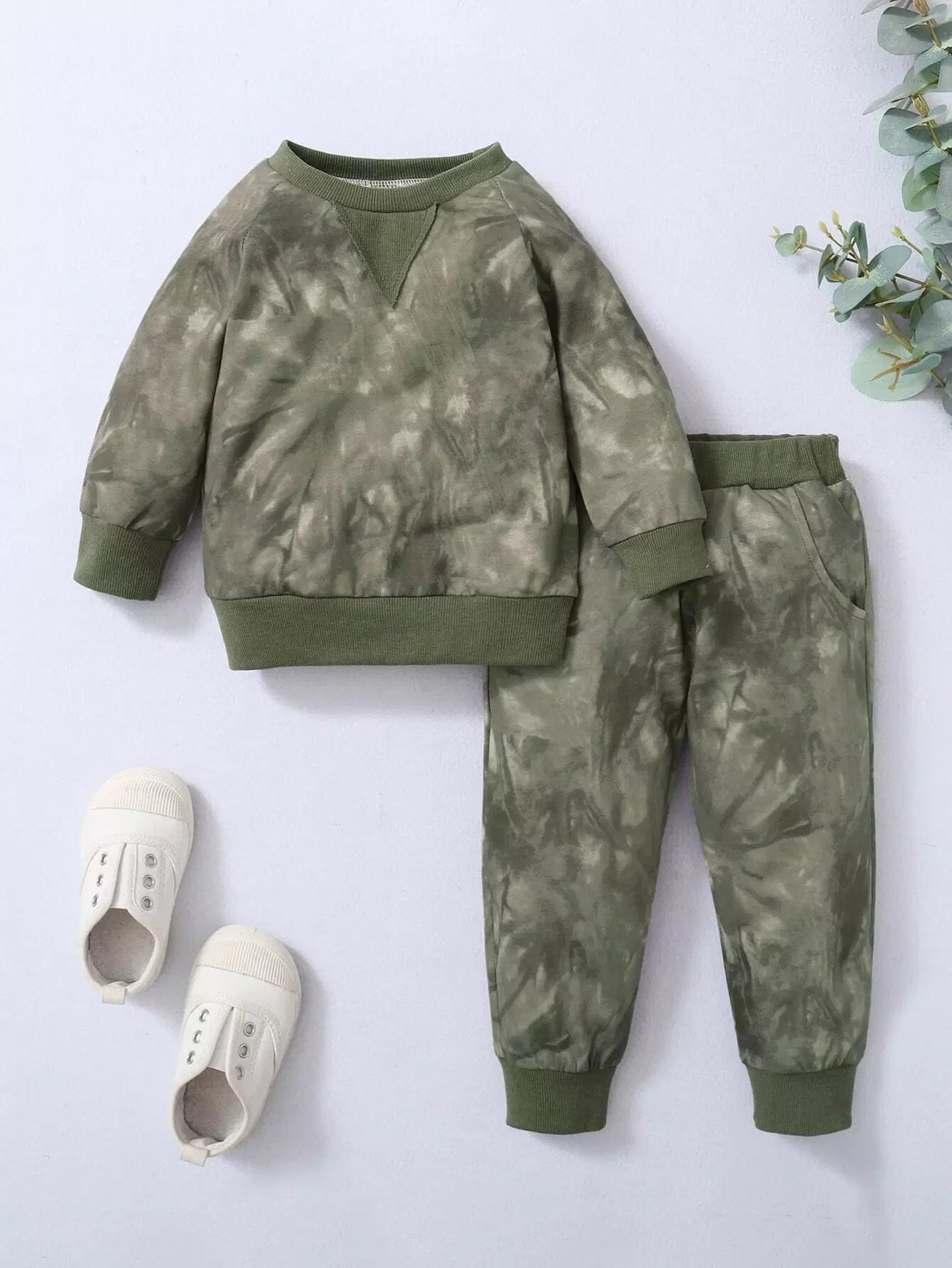 سويت شيرت بأكمام راجلان مصبوغ بربطة عنق للأولاد الصغار وبنطال رياضي