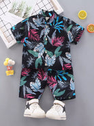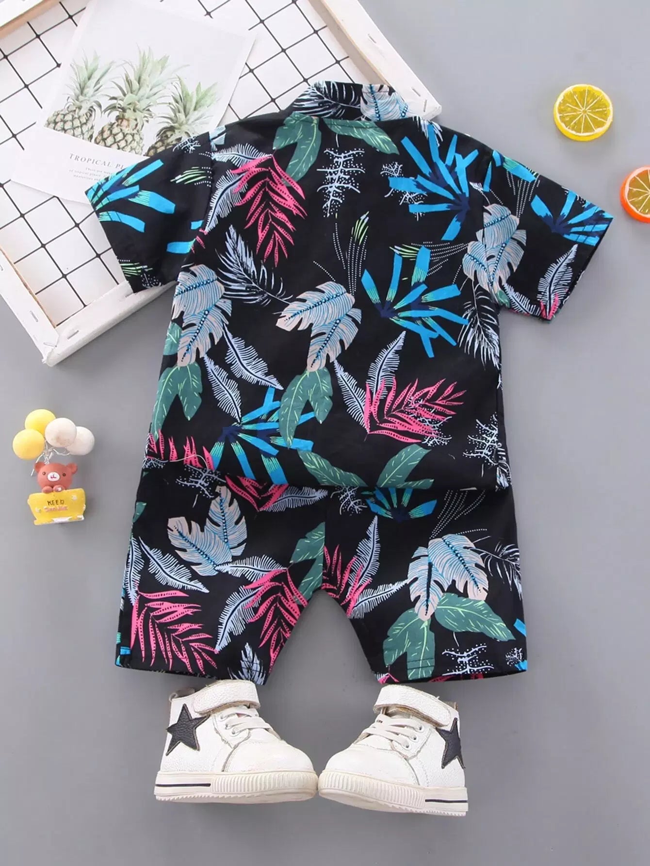 تي شيرت بطبعة استوائية للأولاد الصغار مع شورت قصير