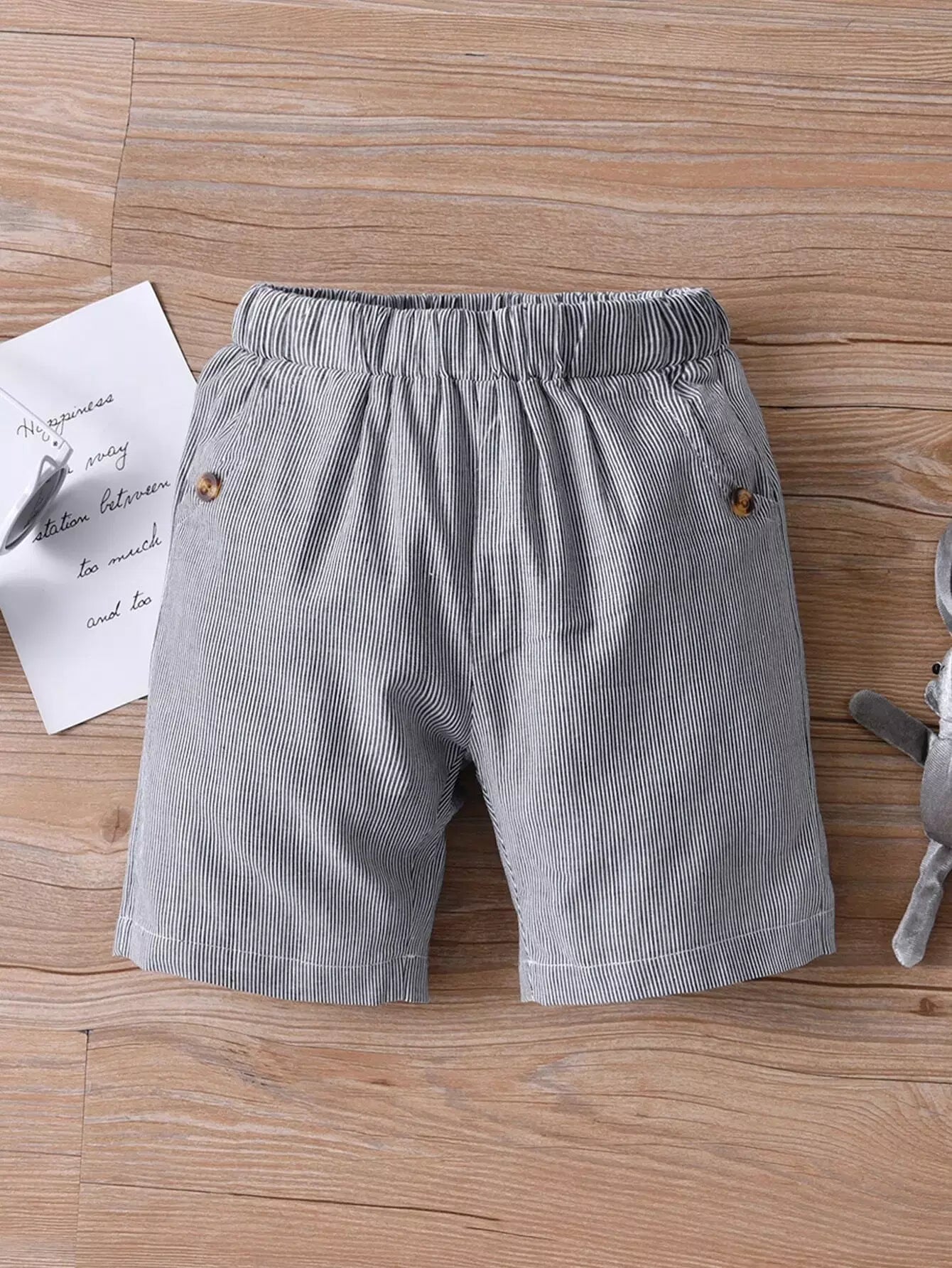 بنطلون قصير مخطط بأزرار مزيف للأولاد الصغار