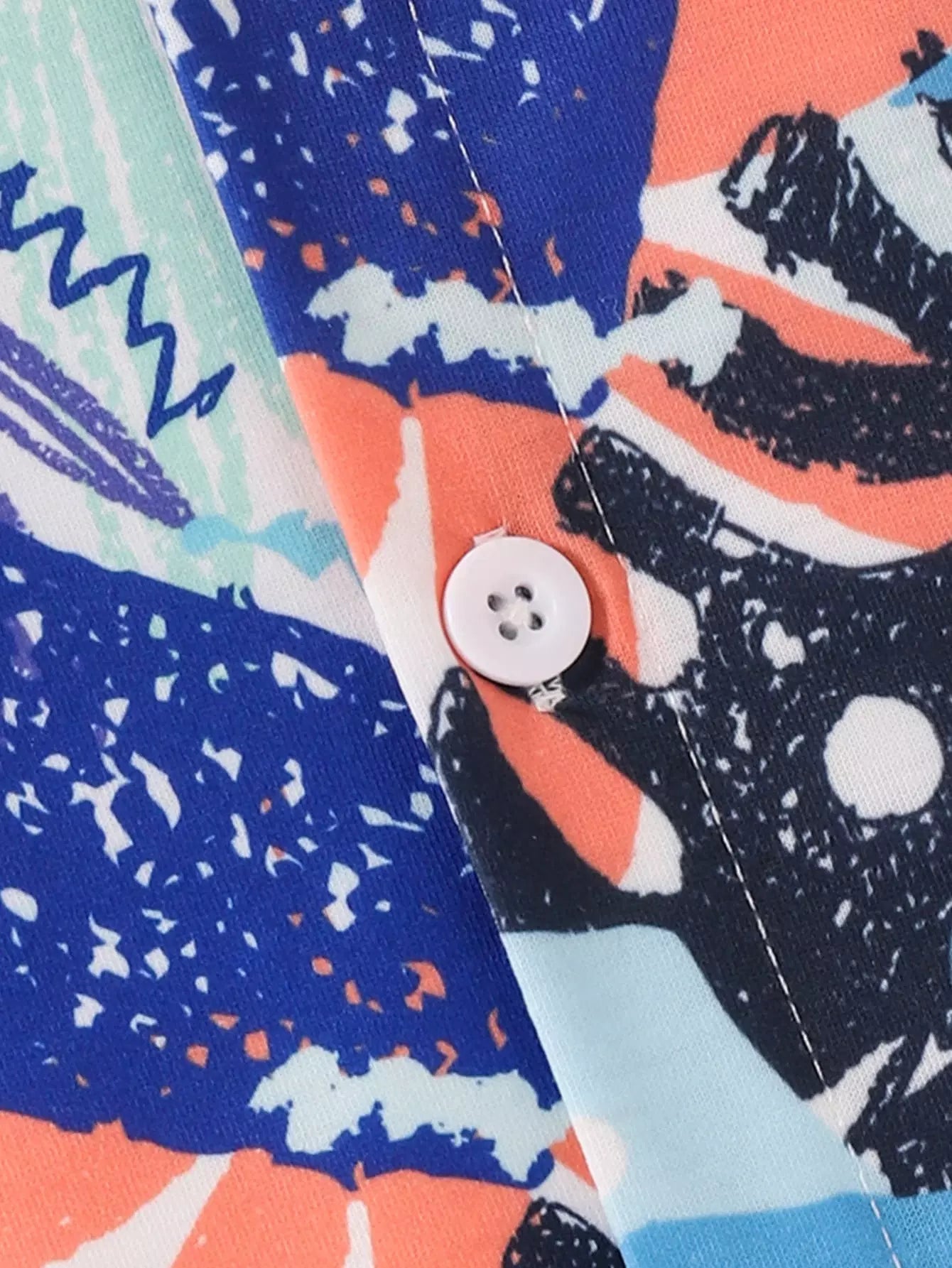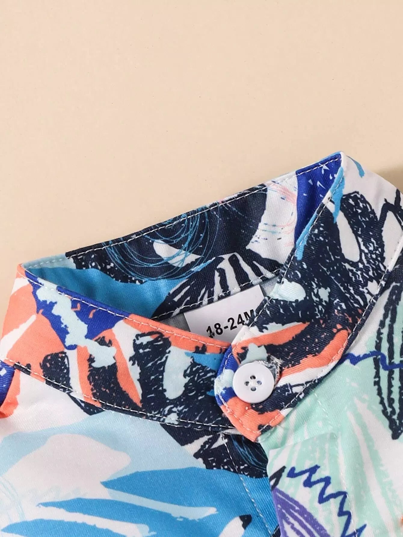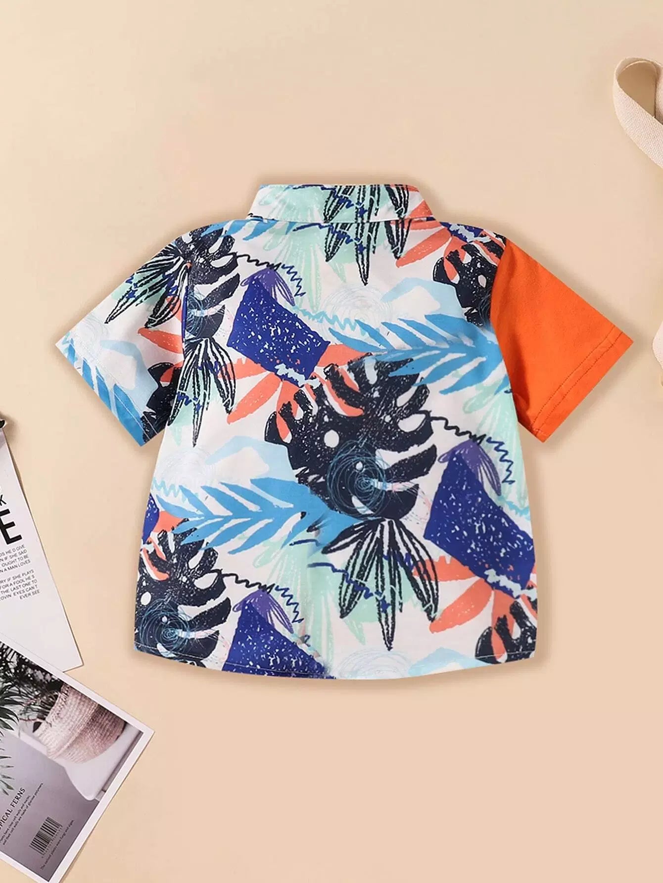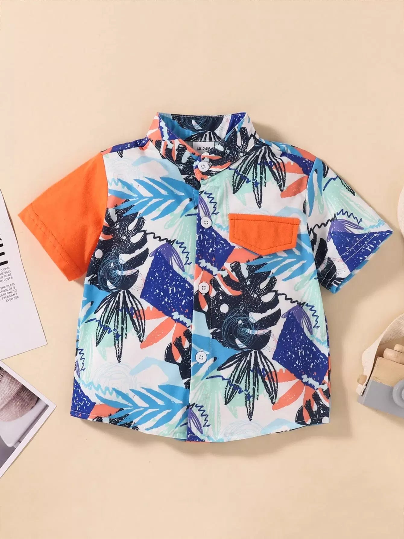 قميص أطفال صغار بطبعة جرافيك مطبوع بأزرار أمامية