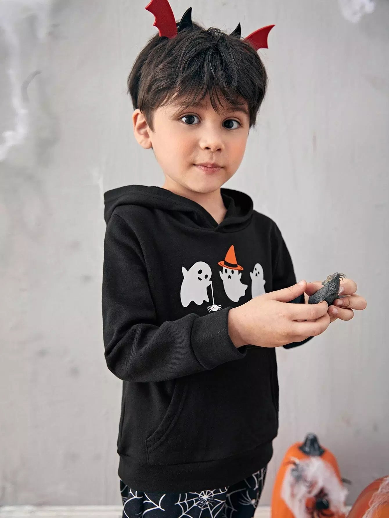 هودي برسومات شبح الهالوين وشعار للأولاد الصغار
