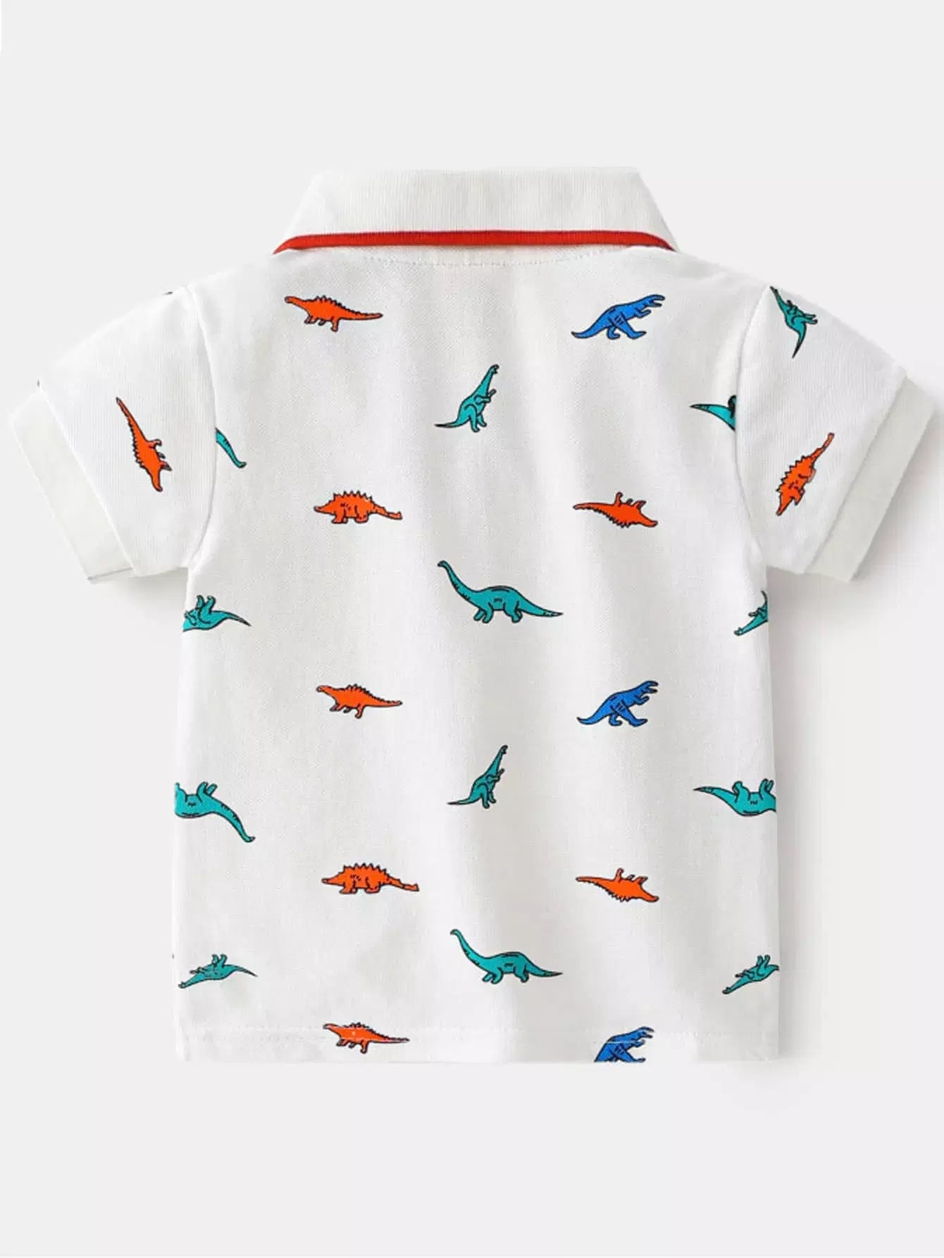 قميص بولو بطبعة ديناصور كرتوني للأولاد الصغار