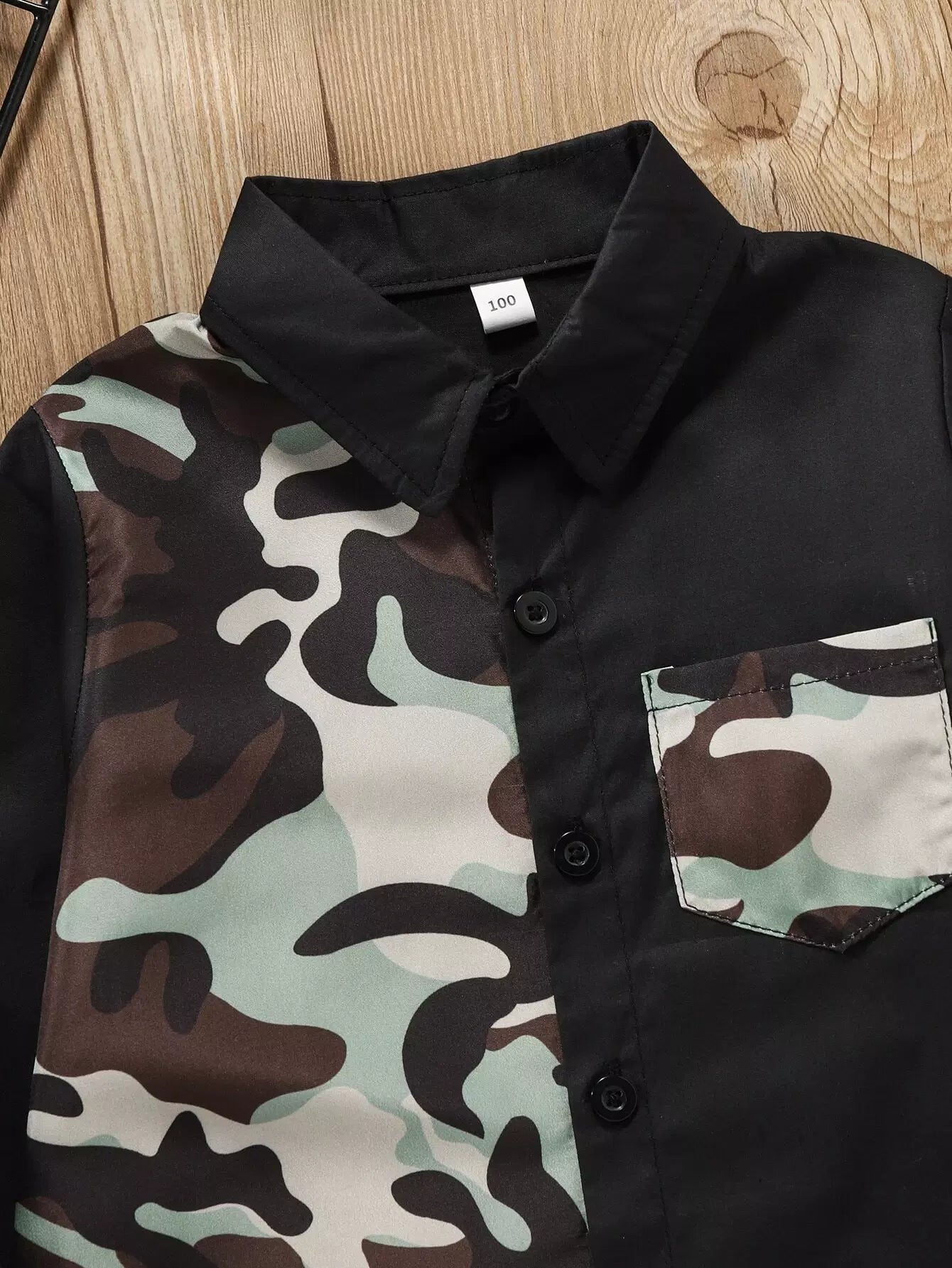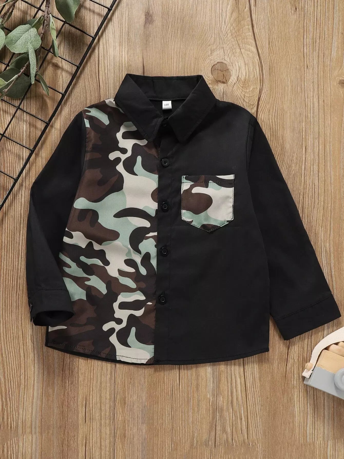 الأولاد الصغار قميص بنقشة كامو بلون متباين