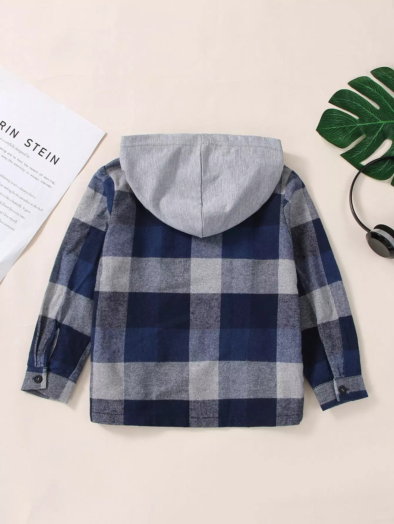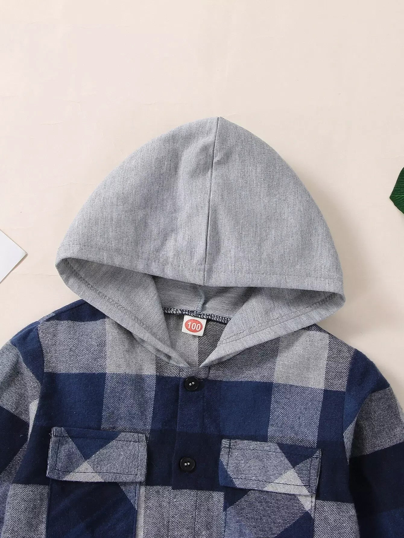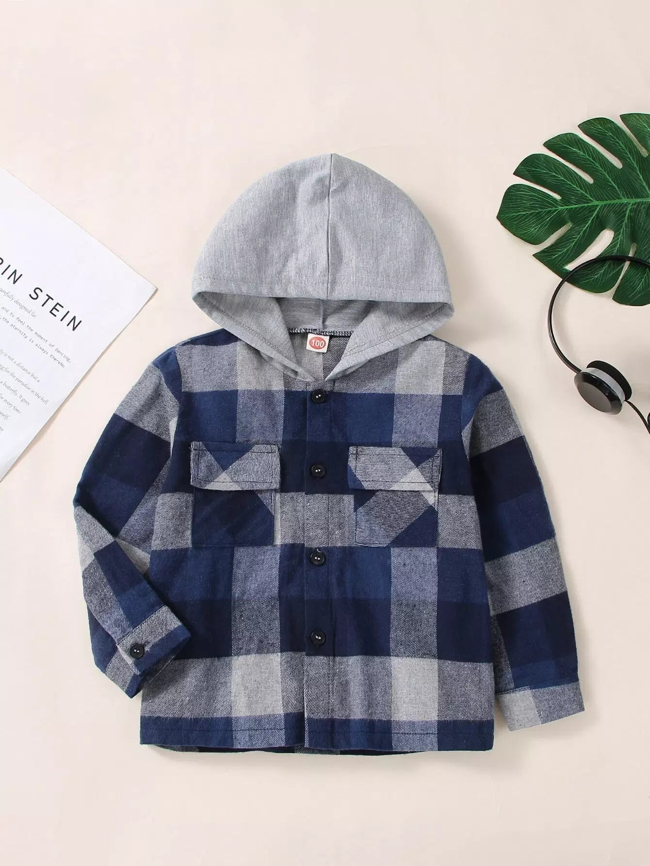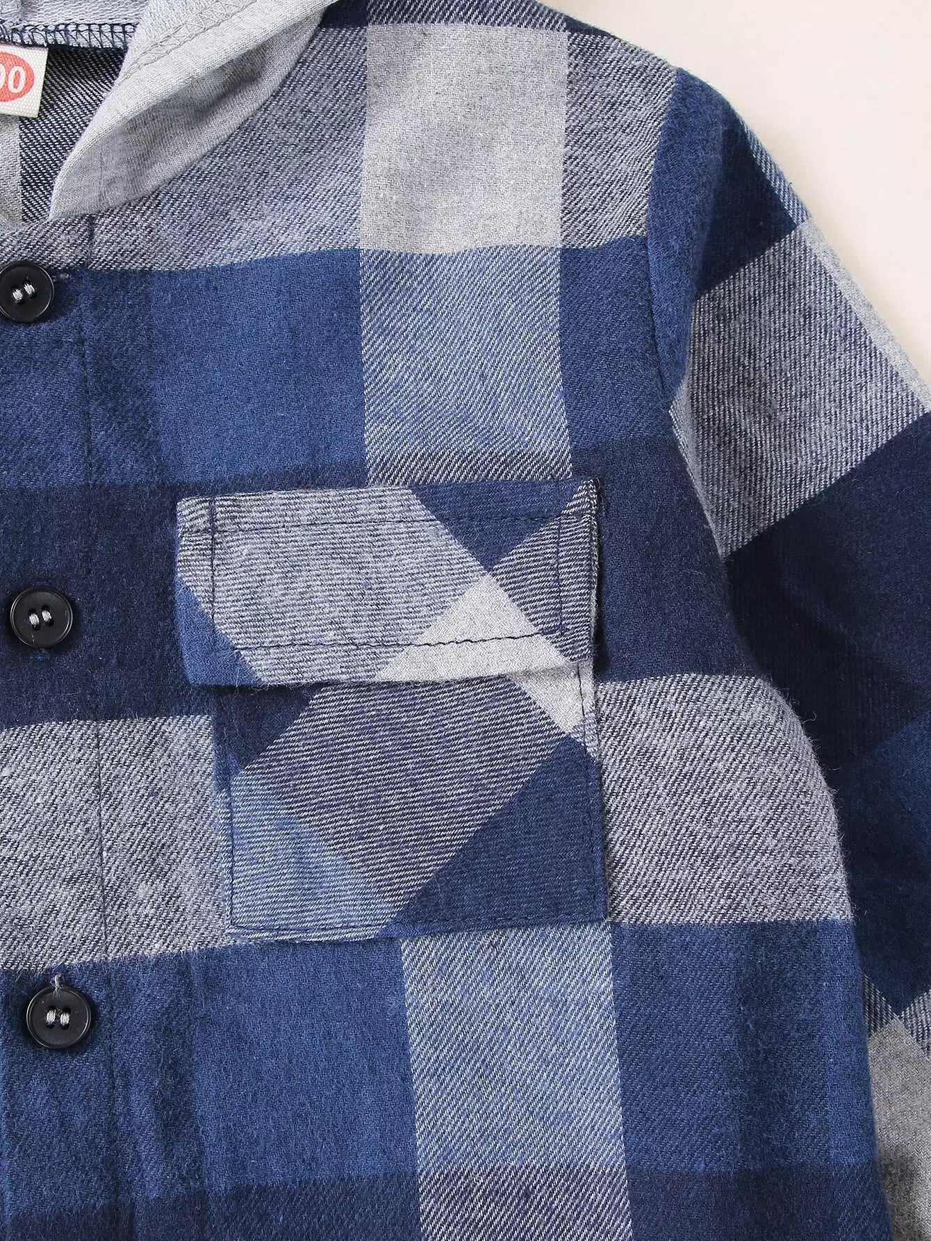 قميص بقلنسوة مطبوع بنقشة منقوشة للأولاد الصغار