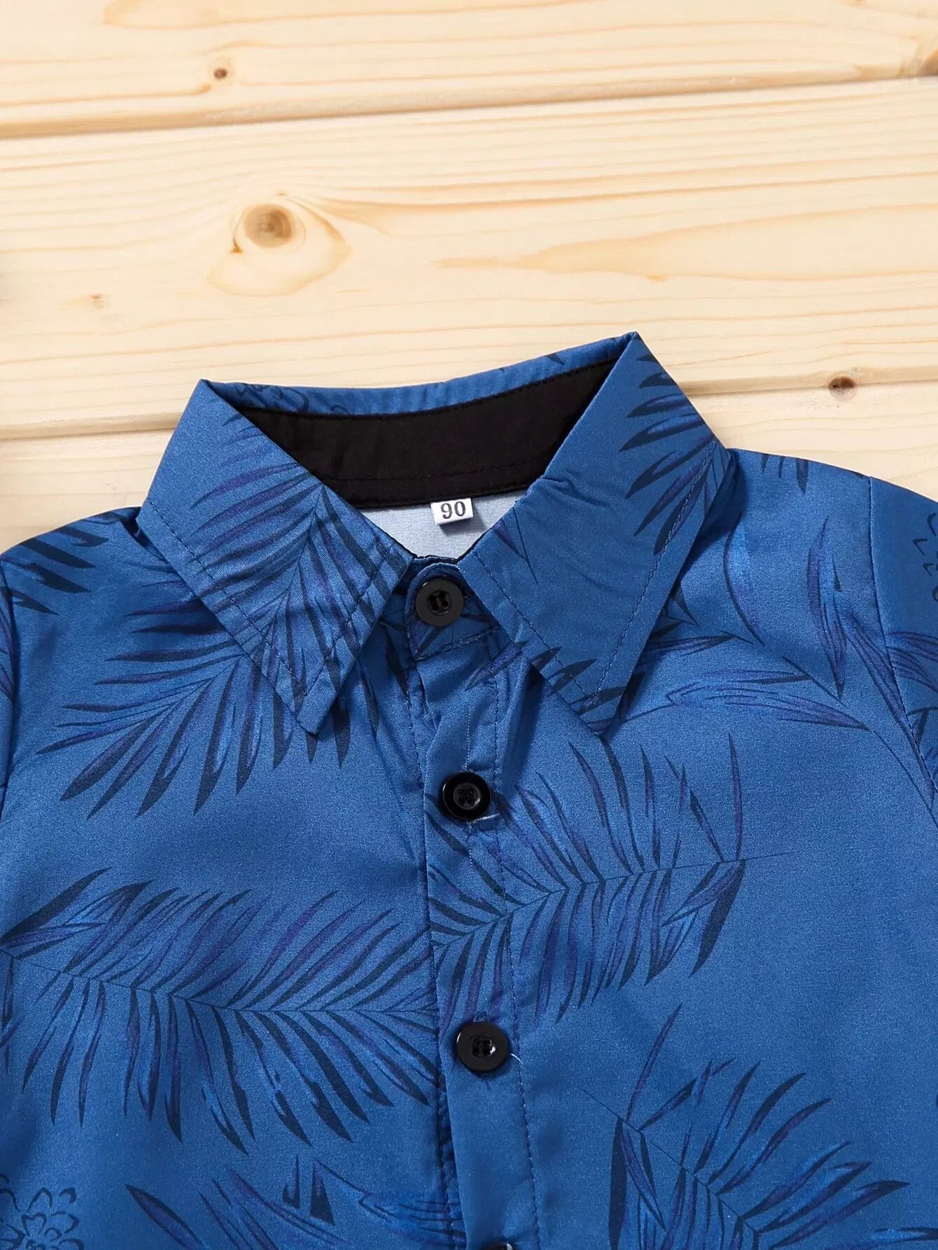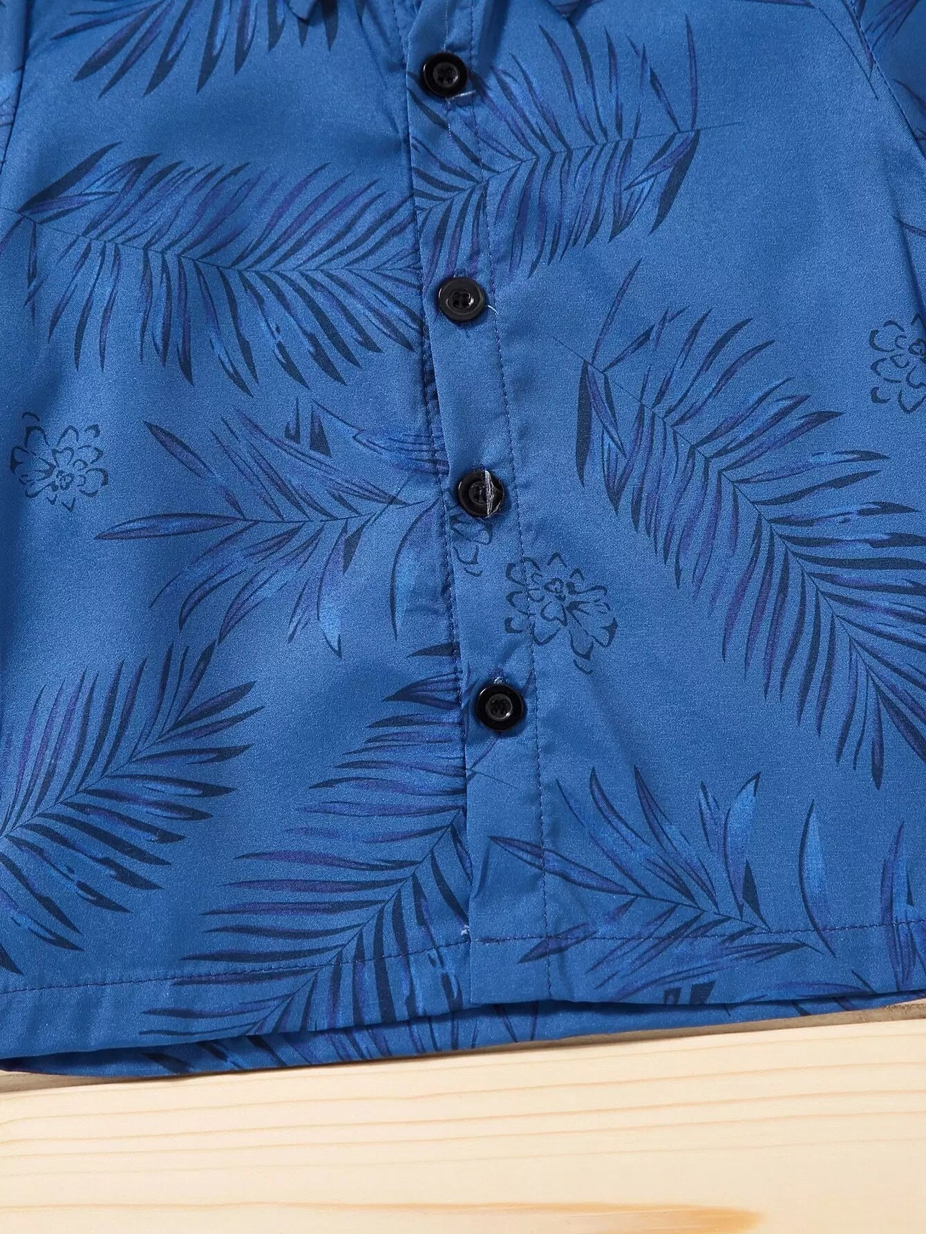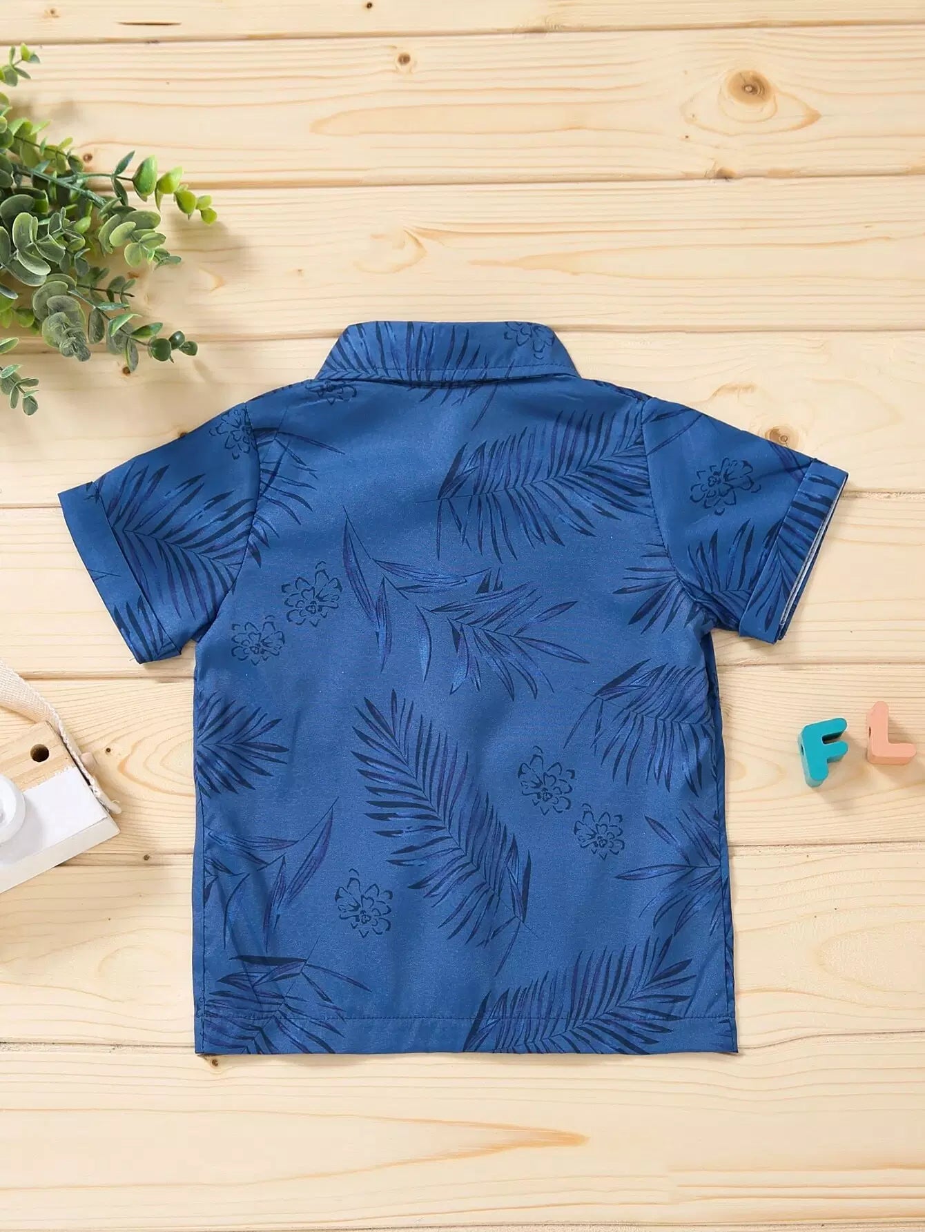 قميص أطفال صغار بطبعة استوائية بطبعة استوائية بأزرار من خلال أزرار