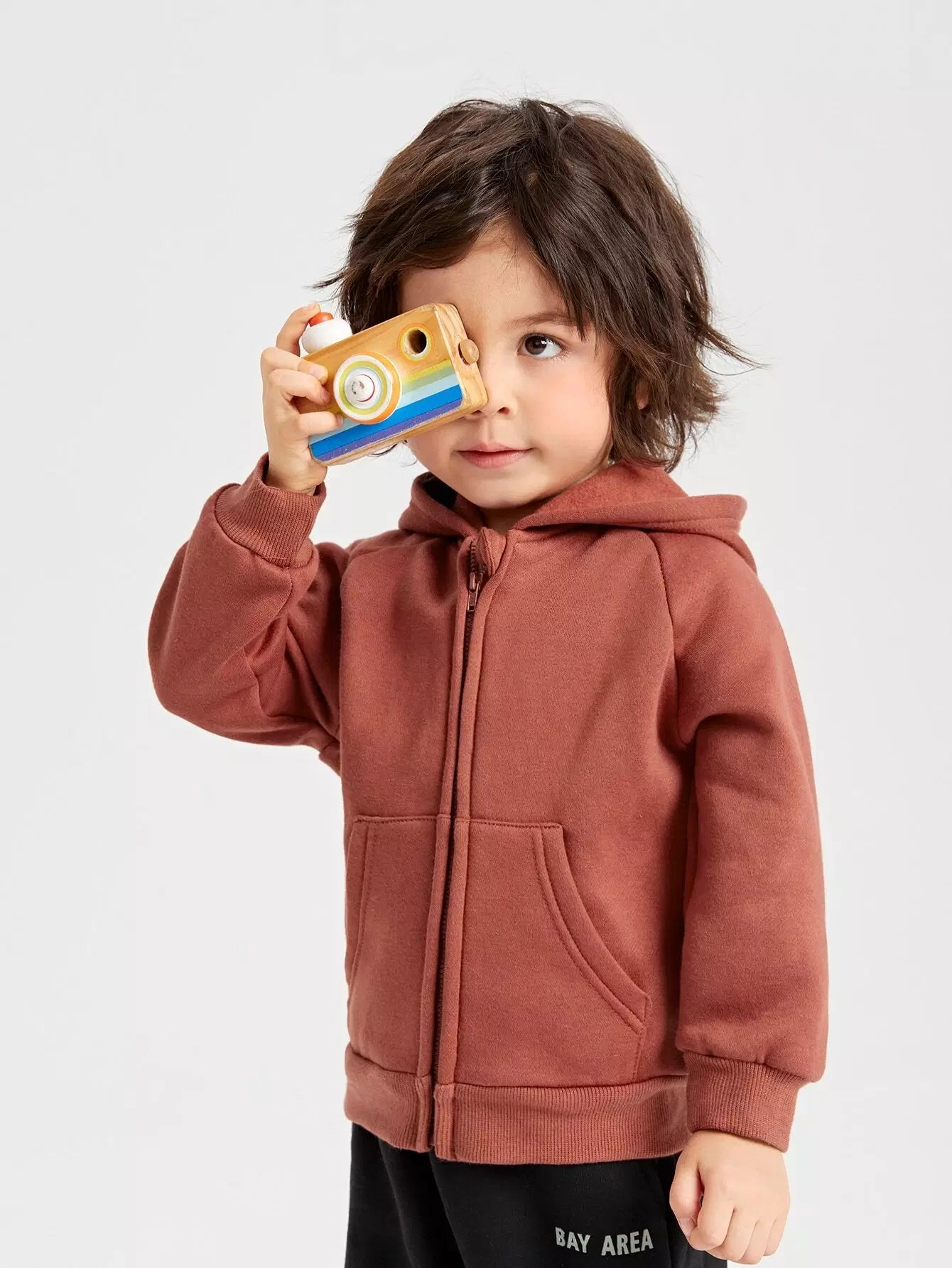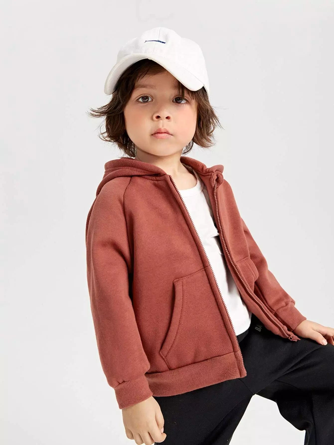 سويت شيرت بغطاء رأس وسحاب وأكمام راجلان من القطن للأولاد الصغار