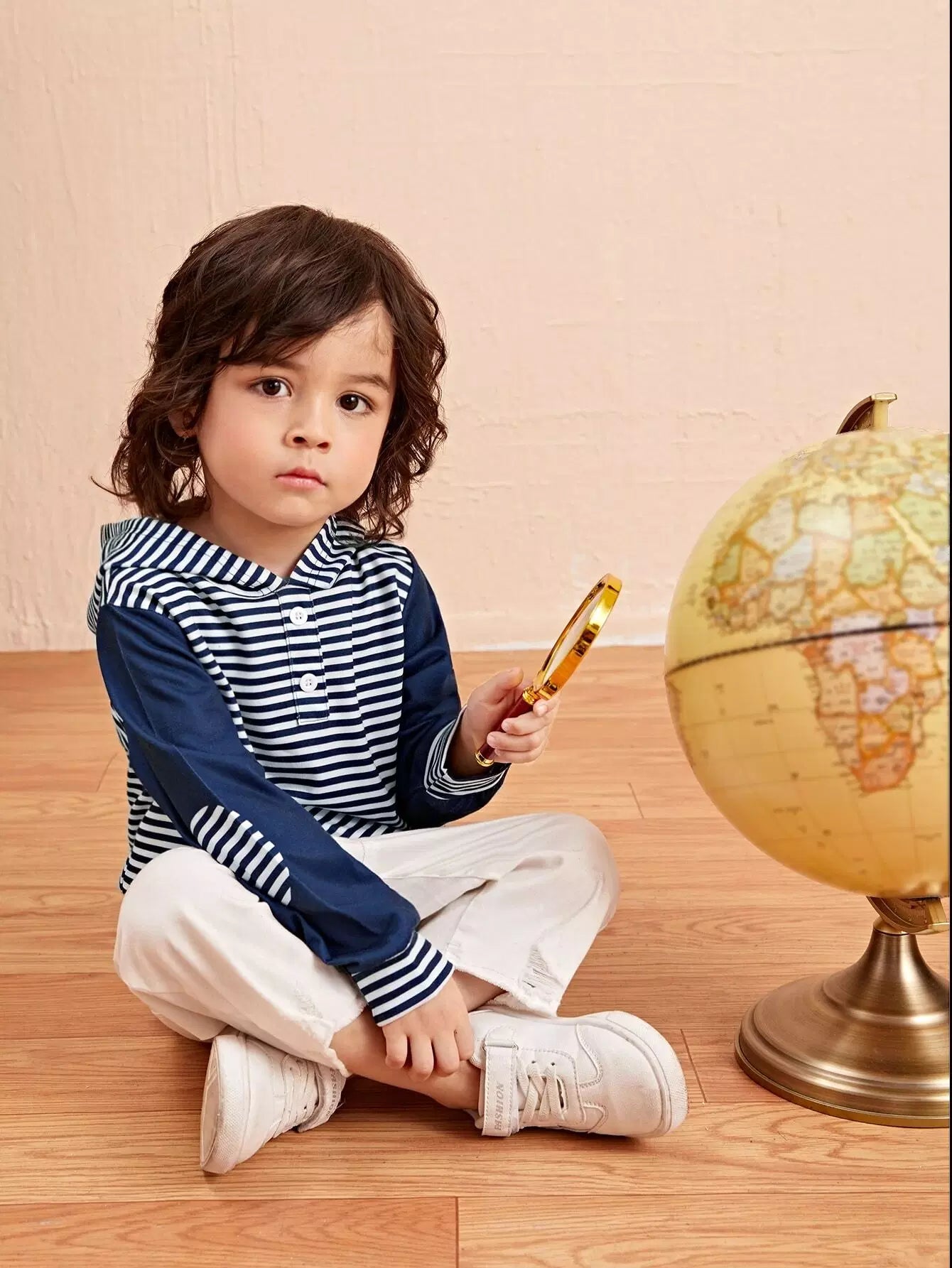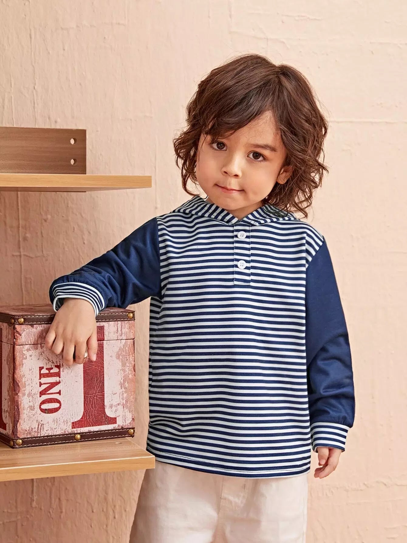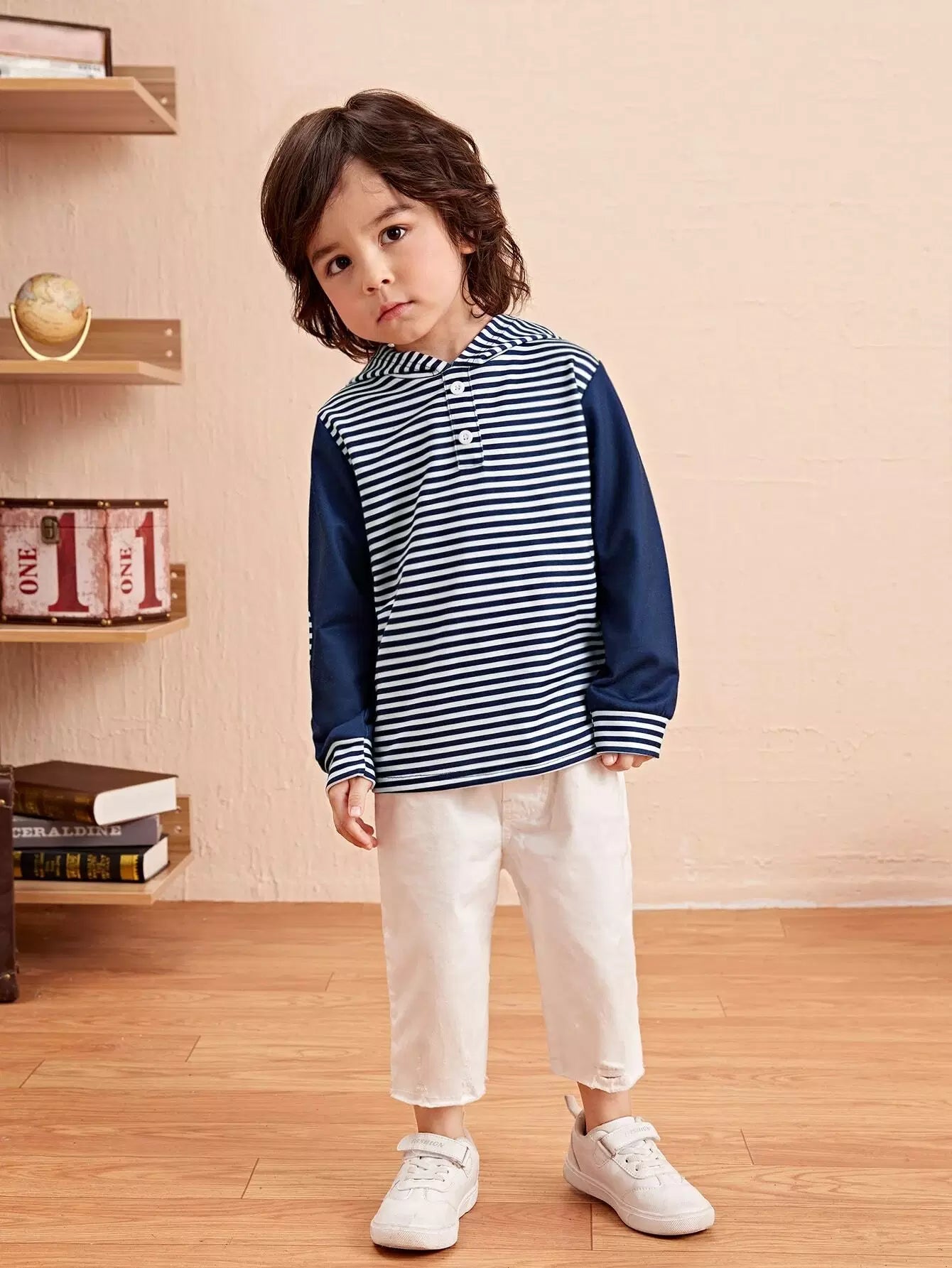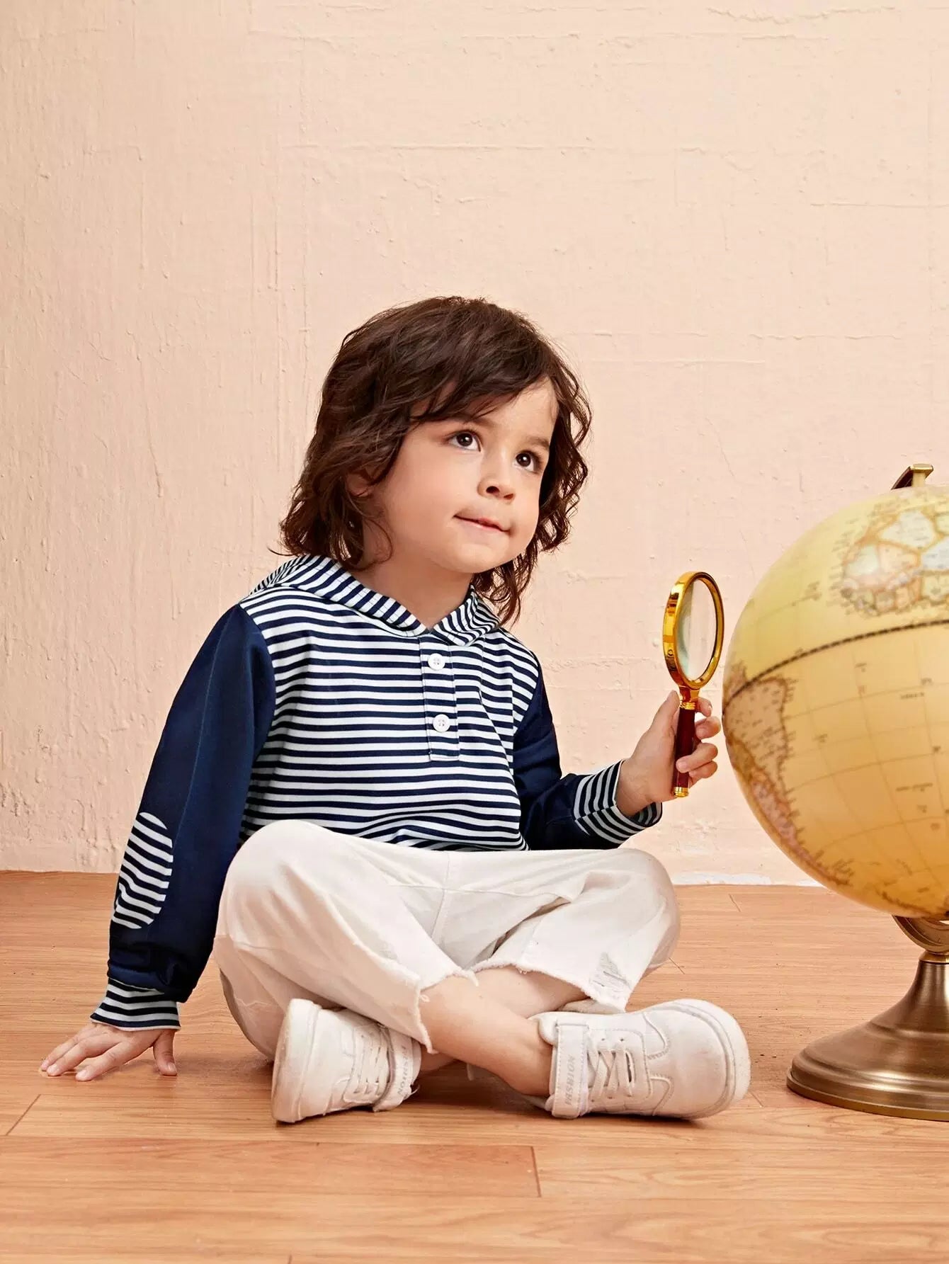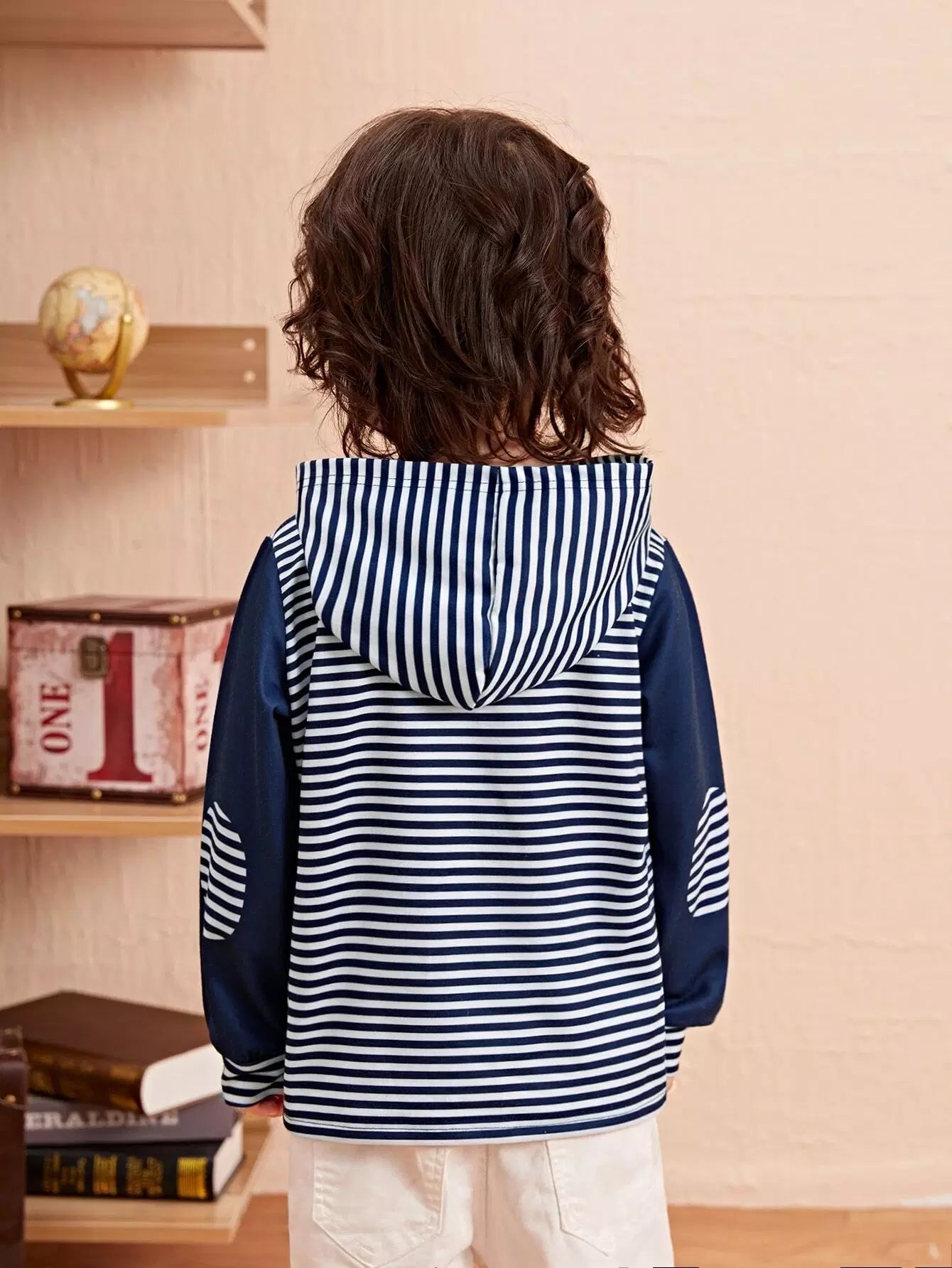 سويت شيرت بغطاء رأس مرقع مخطط الكوع للأولاد الصغار