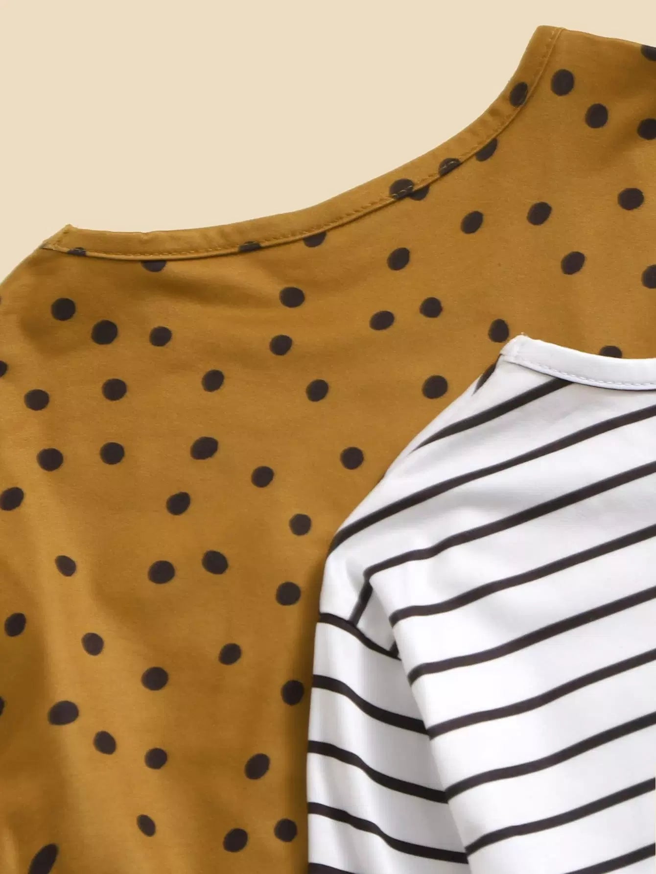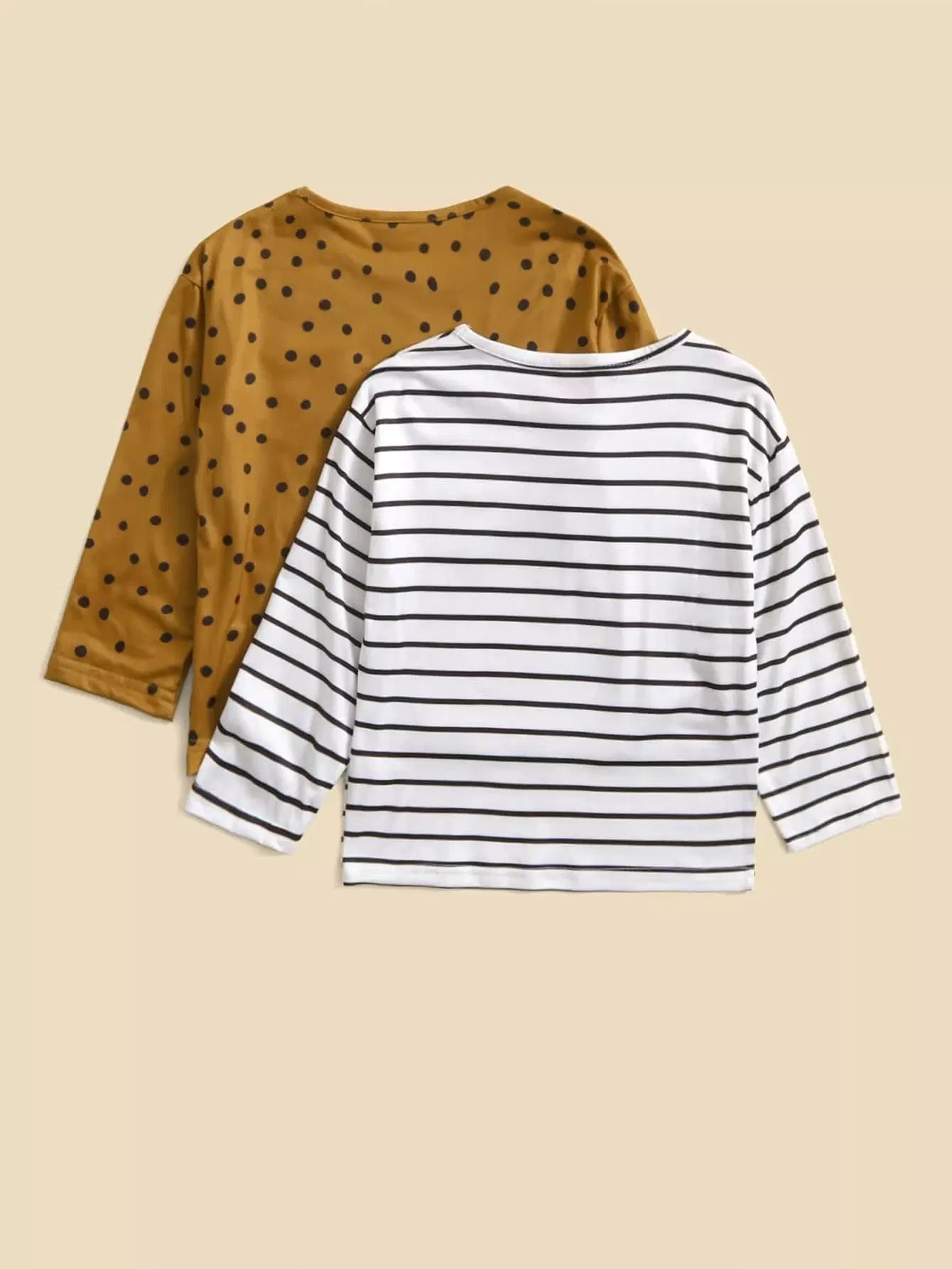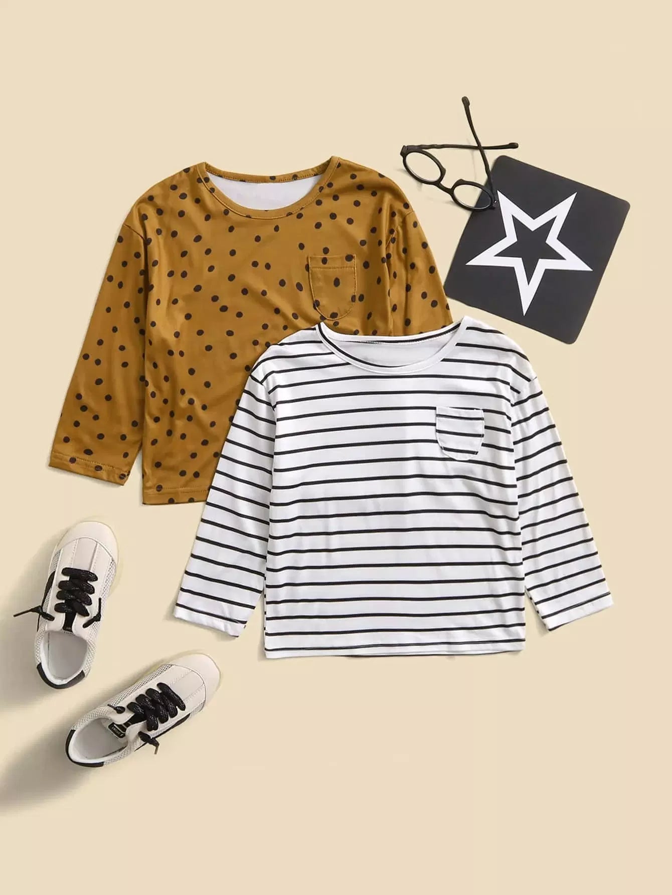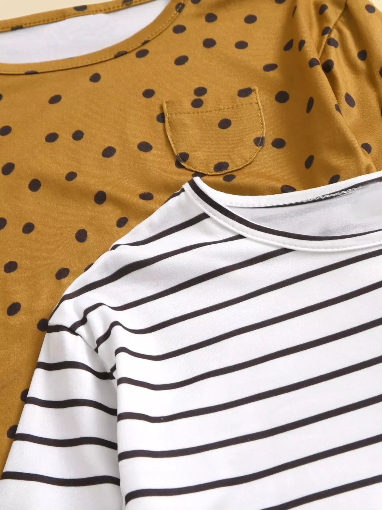 أطفال صغار 1 قطعة تي شيرت بطبعة منقطة و1 قطعة تي شيرت مخطط