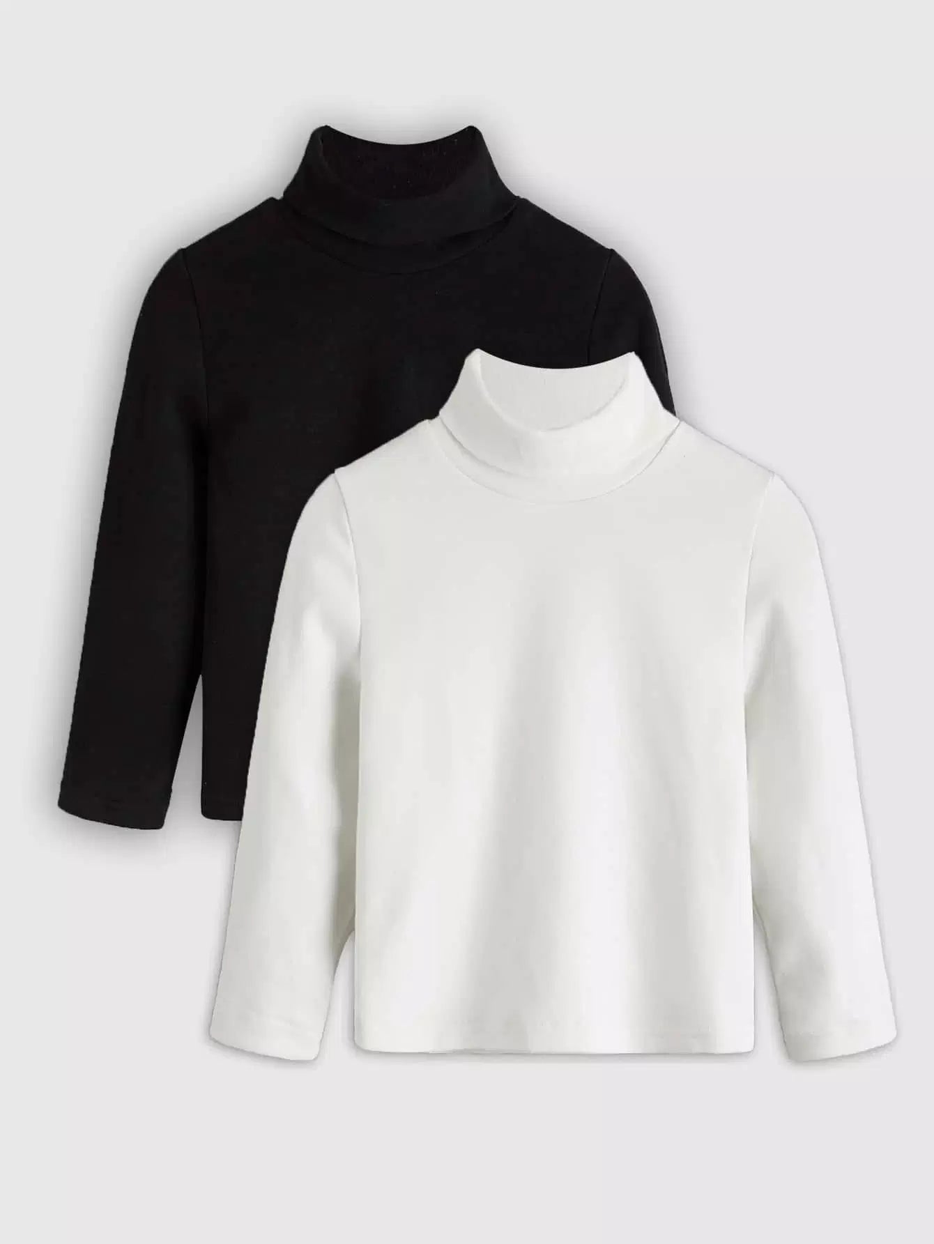 الأطفال - عبوة من قطعتين من تي شيرت سادة برقبة دائرية من القطن للأطفال الصغار