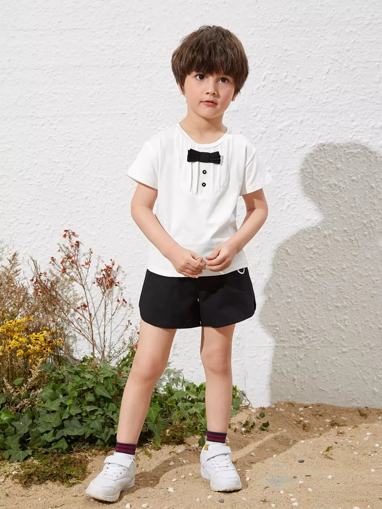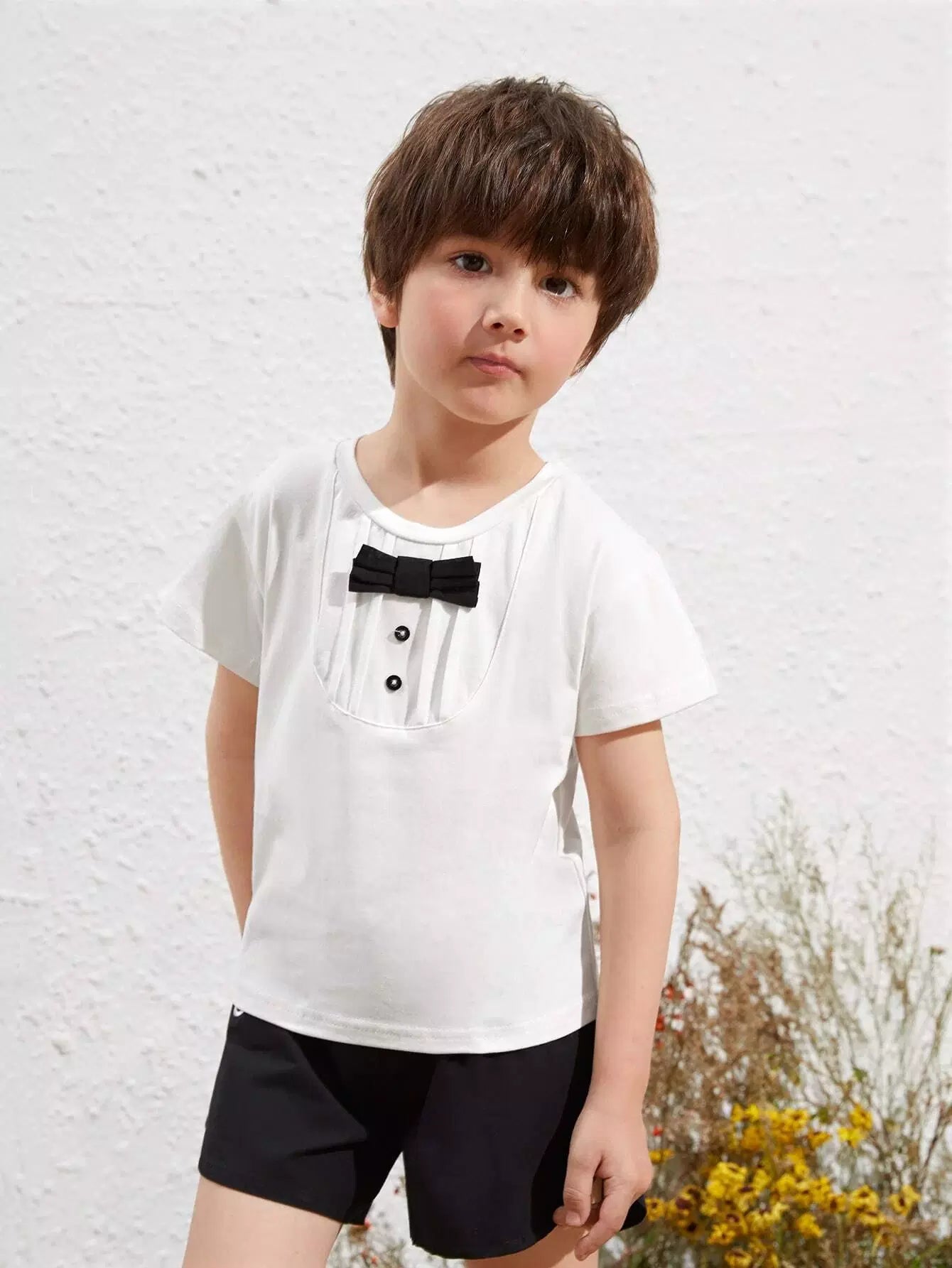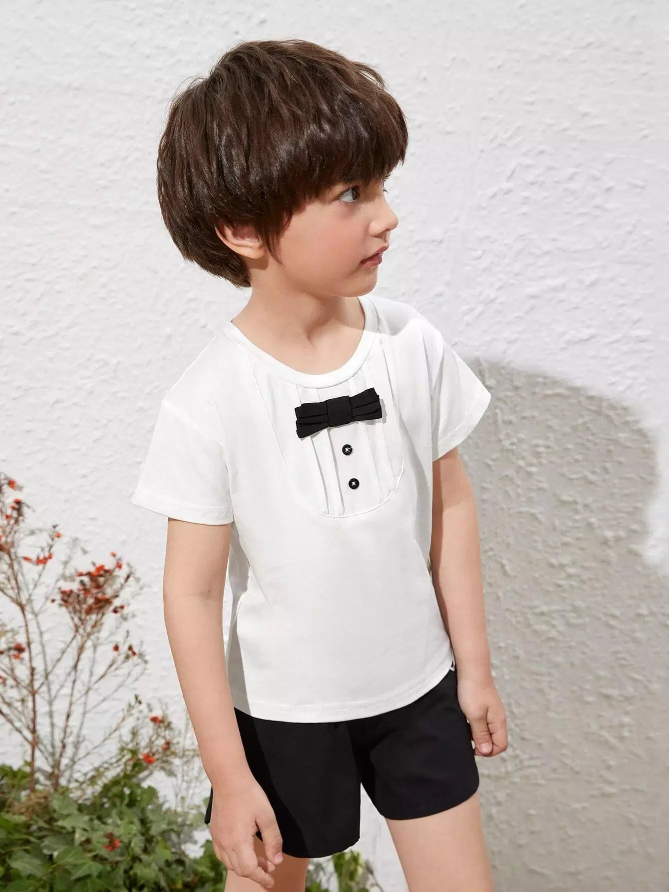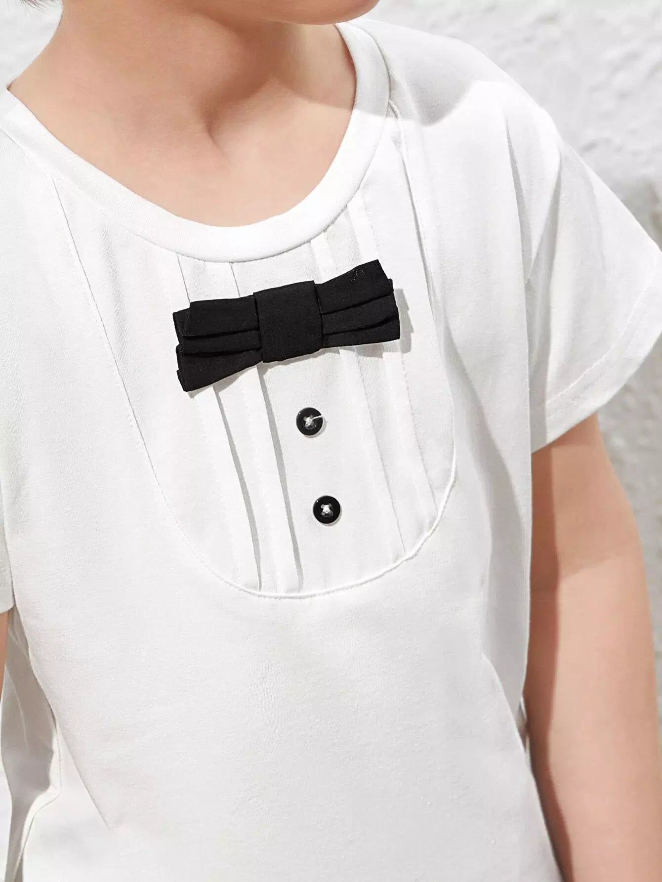 تي شيرت بأزرار أمامية مزين بفيونكة للأولاد الصغار