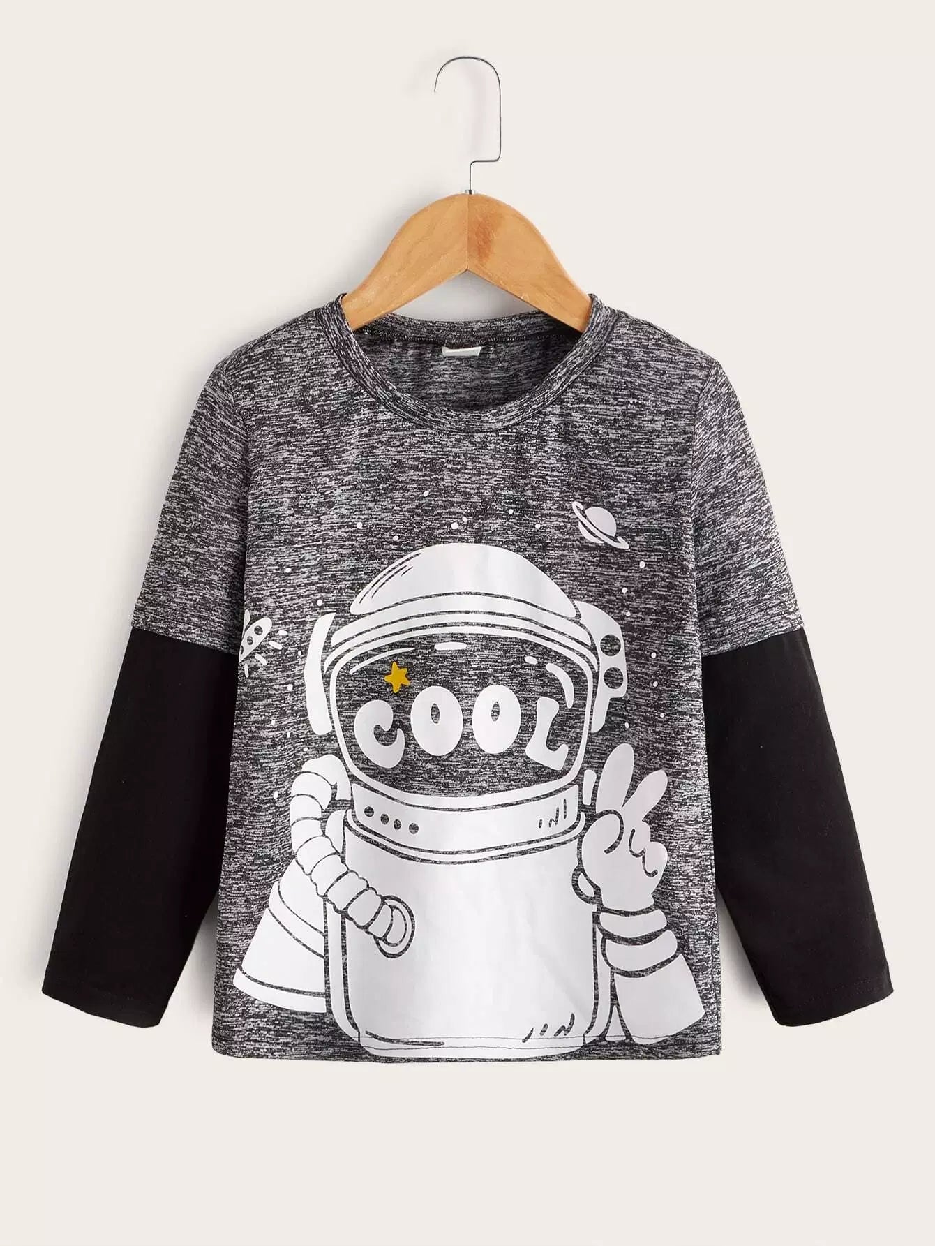 تي شيرت كارتون جرافيك 2 في 1 للأطفال الصغار