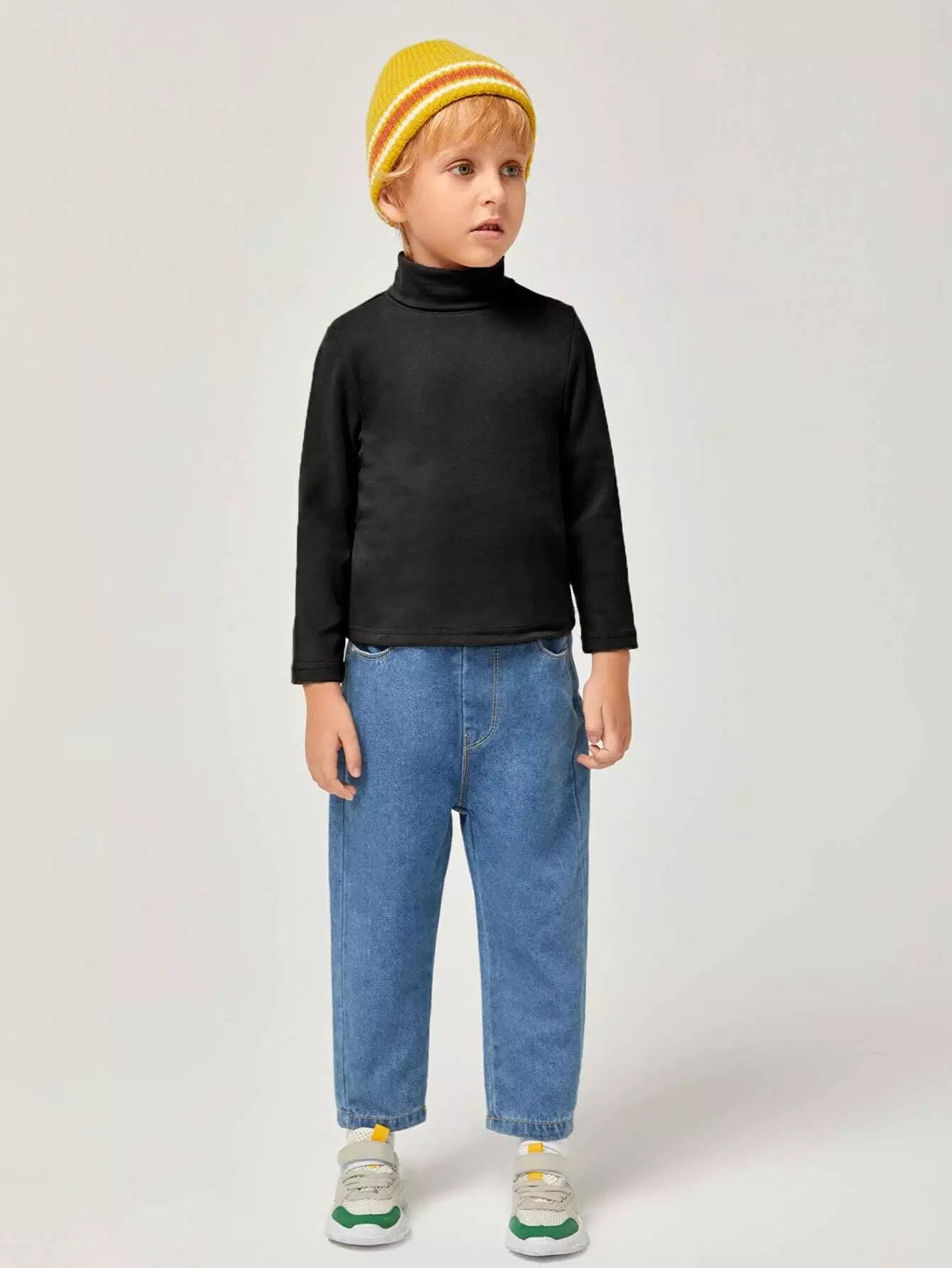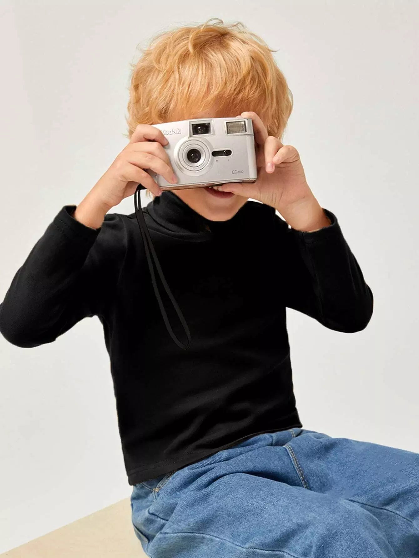الأطفال - تي شيرت قطن برقبة سلحفاة للأطفال الصغار