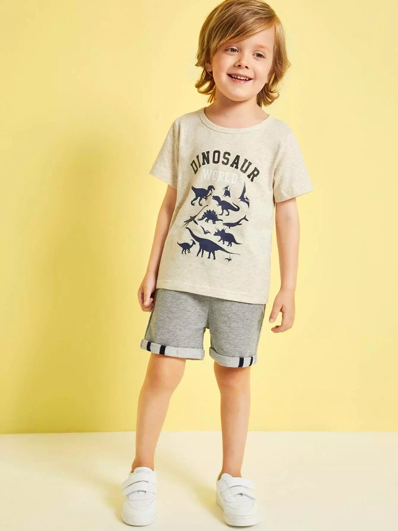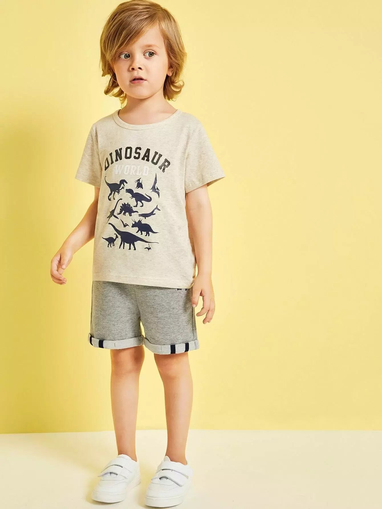 تي شيرت برسومات حروف وديناصور للأولاد الصغار